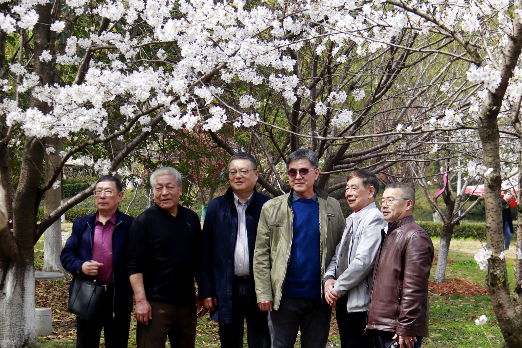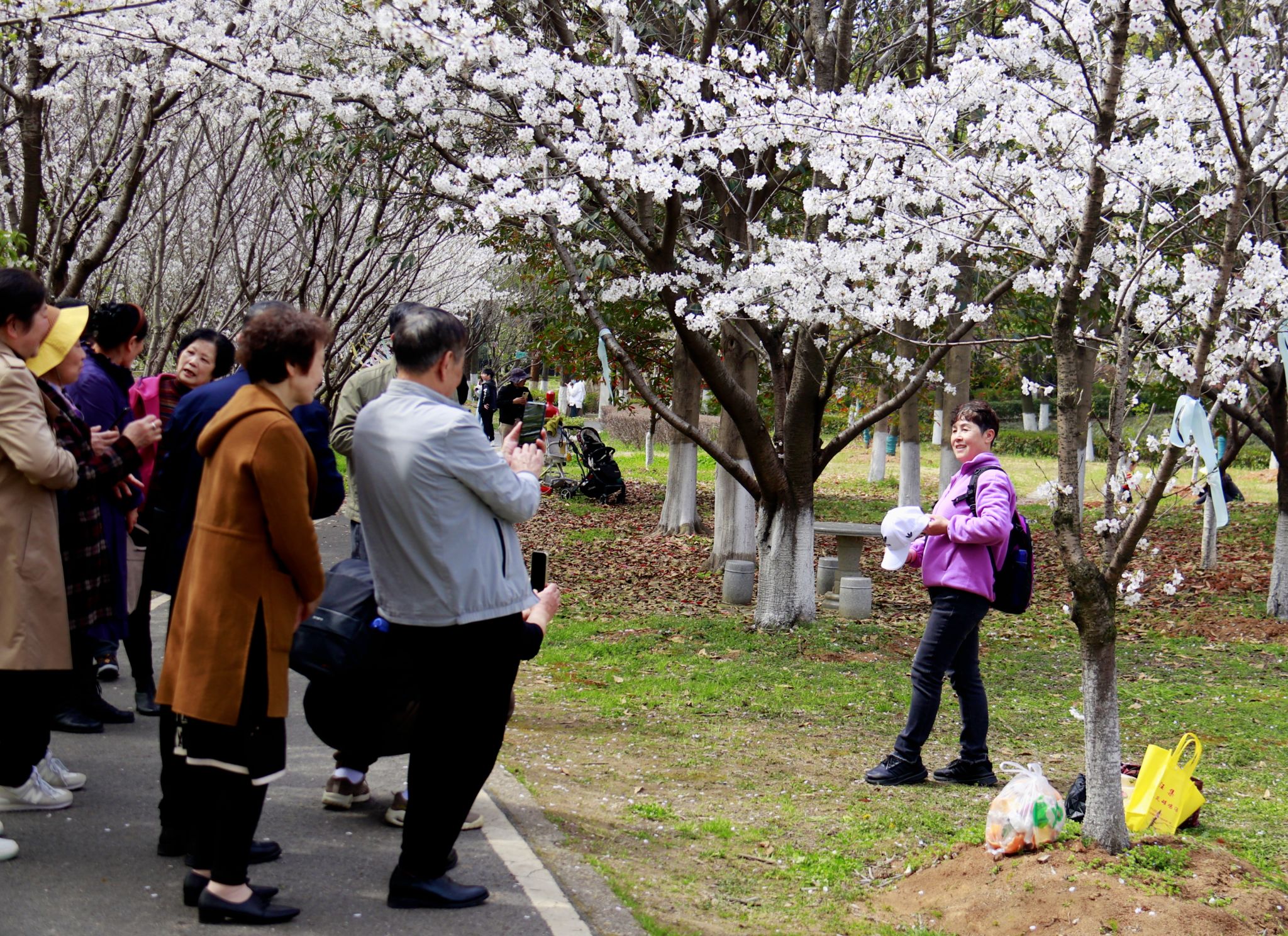 游客在樱花树下合影 郭劼摄
