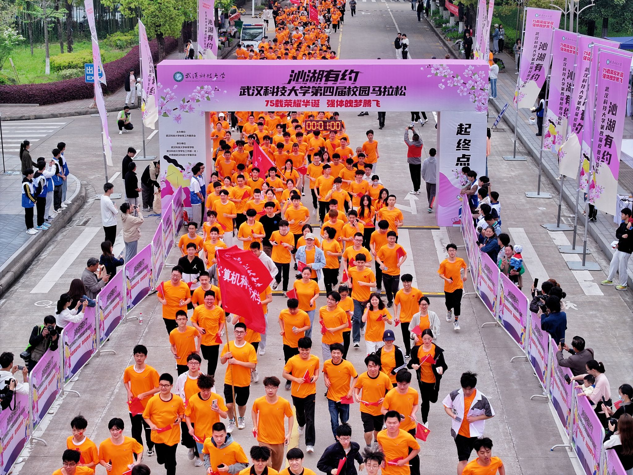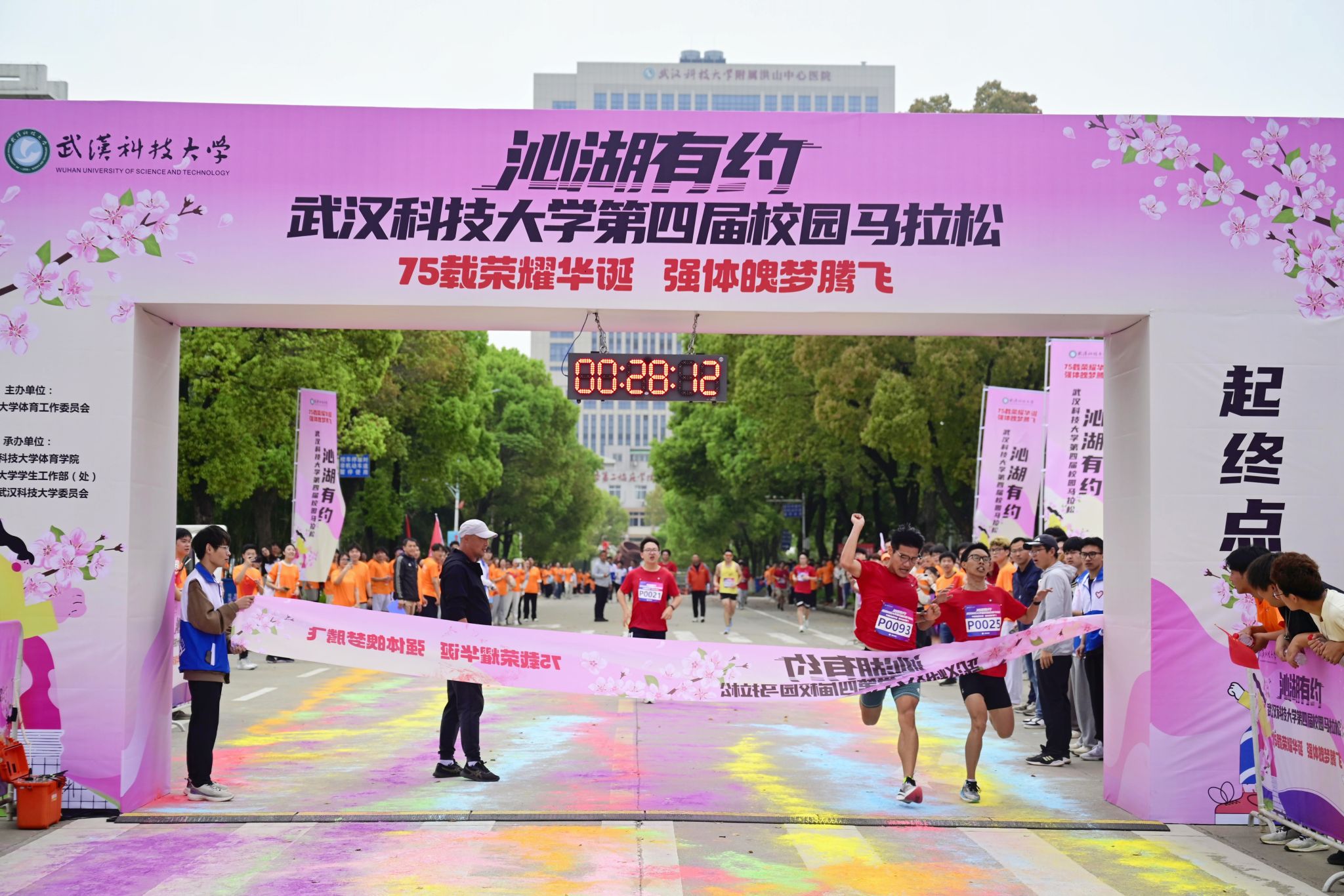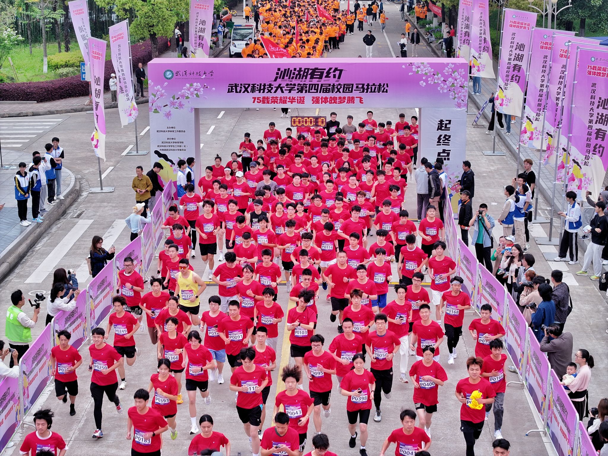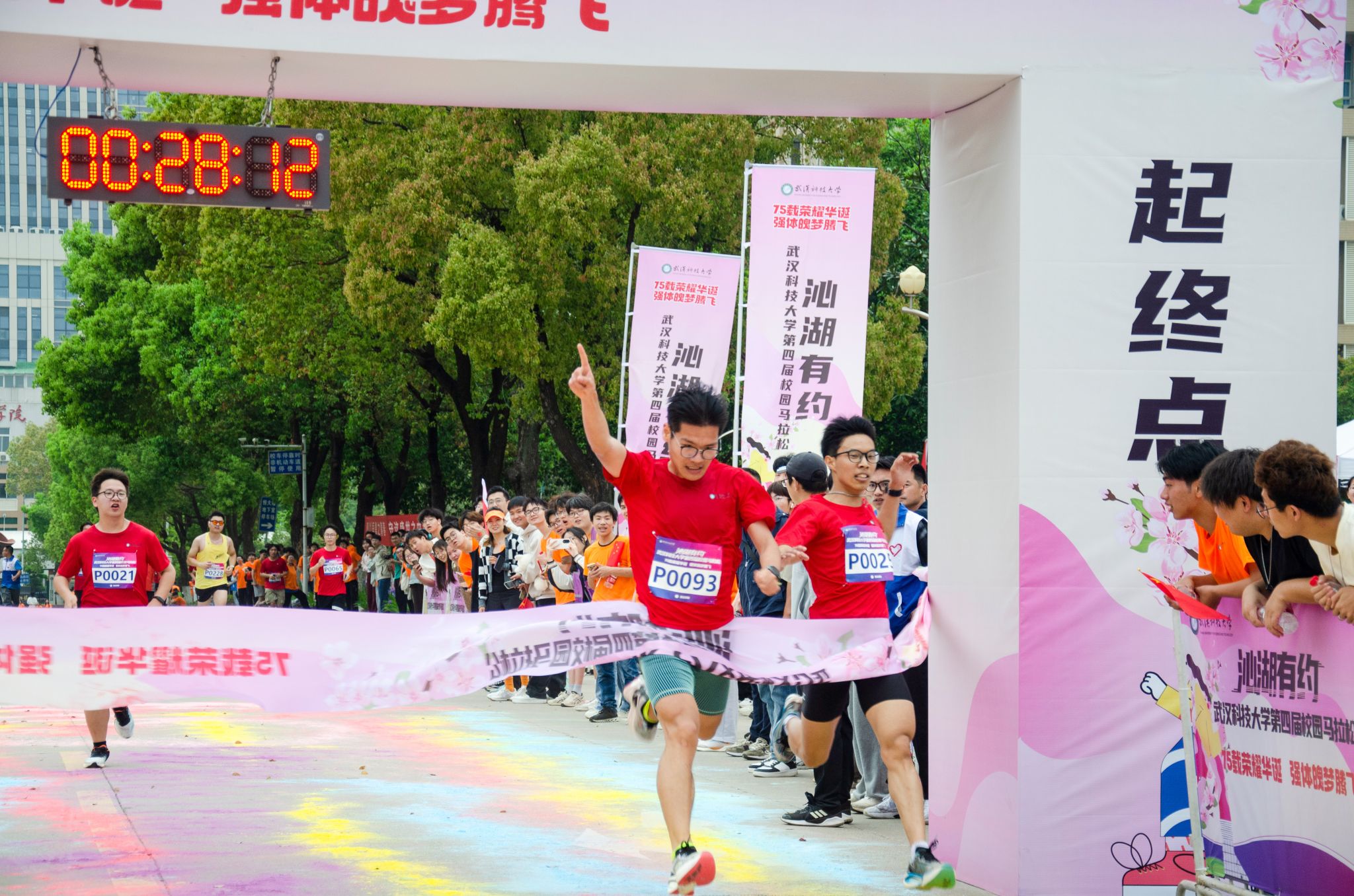 4月13日,为迎接庆祝中华人民共和国 75 华诞,落实“体育强国”战略,丰富课余文化生活,鸭脖于黄家湖校区顺利开展“沁湖有约·第四届校园马拉松”比赛。校长倪红卫鸣枪发令起跑,党委常委、组织部部长刘时新致辞。2023 年“环湖跑”前十名学生、学生精英组女子前八名、学生精英组男子前八名、精英组团体前八名以及获得优秀组织奖的单位先后揭晓。其中来自机械学院的刘瑞龙以28分13秒的成绩获得精英组冠军。(熊雄 李周阳)