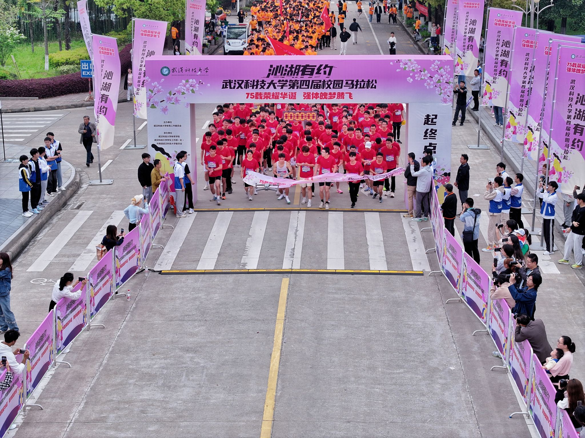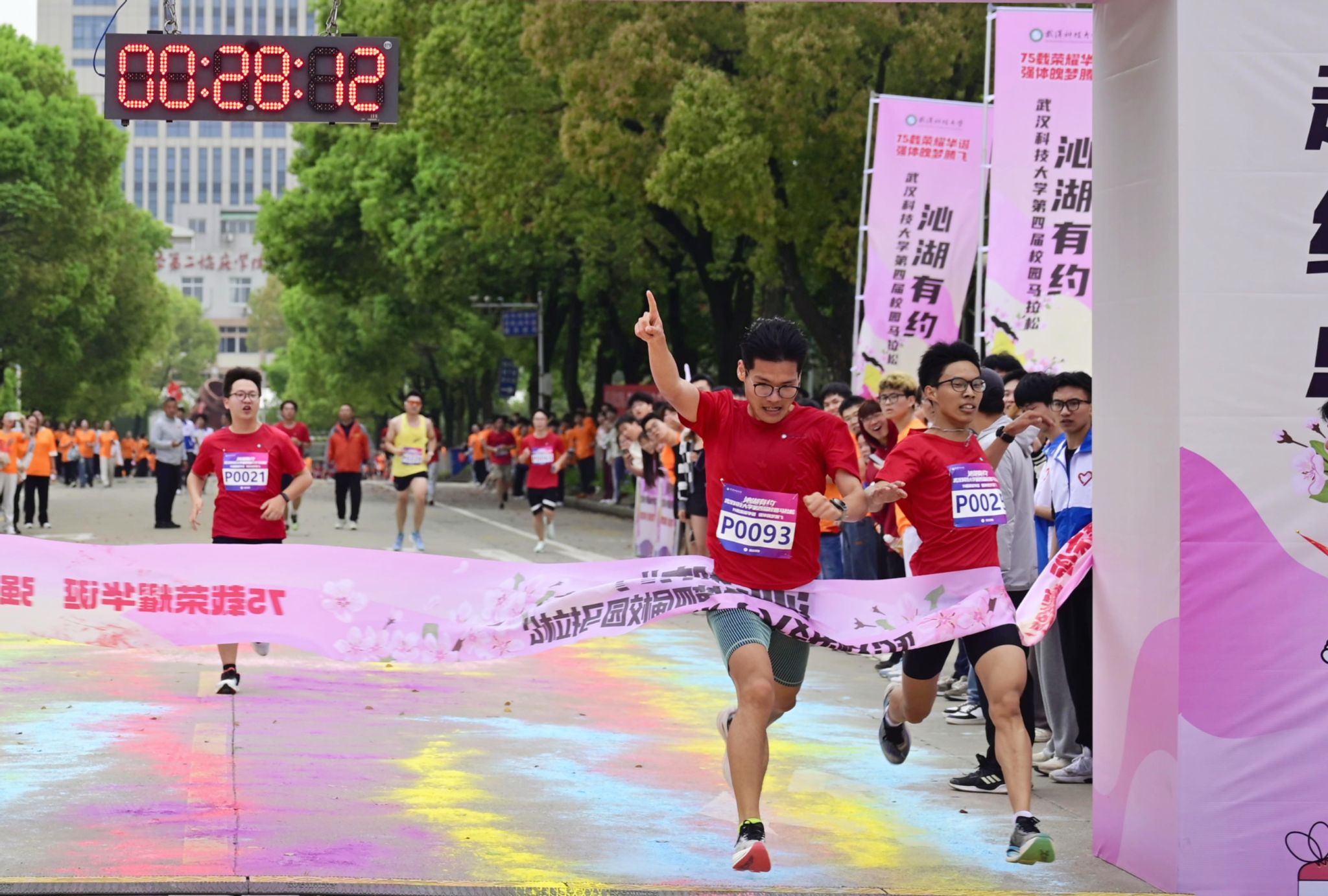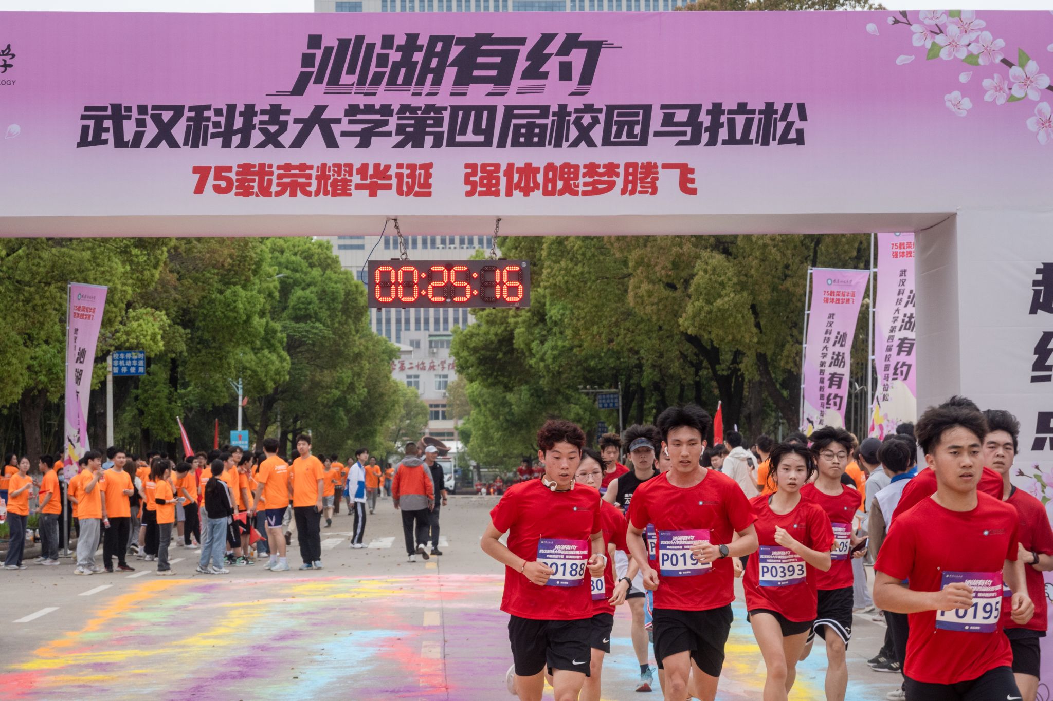 4月13日,为迎接庆祝中华人民共和国 75 华诞,落实“体育强国”战略,丰富课余文化生活,鸭脖于黄家湖校区顺利开展“沁湖有约·第四届校园马拉松”比赛。校长倪红卫鸣枪发令起跑,党委常委、组织部部长刘时新致辞。2023 年“环湖跑”前十名学生、学生精英组女子前八名、学生精英组男子前八名、精英组团体前八名以及获得优秀组织奖的单位先后揭晓。其中来自机械学院的刘瑞龙以28分13秒的成绩获得精英组冠军。(熊雄 李周阳)