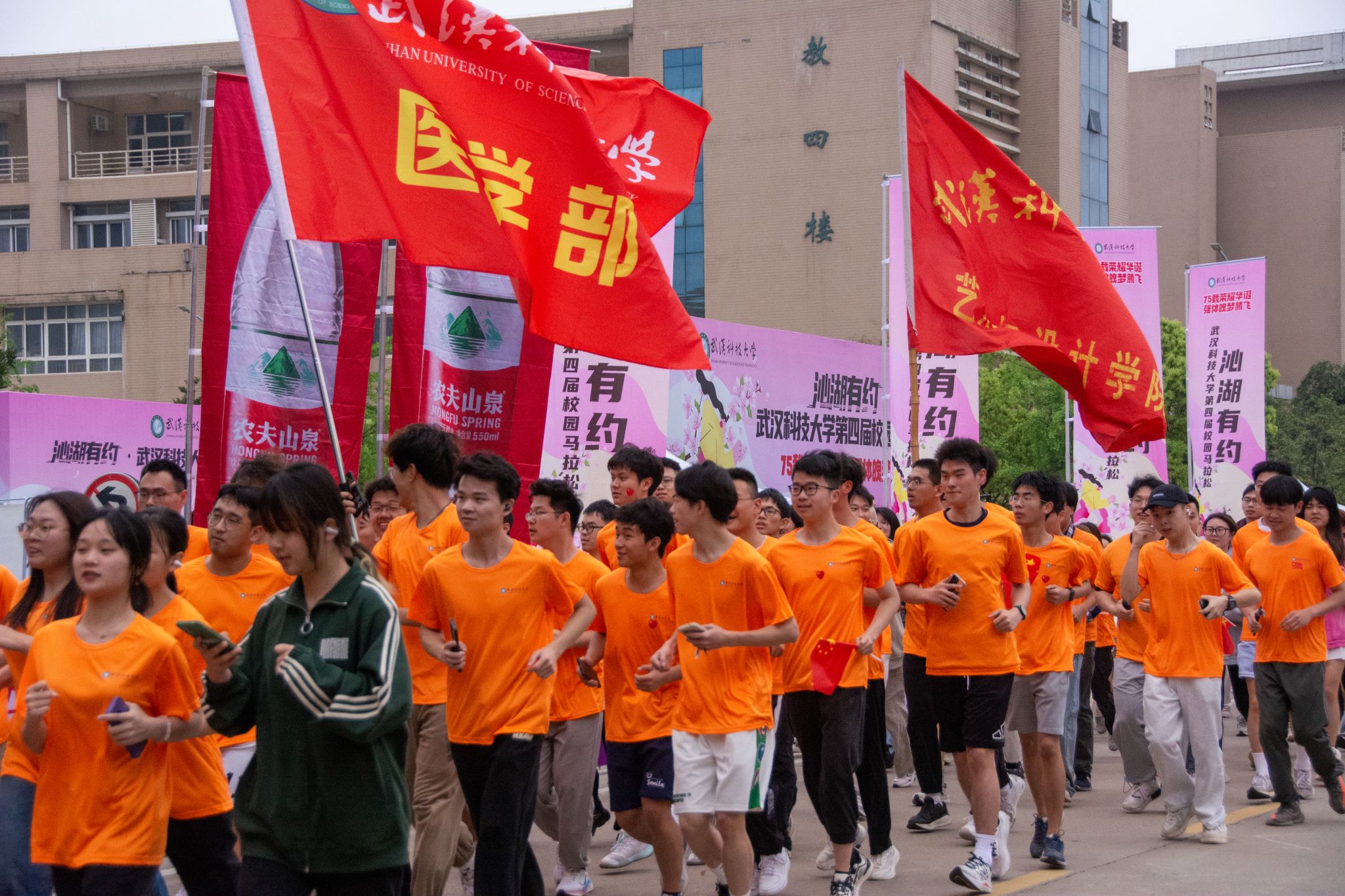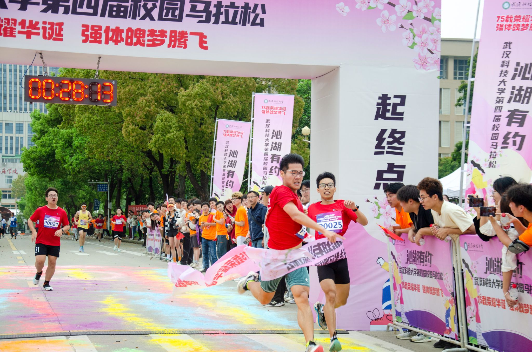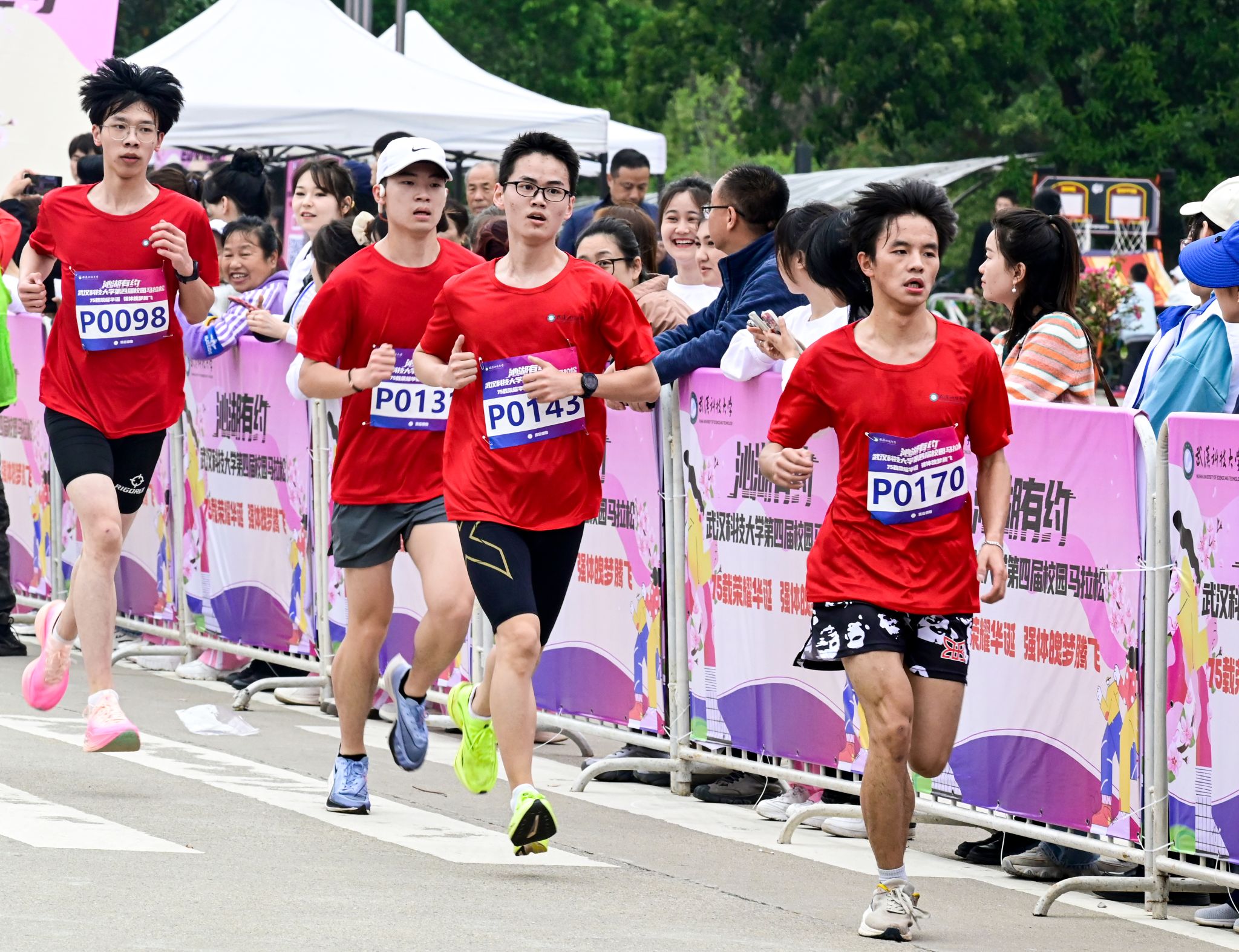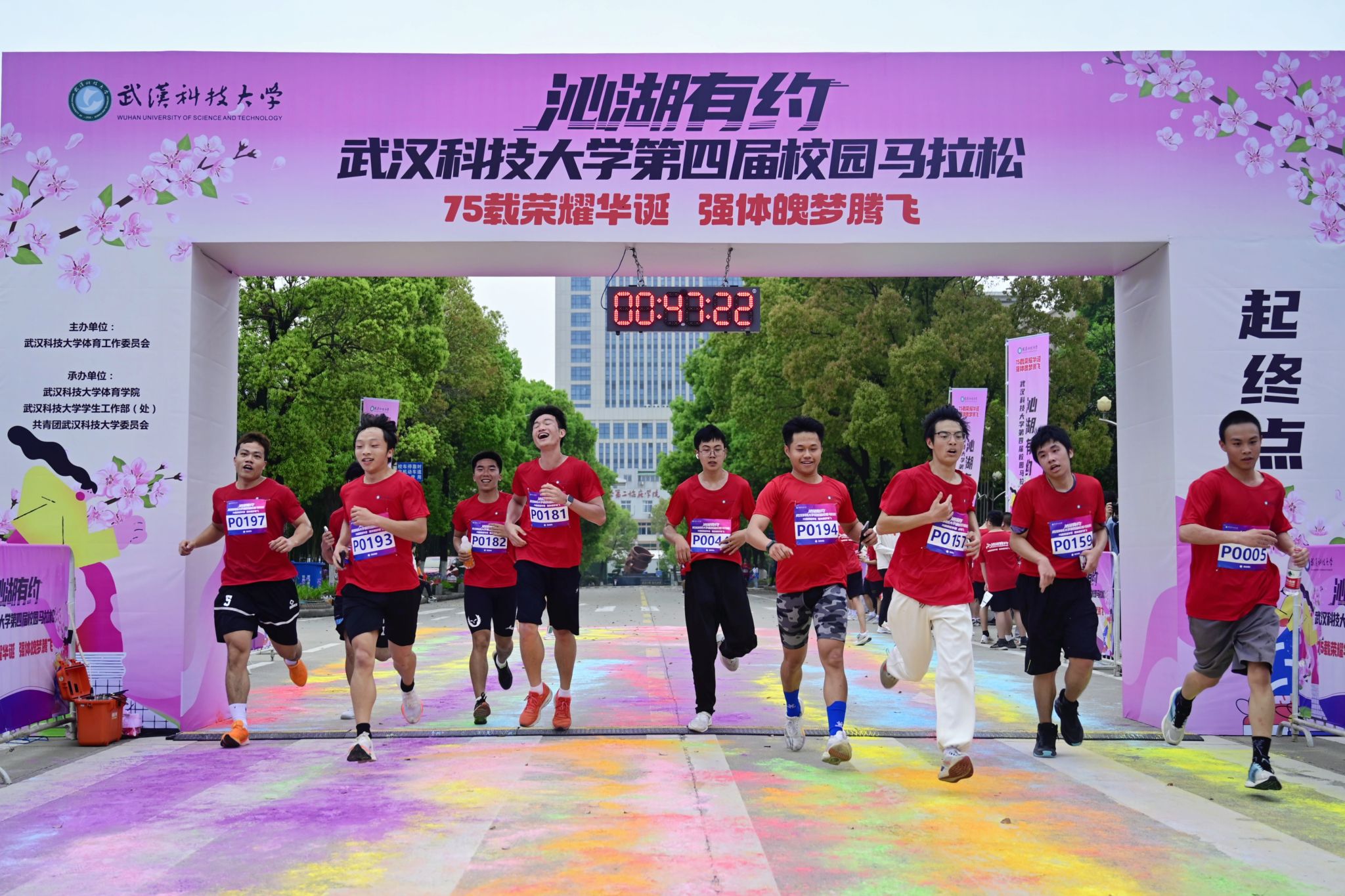 4月13日,为迎接庆祝中华人民共和国 75 华诞,落实“体育强国”战略,丰富课余文化生活,鸭脖于黄家湖校区顺利开展“沁湖有约·第四届校园马拉松”比赛。校长倪红卫鸣枪发令起跑,党委常委、组织部部长刘时新致辞。2023 年“环湖跑”前十名学生、学生精英组女子前八名、学生精英组男子前八名、精英组团体前八名以及获得优秀组织奖的单位先后揭晓。其中来自机械学院的刘瑞龙以28分13秒的成绩获得精英组冠军。(熊雄 李周阳)