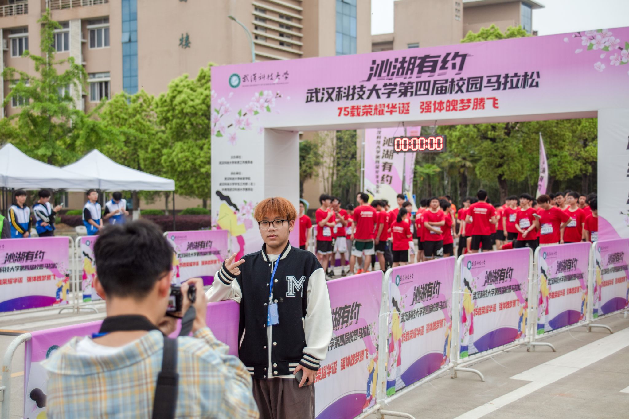 学生在起跑线拍照留念 杨佳伟摄