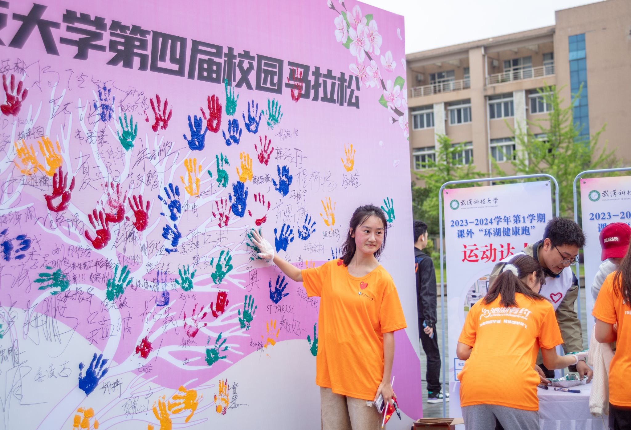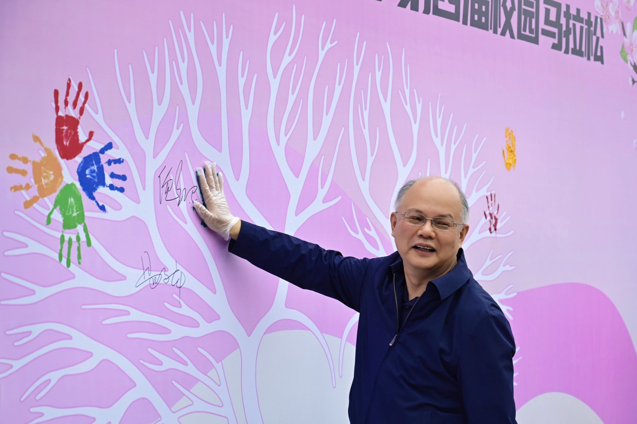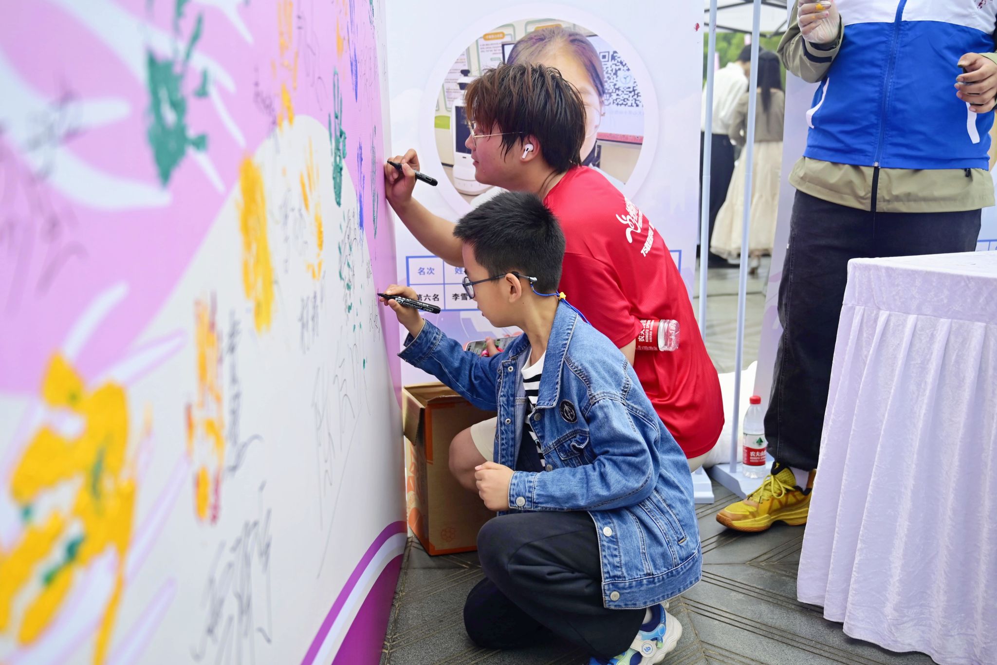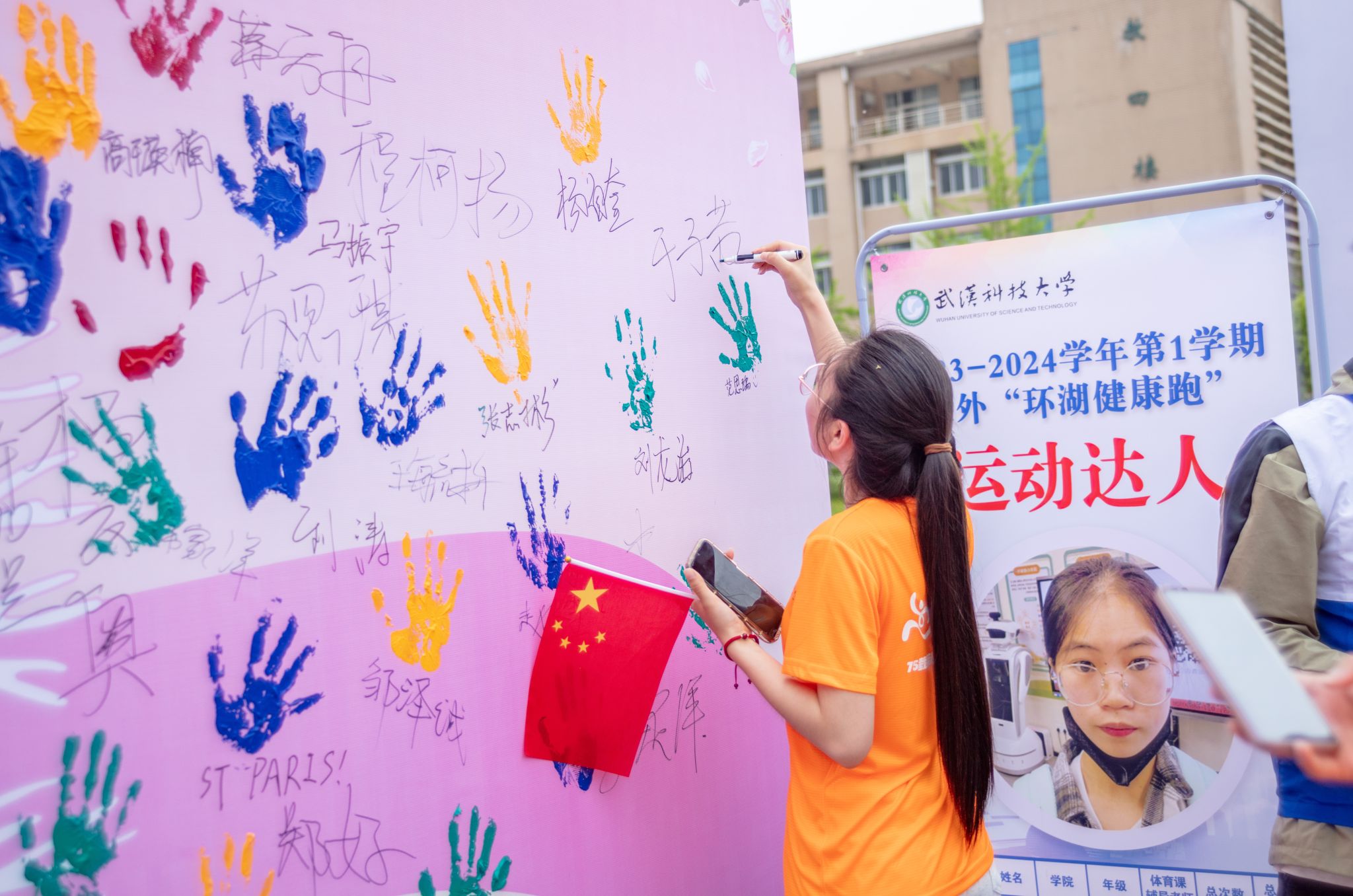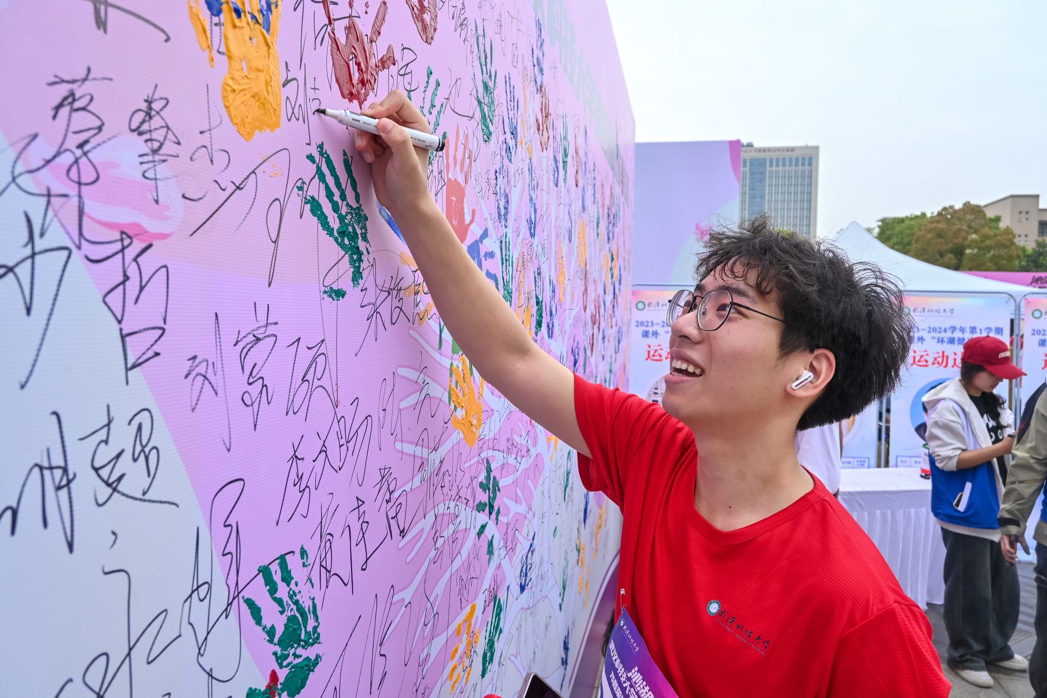 参与马拉松的同学签名墙上签名 杨佳伟摄