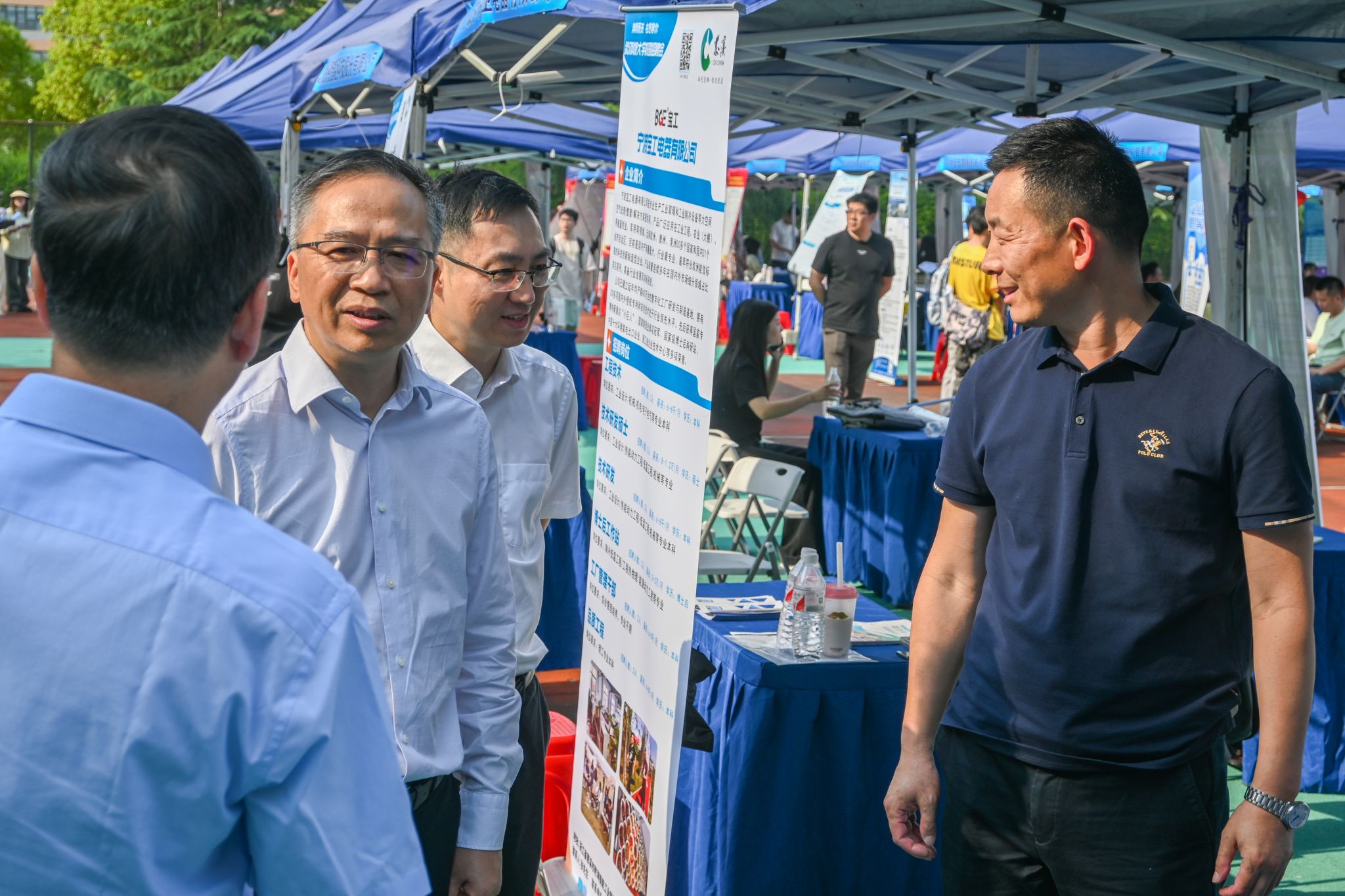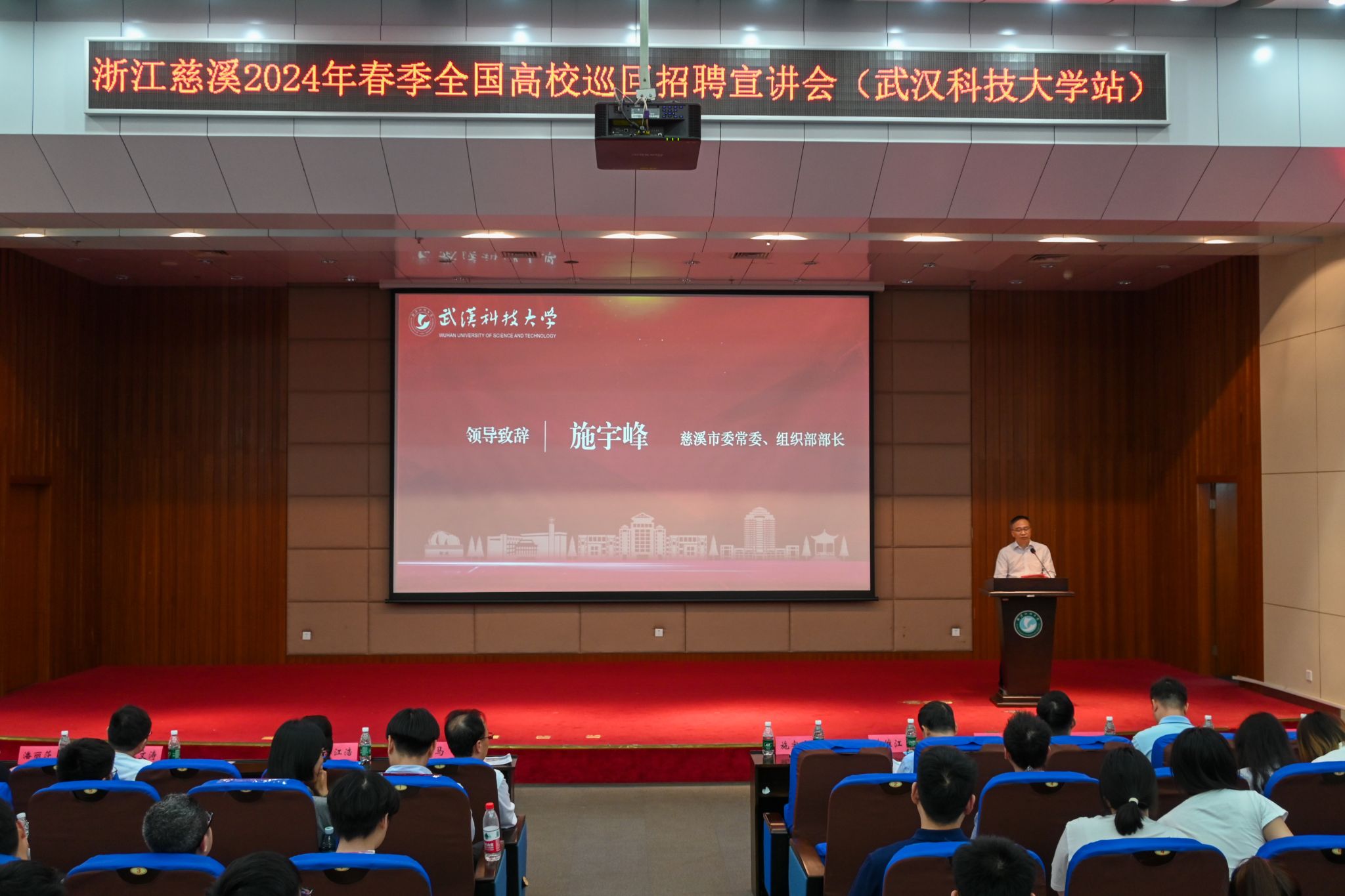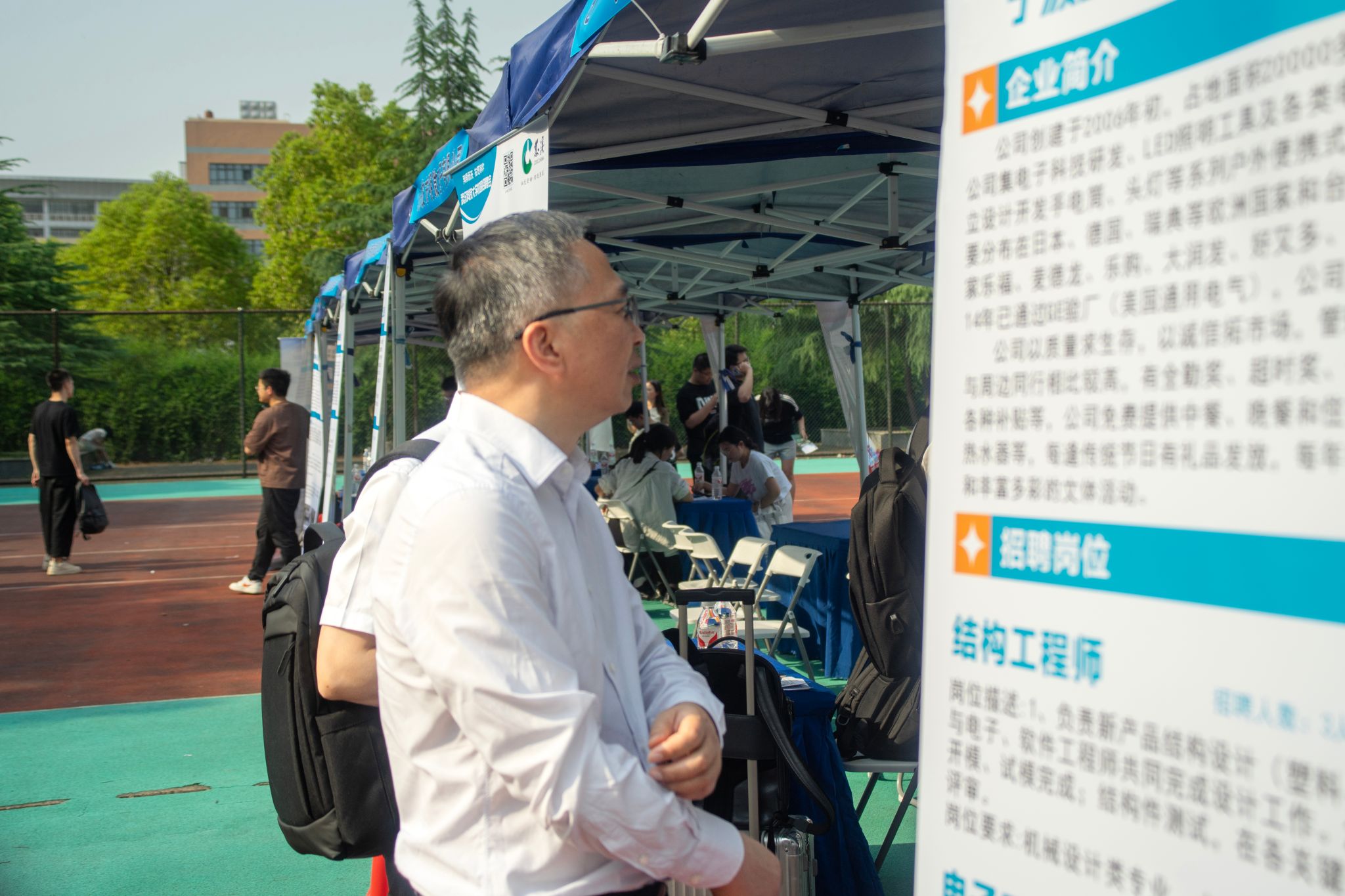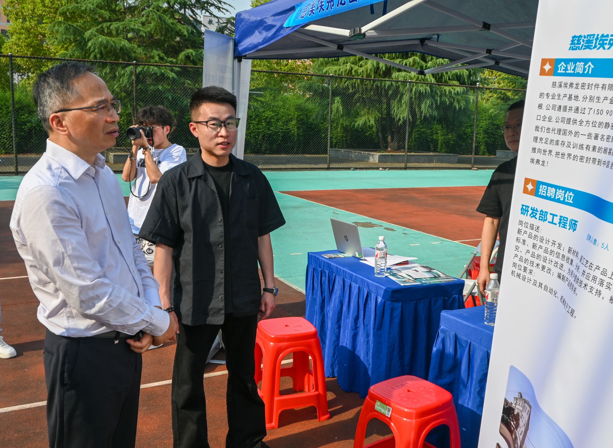 5月15日,慈溪市春季全国高校巡回招聘宣讲会在yabo鸭脖官网黄家湖校区顺利召开,并在南苑操场组织招聘会,学生积极参加,现场火爆。会议结束后,慈溪市委常委、组织部长施宇峰一行到鸭脖来访。校园招聘宣讲会上,施宇峰介绍了慈溪市人才政策,当地企业代表进行了企业宣讲。随后,施宇峰一行参观了校史馆、廉园、大学生心理健康教育中心、艺术与科学研究中心高温颜色釉彩画展厅、汽车学院实验室和招聘会现场。(黄宏杰 肖善明)