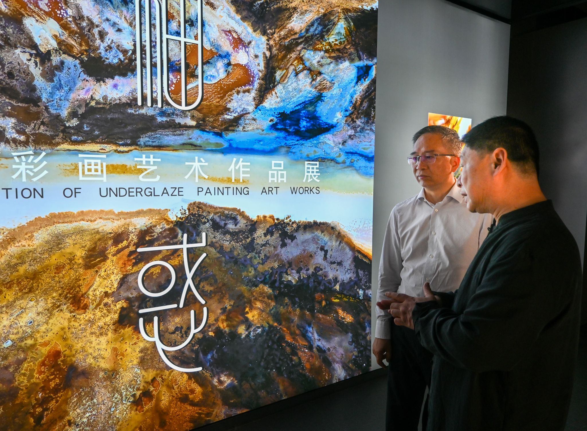 施宇峰一行参观高温颜色釉彩画展厅 黄宏杰摄