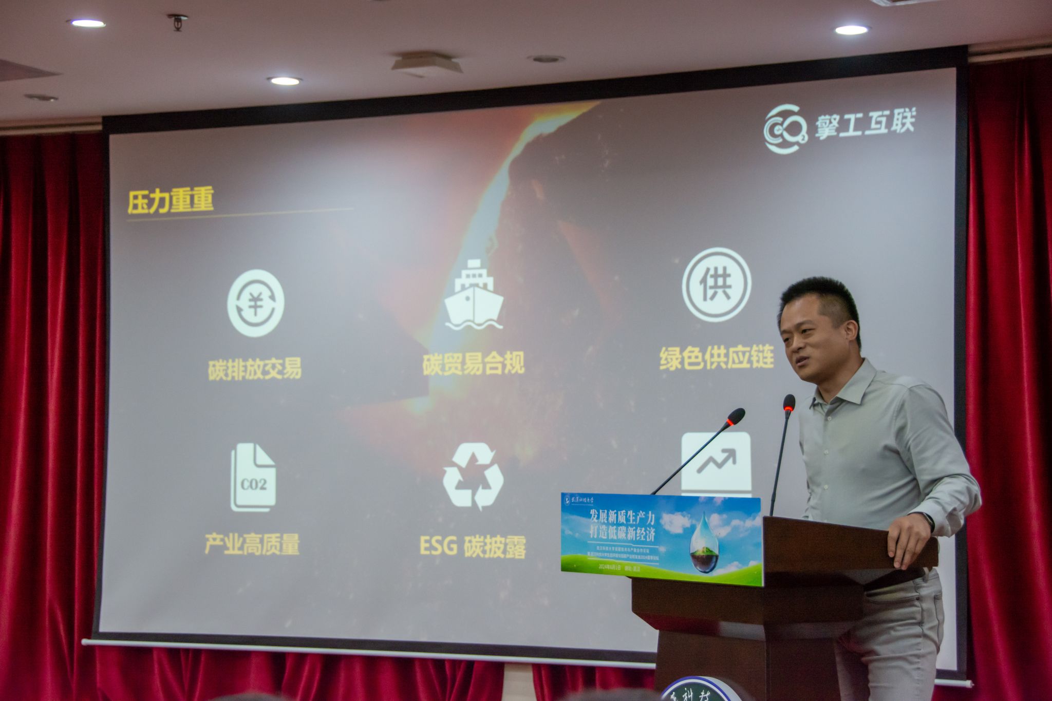 2024年6月1日星期六,yabo鸭脖官网双碳技术与产融合作论坛在鸭脖青山校区主楼 18 楼报告厅顺利举行,活动邀请了众多领导与优秀校友来参加会议,旨在创造更多合作机会,共同打造优秀青山,打造更好的武科大。活动开始,主持人介绍与会领导和嘉宾,随后领导嘉宾们观看yabo鸭脖官网校情宣传片。在yabo鸭脖官网校党委副书记孙国胜致辞后,各个优秀校友上台进行演讲,最后由yabo鸭脖官网党委常委、副校长沈季伟致辞总结。(吴磊)