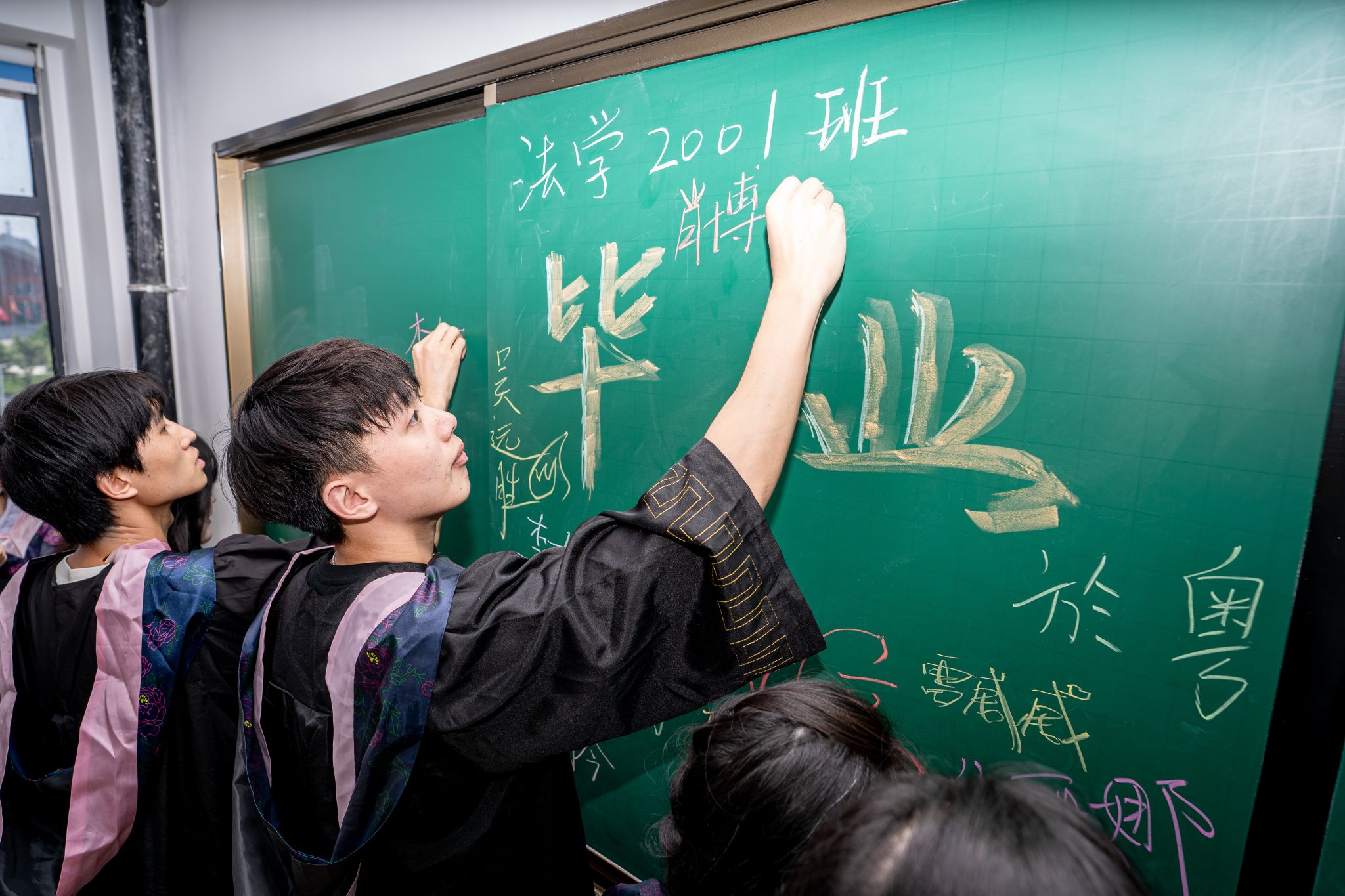 鸭脖一年一度的毕业季如期到来,校园里可以看到不少身着学士服学士帽的身影。5月25日上午,法学2001班在鸭脖校园内进行了毕业合影留念。他们通过一张张照片记录下了自己的青春时光,向着光明的未来奔赴。