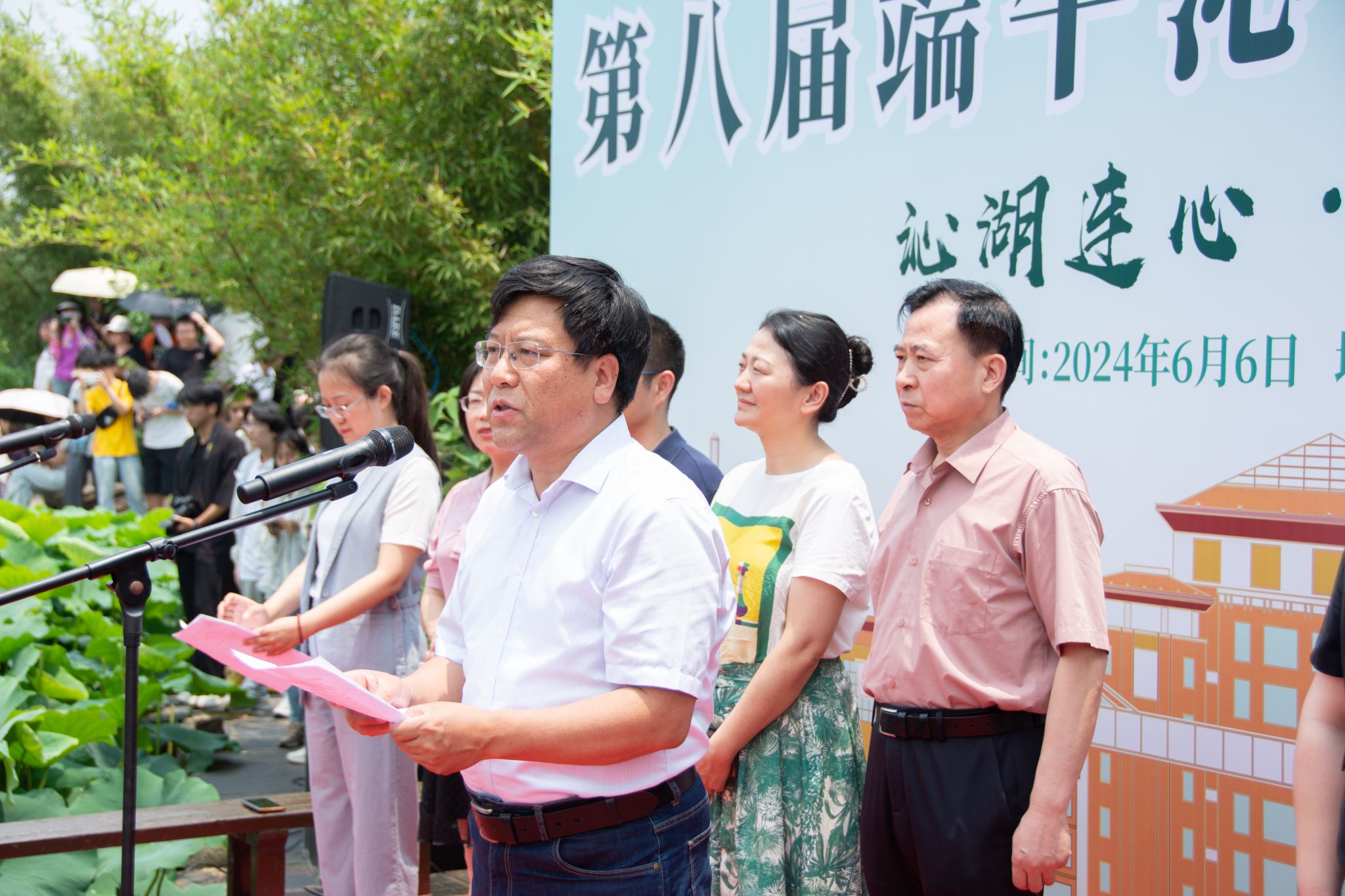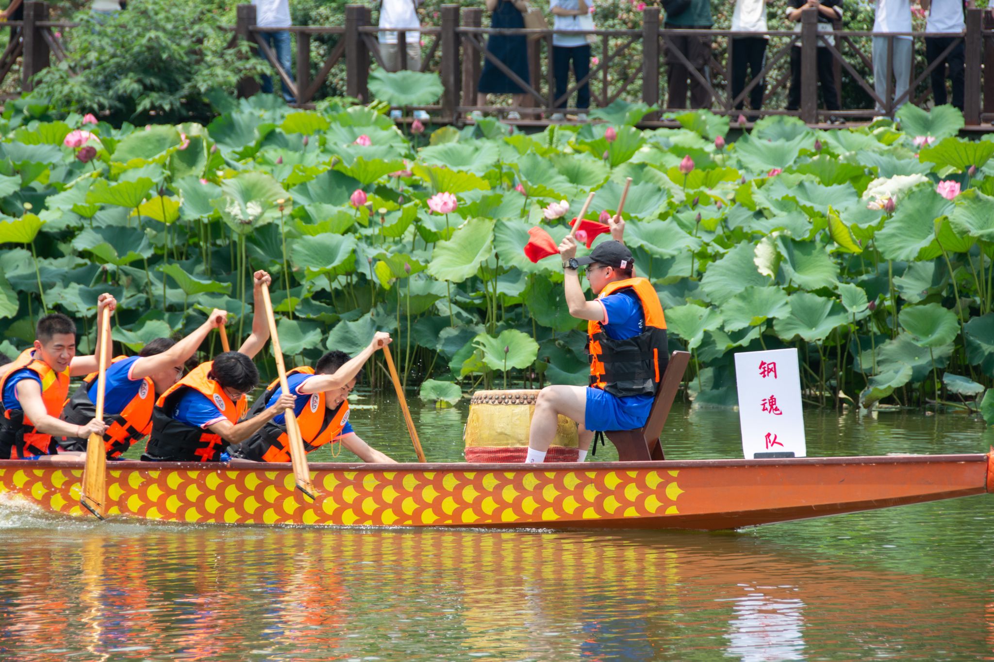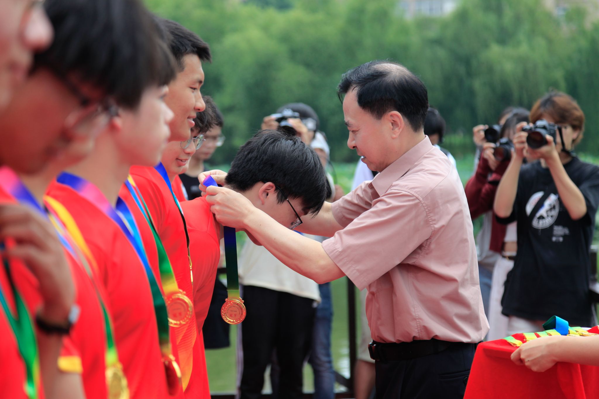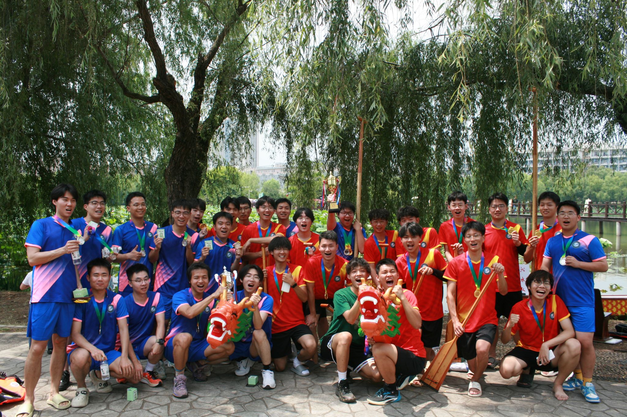 6月6日中午,鸭脖于沁湖畔举办第八届“沁湖连心·同舟共济”端午龙舟友谊赛,副校长沈季伟致辞,校团委副书记向方新宣读赛事竞赛规则、运动员代表宣誓,党委副书记孙国胜为龙舟点睛。由鸭脖龙舟协会成员组成的“沁水”队和由研究生组成的“钢魂”队角逐龙舟总决赛冠军,“沁水”队获胜。现场还设置了系列端午文化主题展演,不少留学生参与包粽子、做艾草,体验端午传统文化。