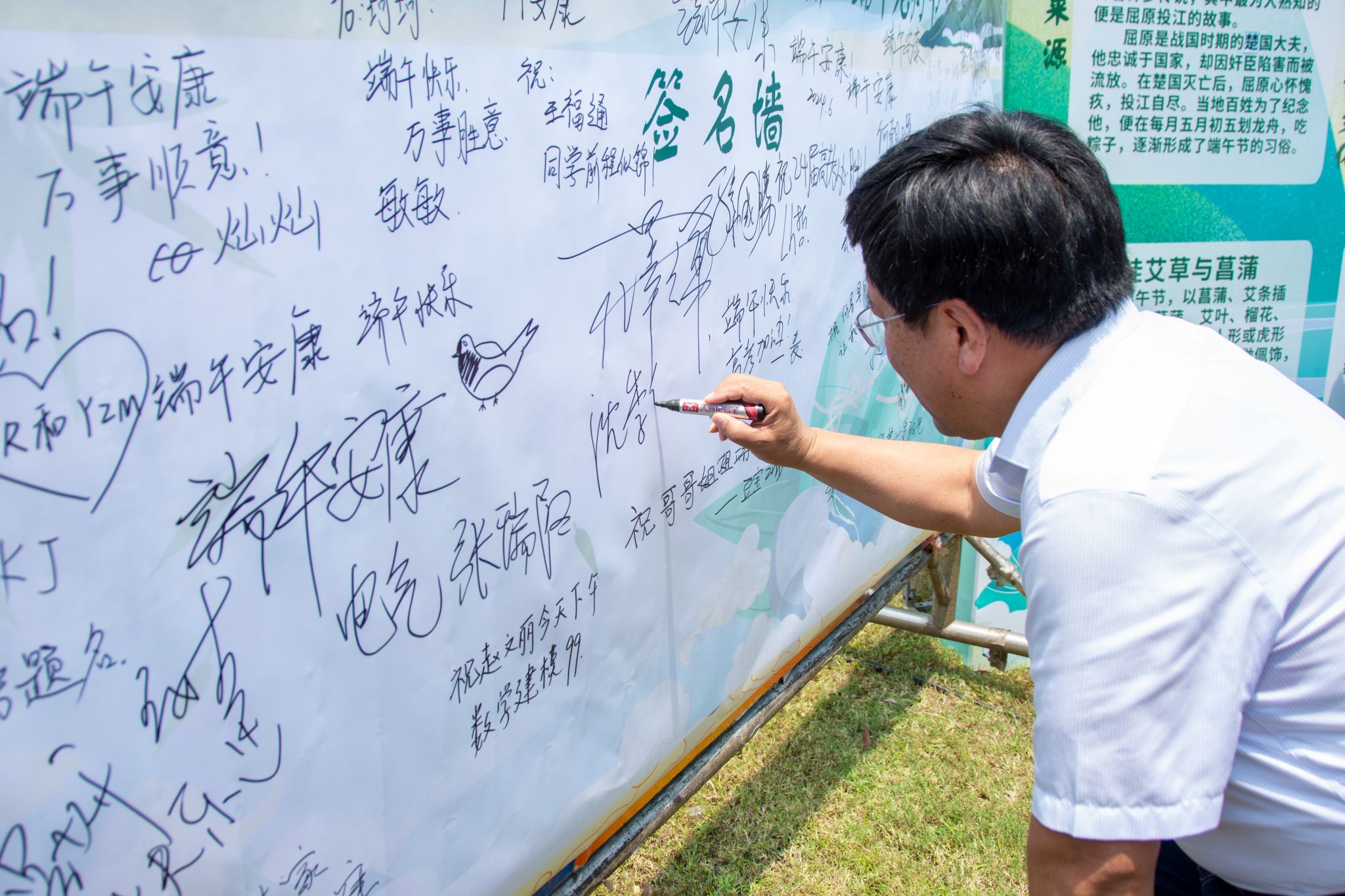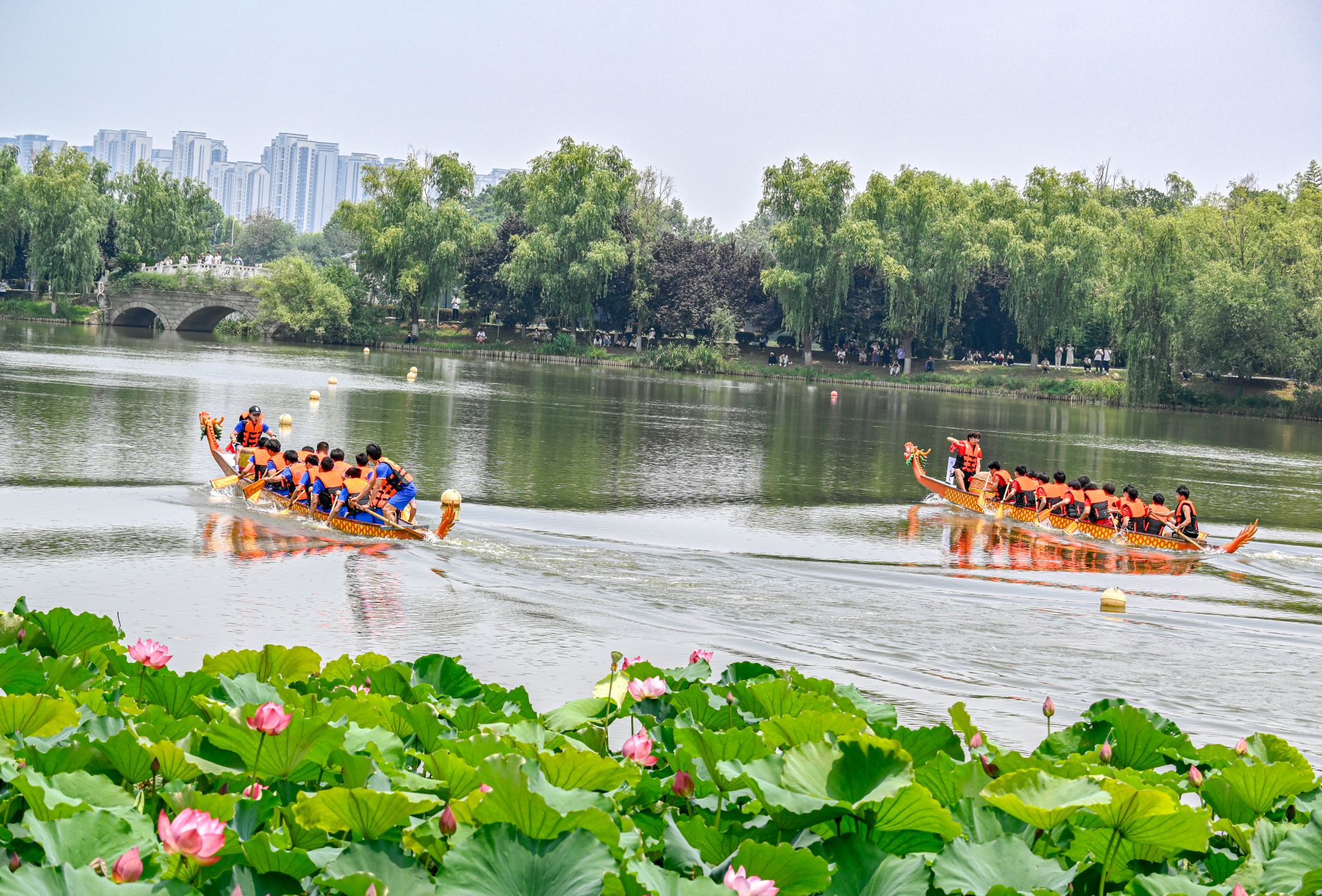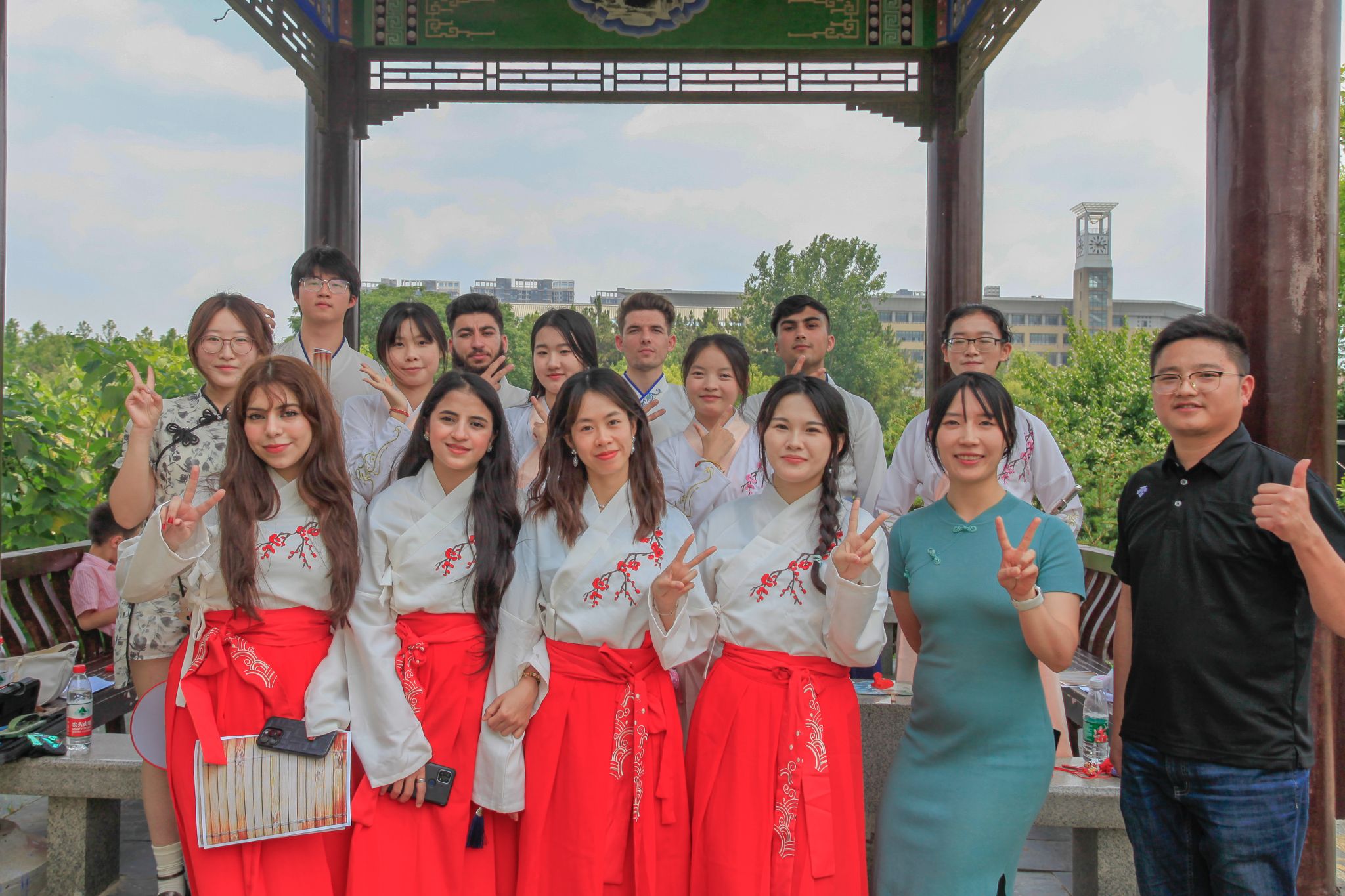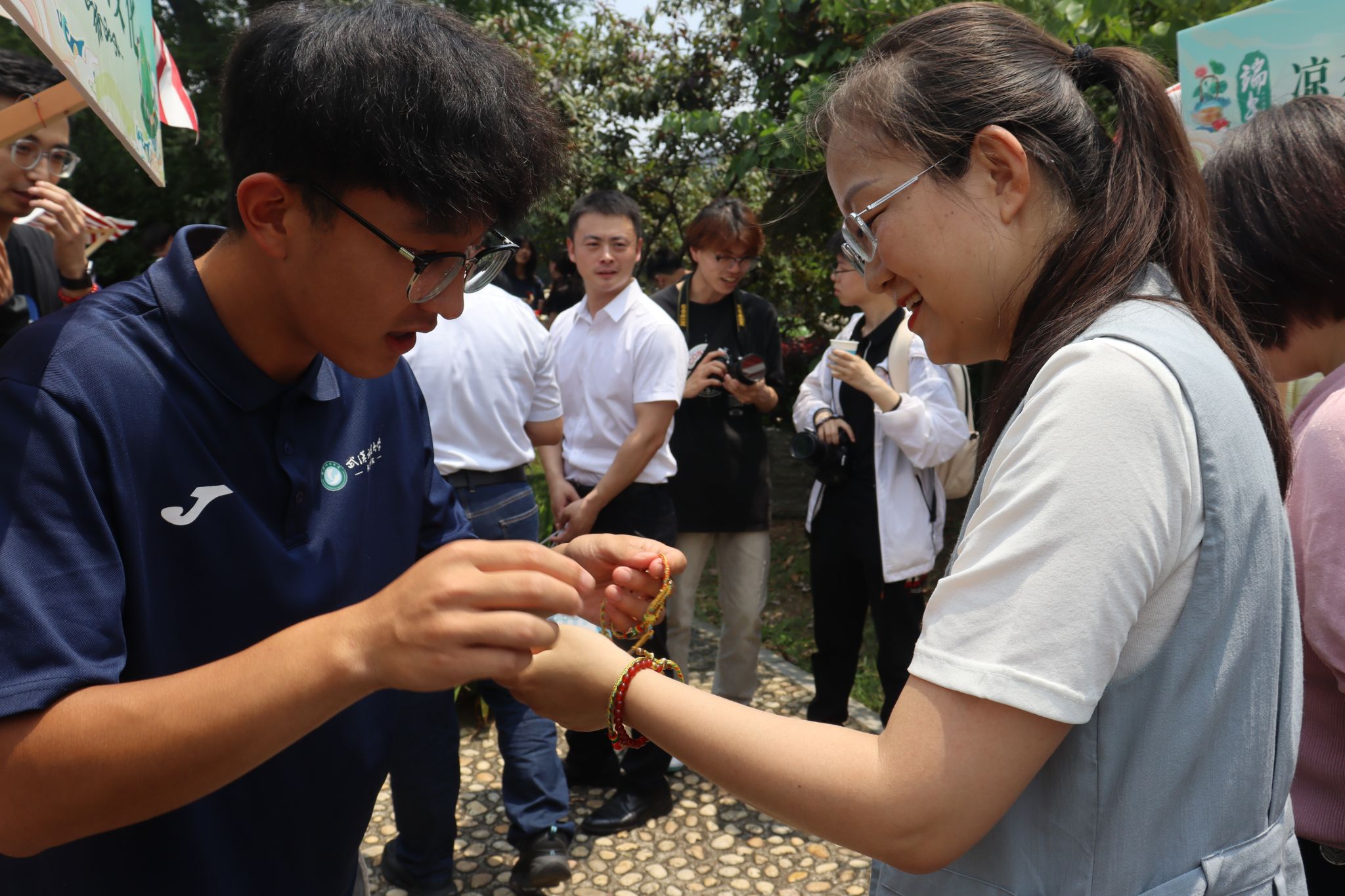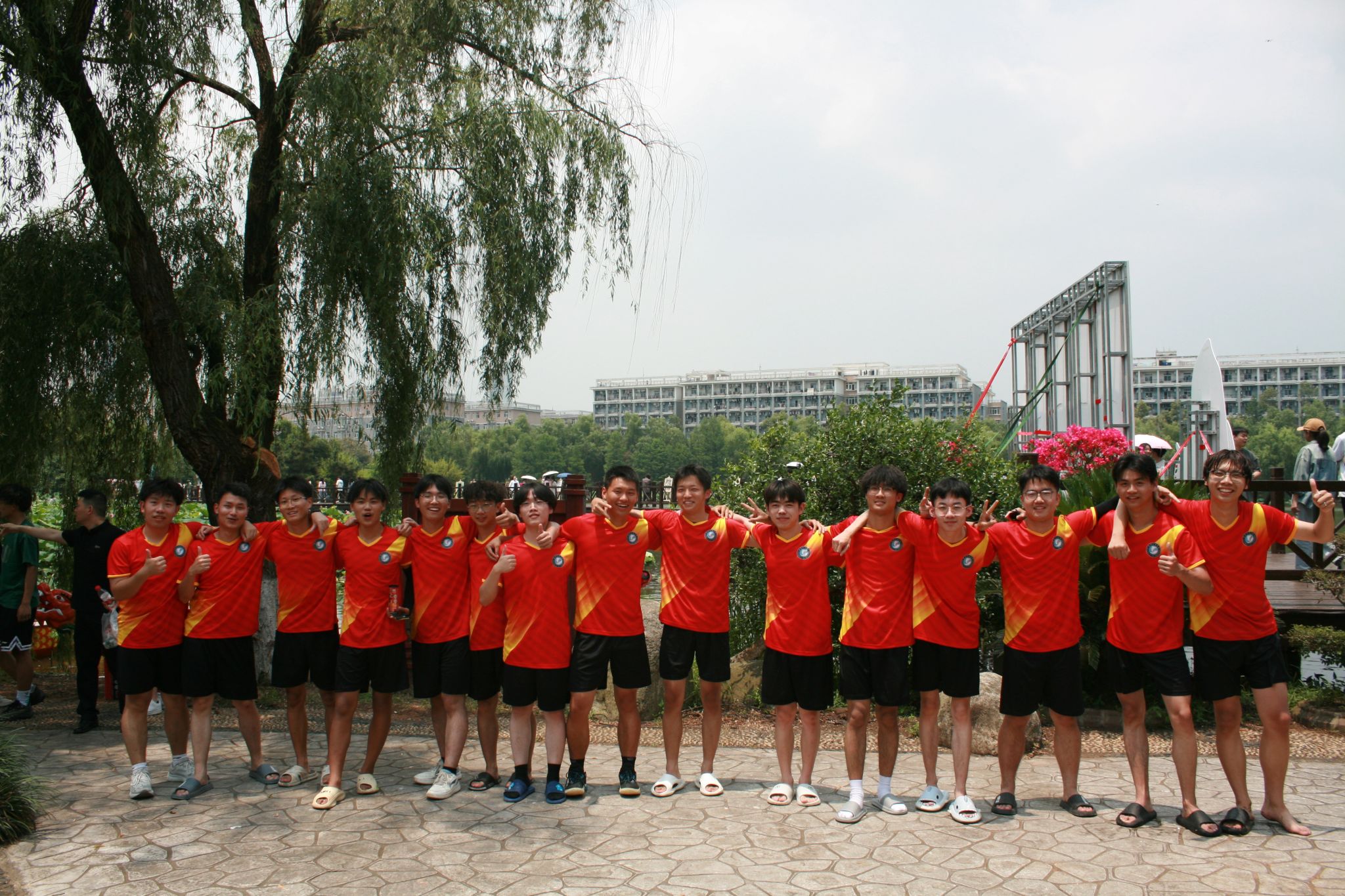 6月6日中午,鸭脖于沁湖畔举办第八届“沁湖连心·同舟共济”端午龙舟友谊赛,副校长沈季伟致辞,校团委副书记向方新宣读赛事竞赛规则、运动员代表宣誓,党委副书记孙国胜为龙舟点睛。由鸭脖龙舟协会成员组成的“沁水”队和由研究生组成的“钢魂”队角逐龙舟总决赛冠军,“沁水”队获胜。现场还设置了系列端午文化主题展演,不少留学生参与包粽子、做艾草,体验端午传统文化。