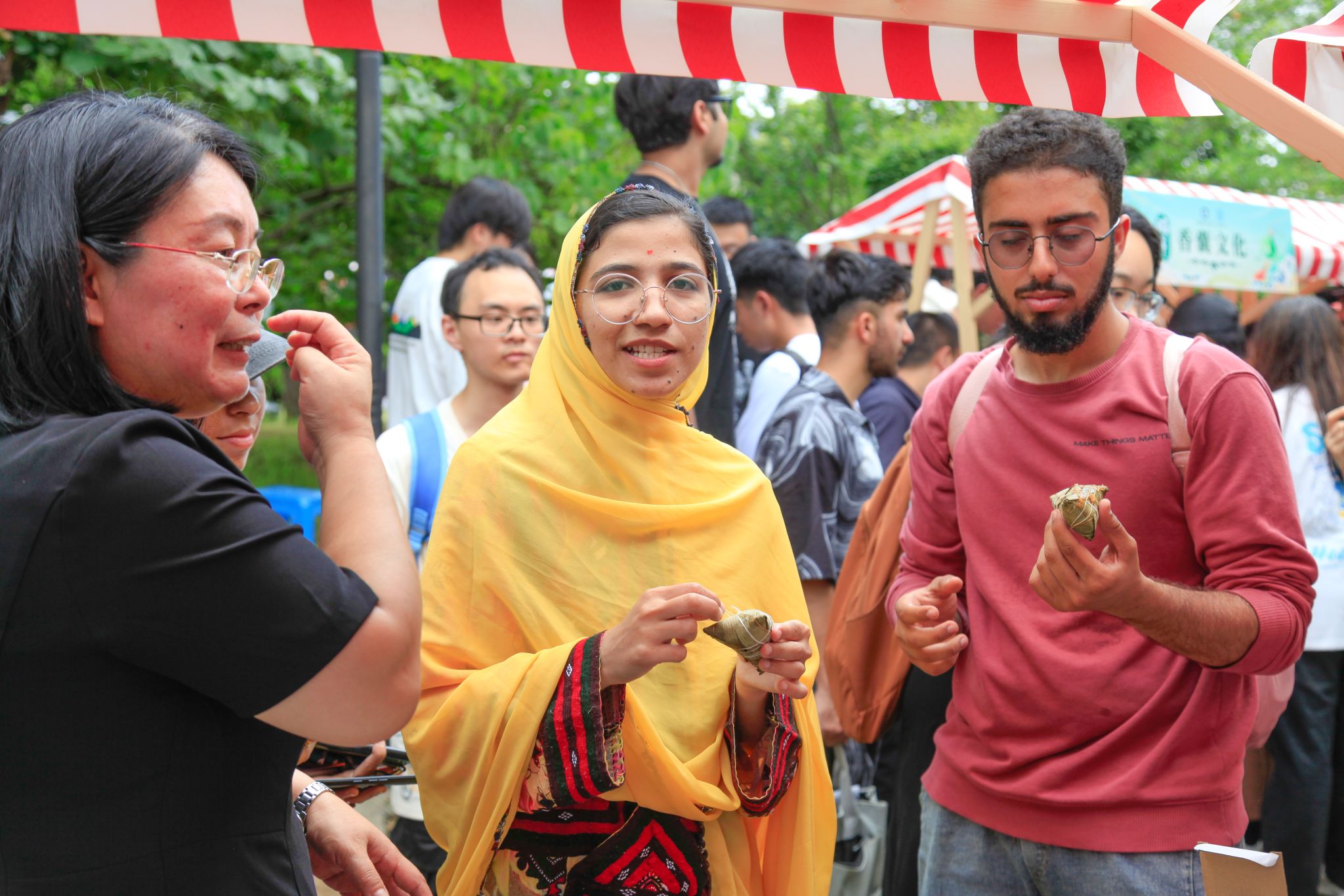 留学生展示包的粽子 李周阳摄