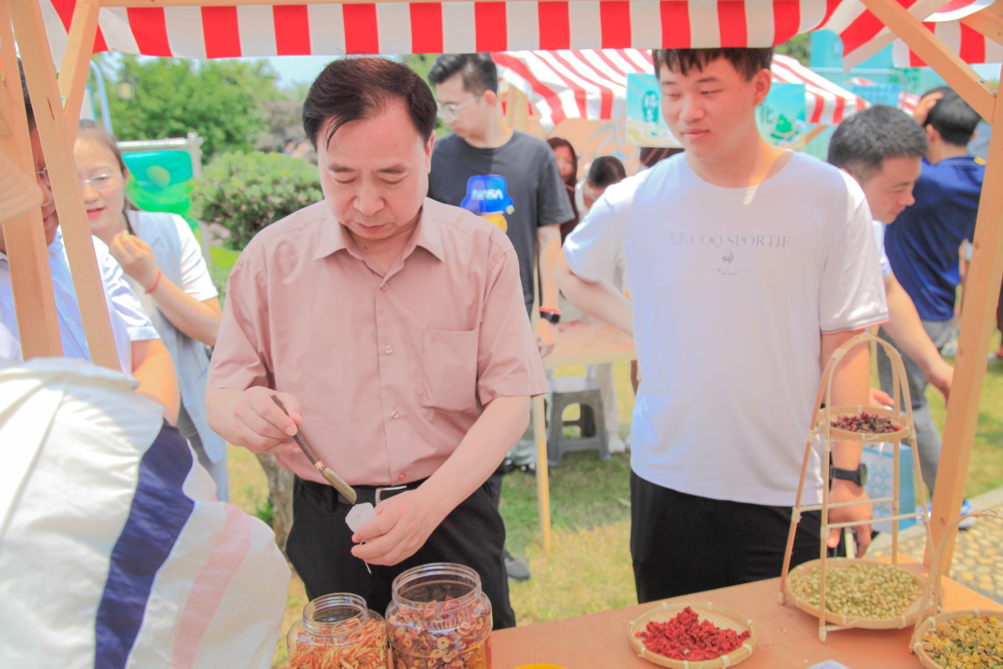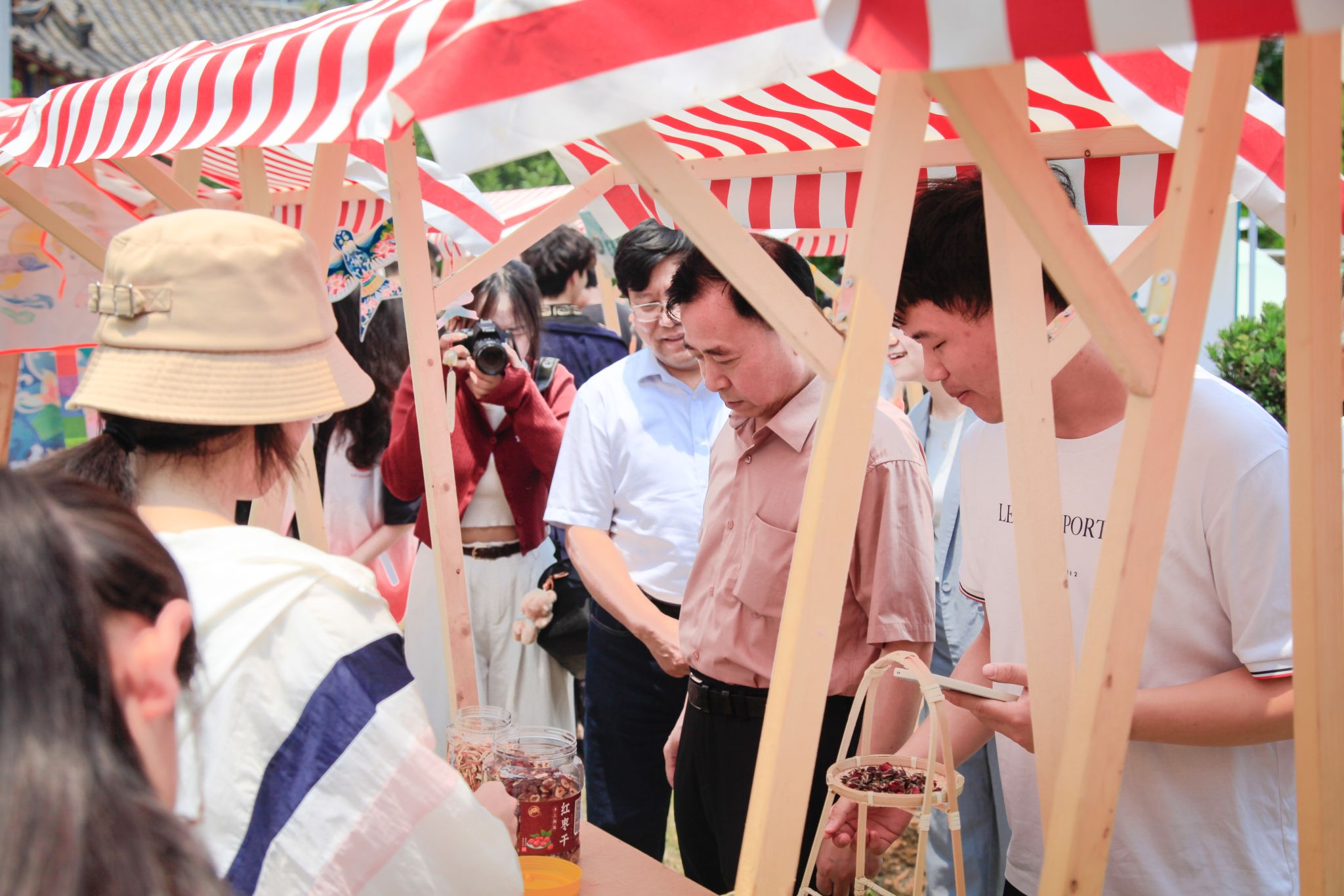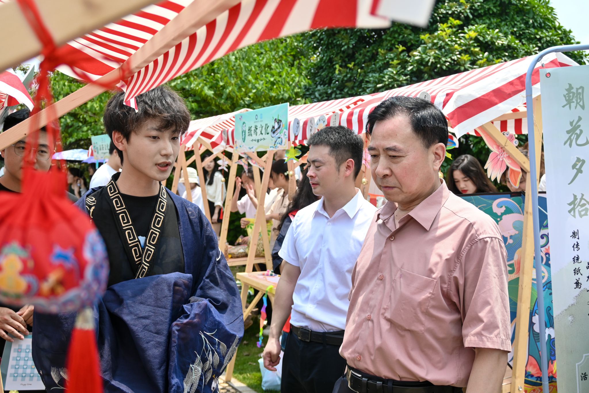 向校党委副书记孙国胜讲解文化节项目 李钰昌摄