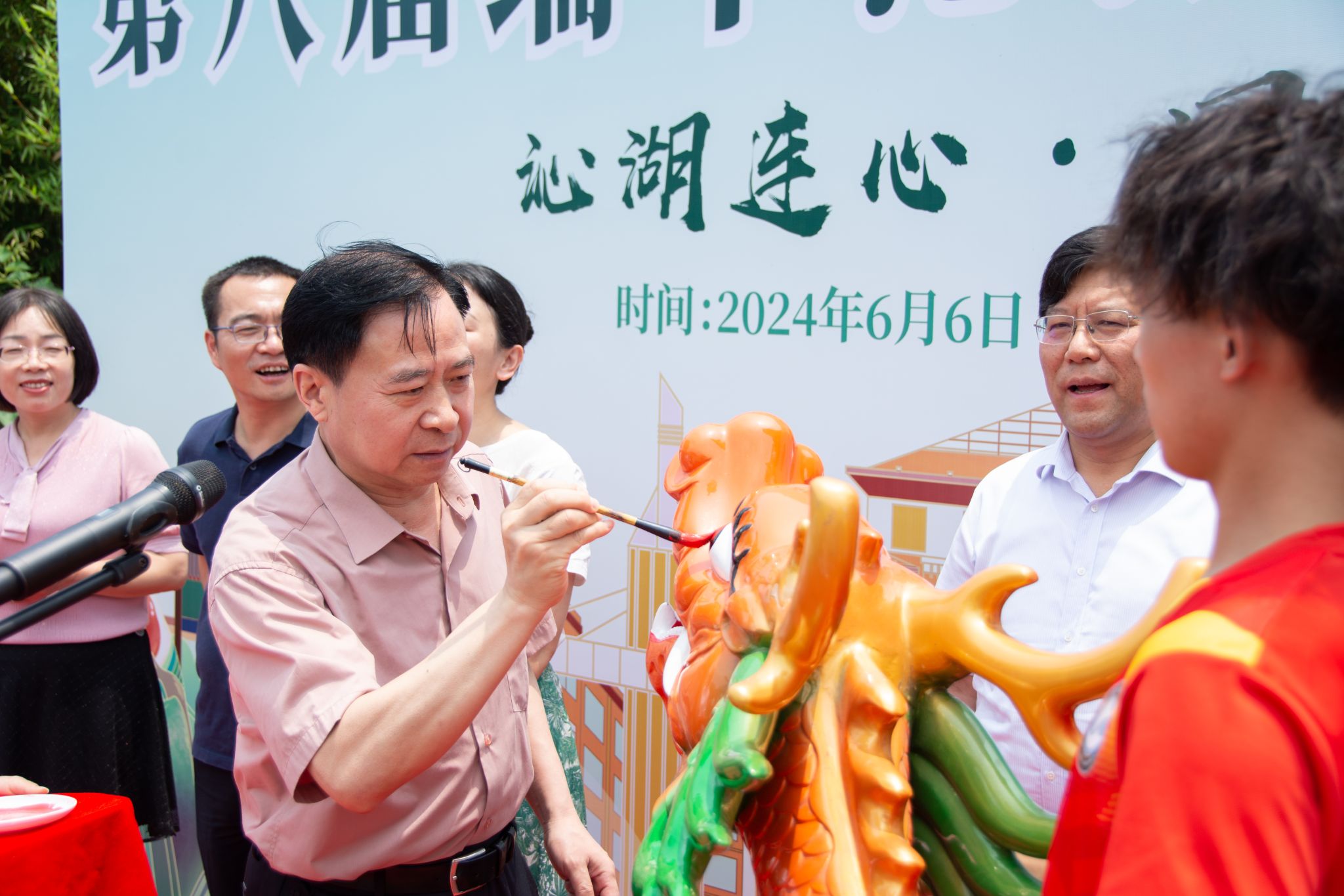 校党委副书记孙国胜为龙舟点睛 李钰昌摄