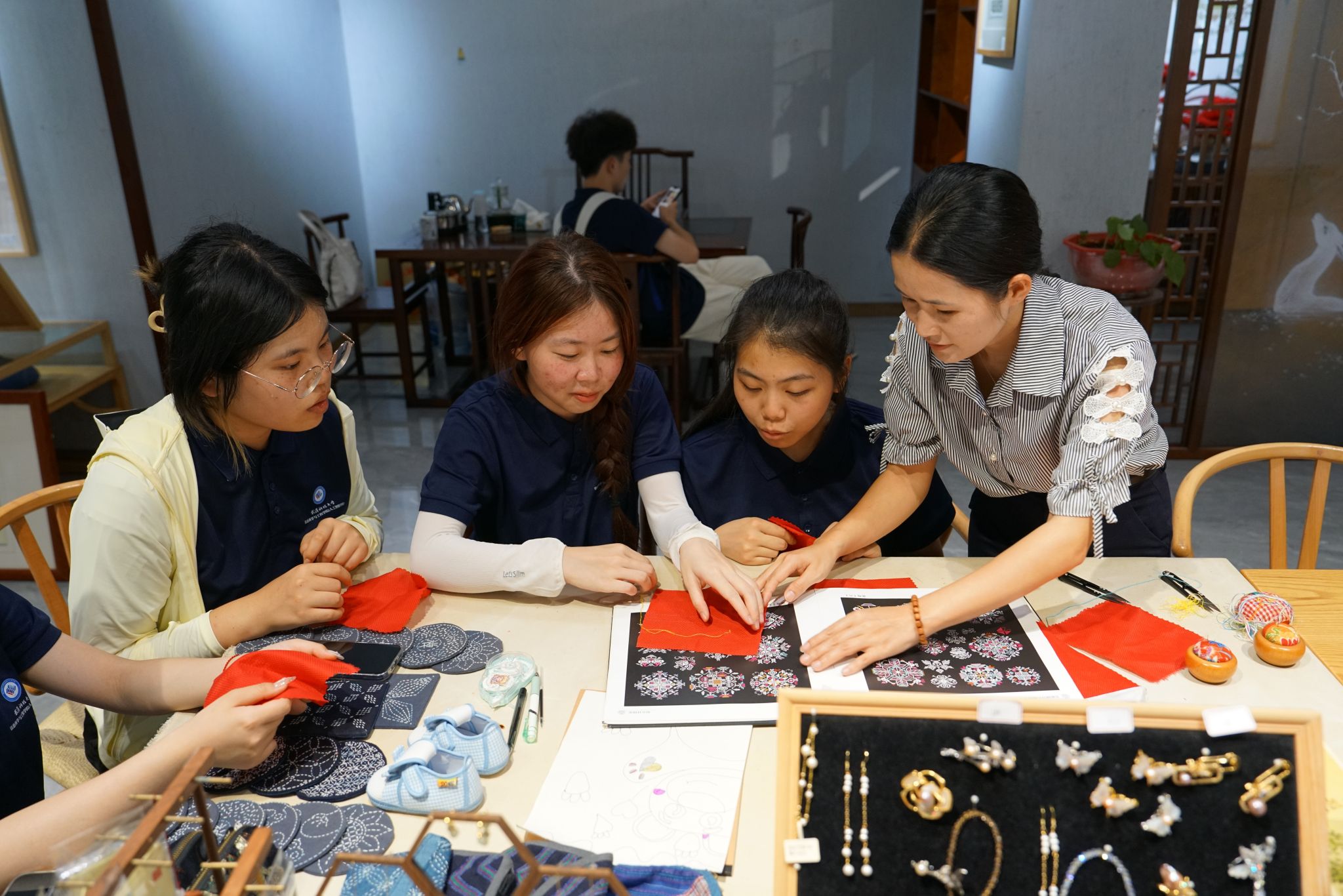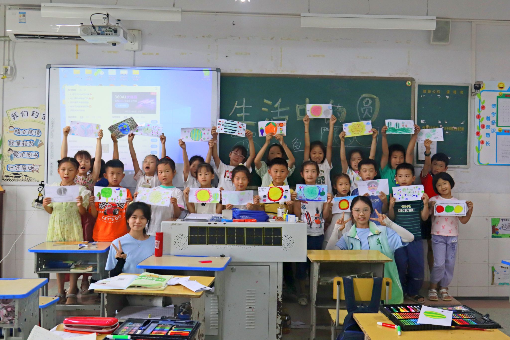老师帮助学生绘画清廉扇 欧阳一茗摄