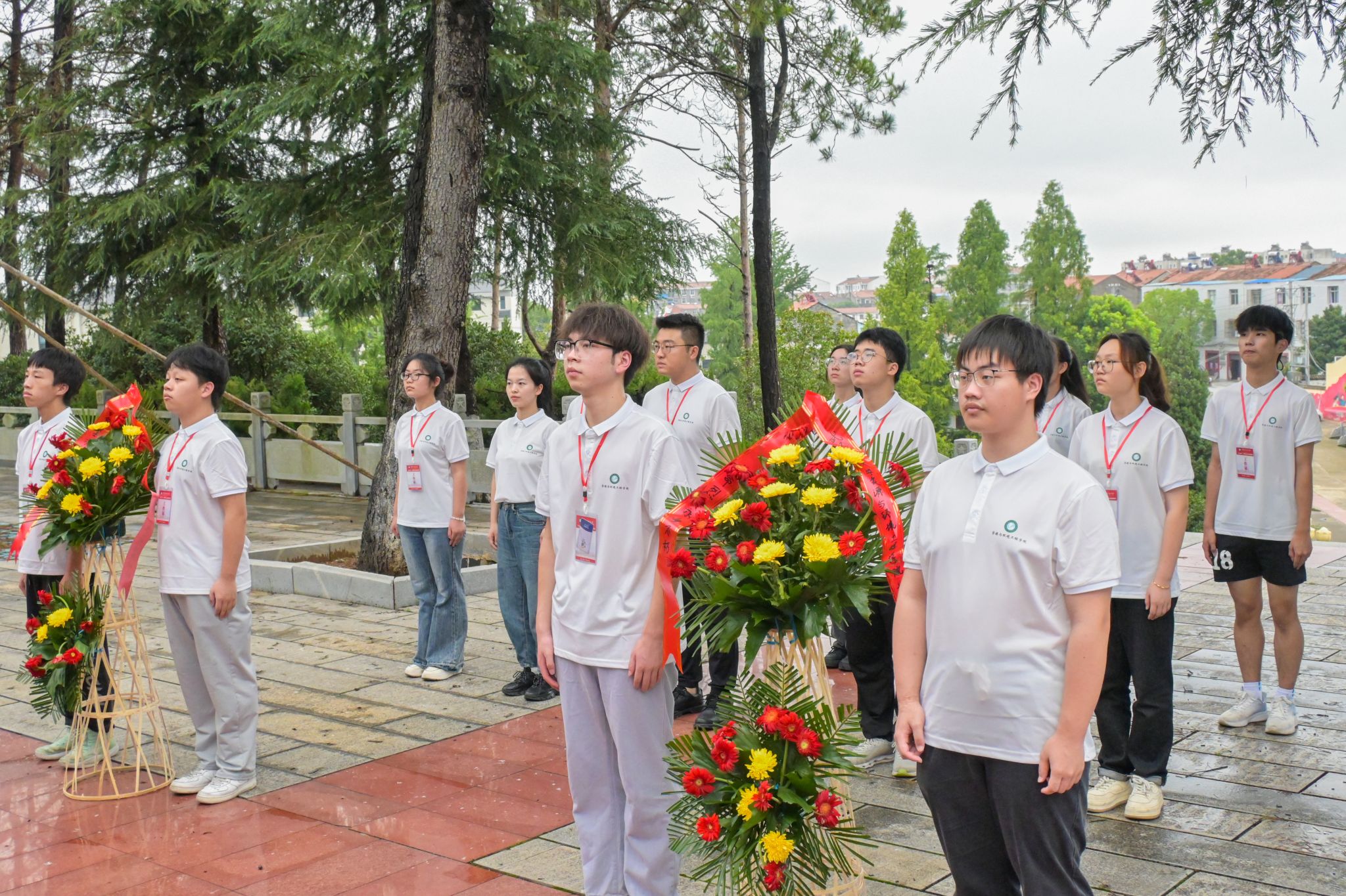 带队教师带领实践队成员们在烈士陵园前宣重温入团誓词 湛演摄