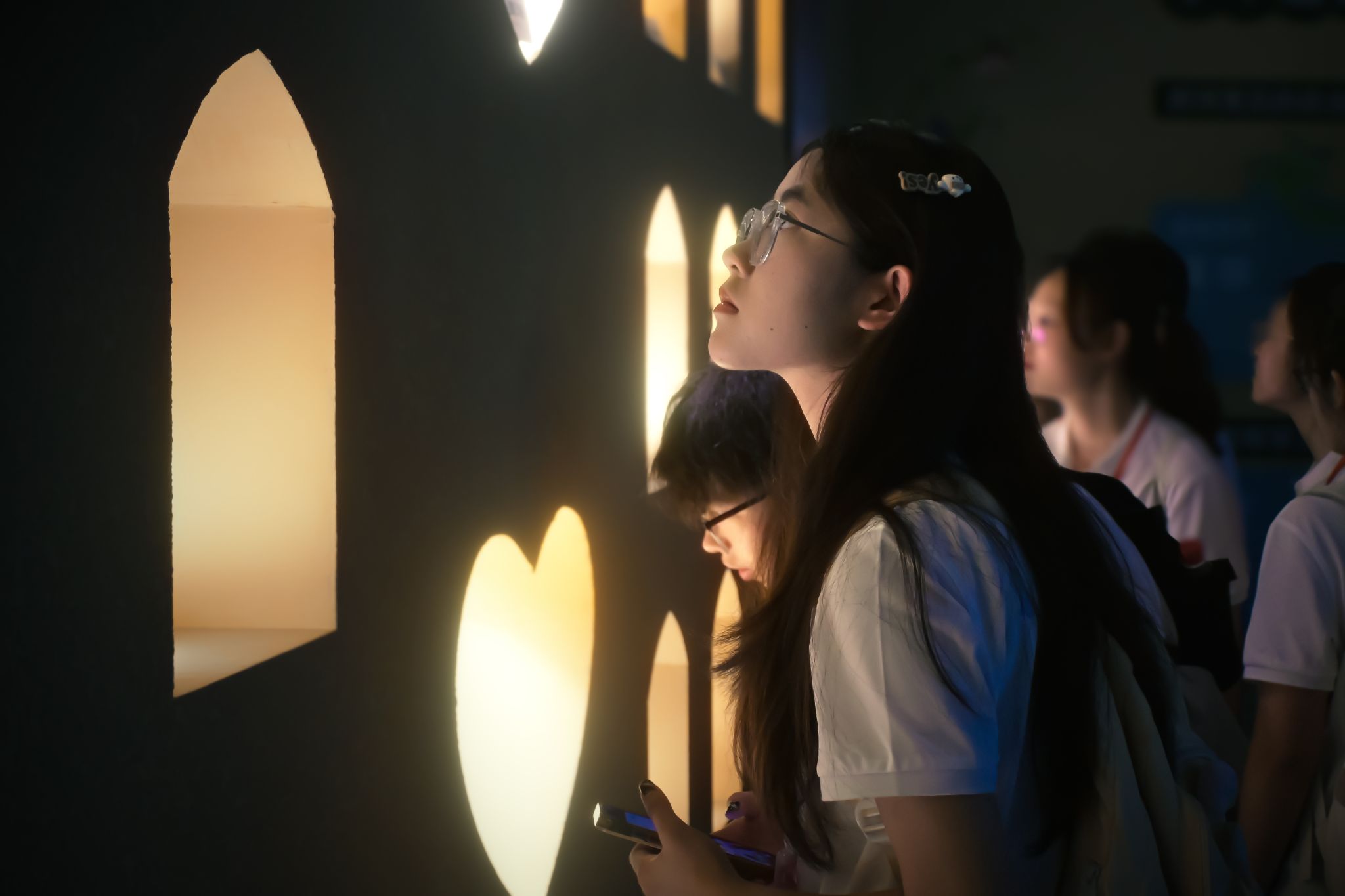 实践队员观看郧西红色纪录片 欧阳一茗摄