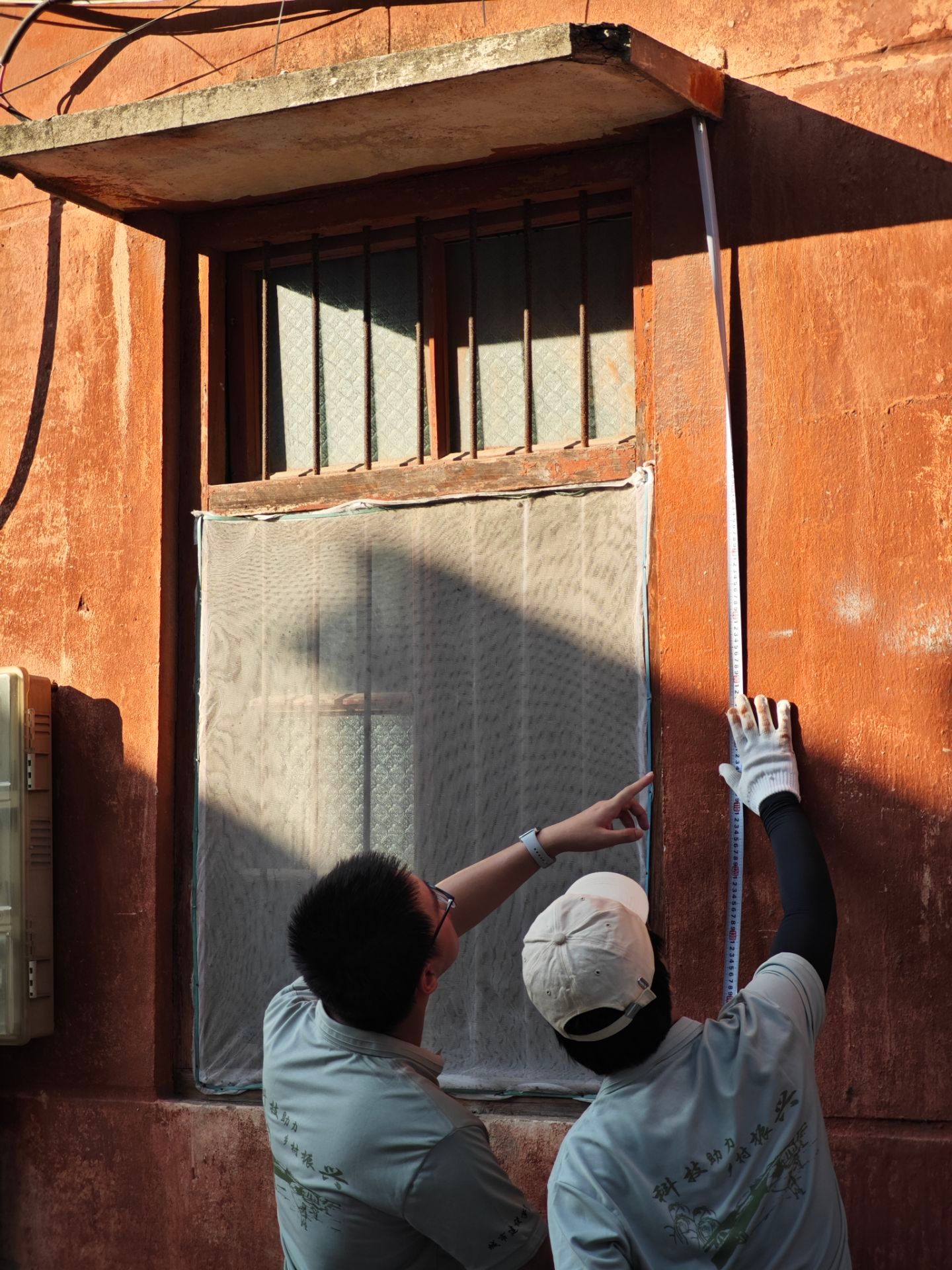 队员叶科正在对山墙进行测绘 刘力豪摄