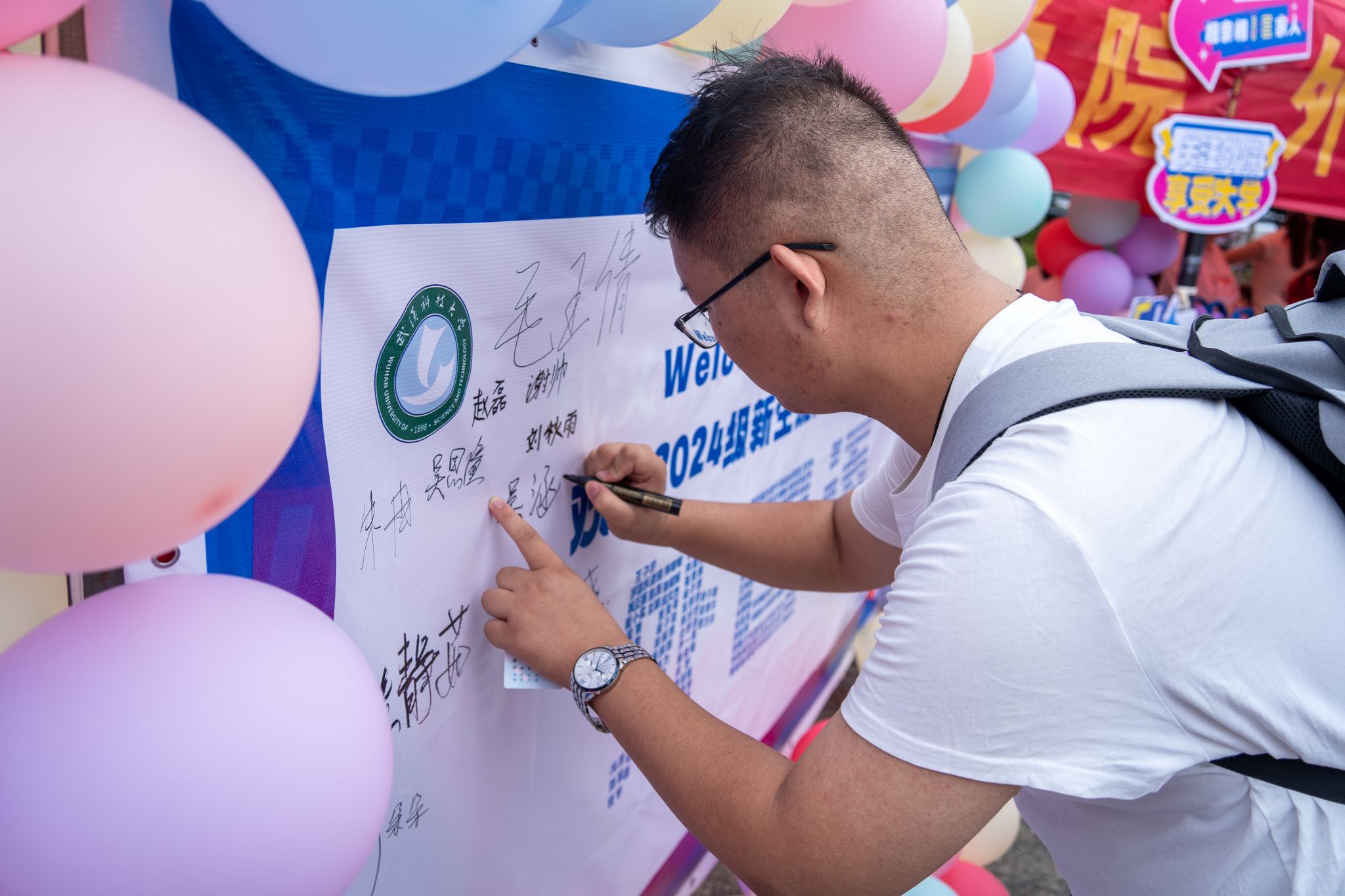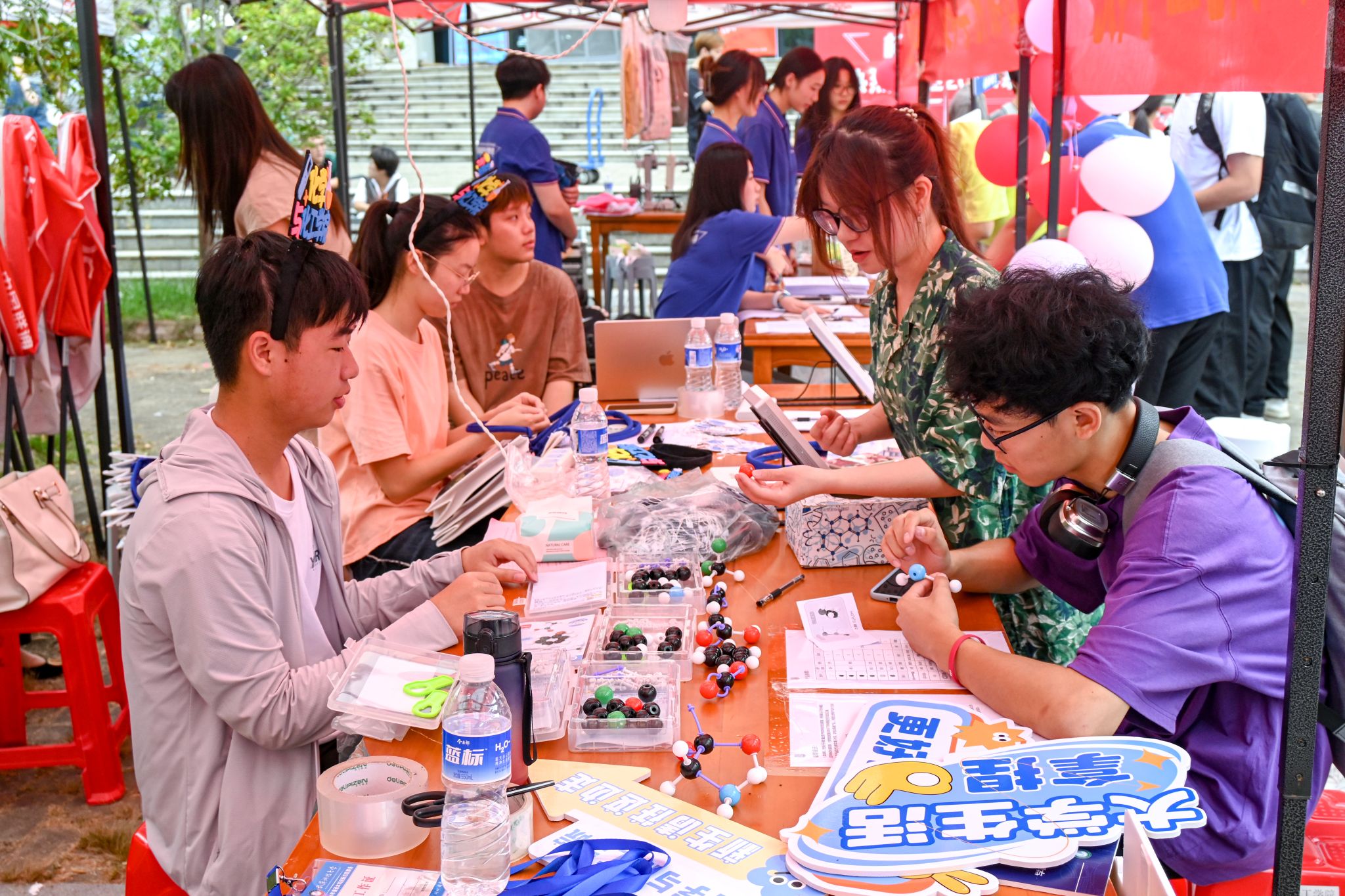 9月12日至13日,鸭脖分别于南园、北园食堂前广场上开展迎新活动,各学院在广场上支起摊位与帐篷迎接2024级新生的到来,新生在各自学院的小摊上欣赏学院特色、签到并领取学院准备的开学小礼物。迎新现场十分和谐,此次活动为新生展示了各自学院的独特魅力,以及鸭脖对新生生活、学习等各层面的关怀。