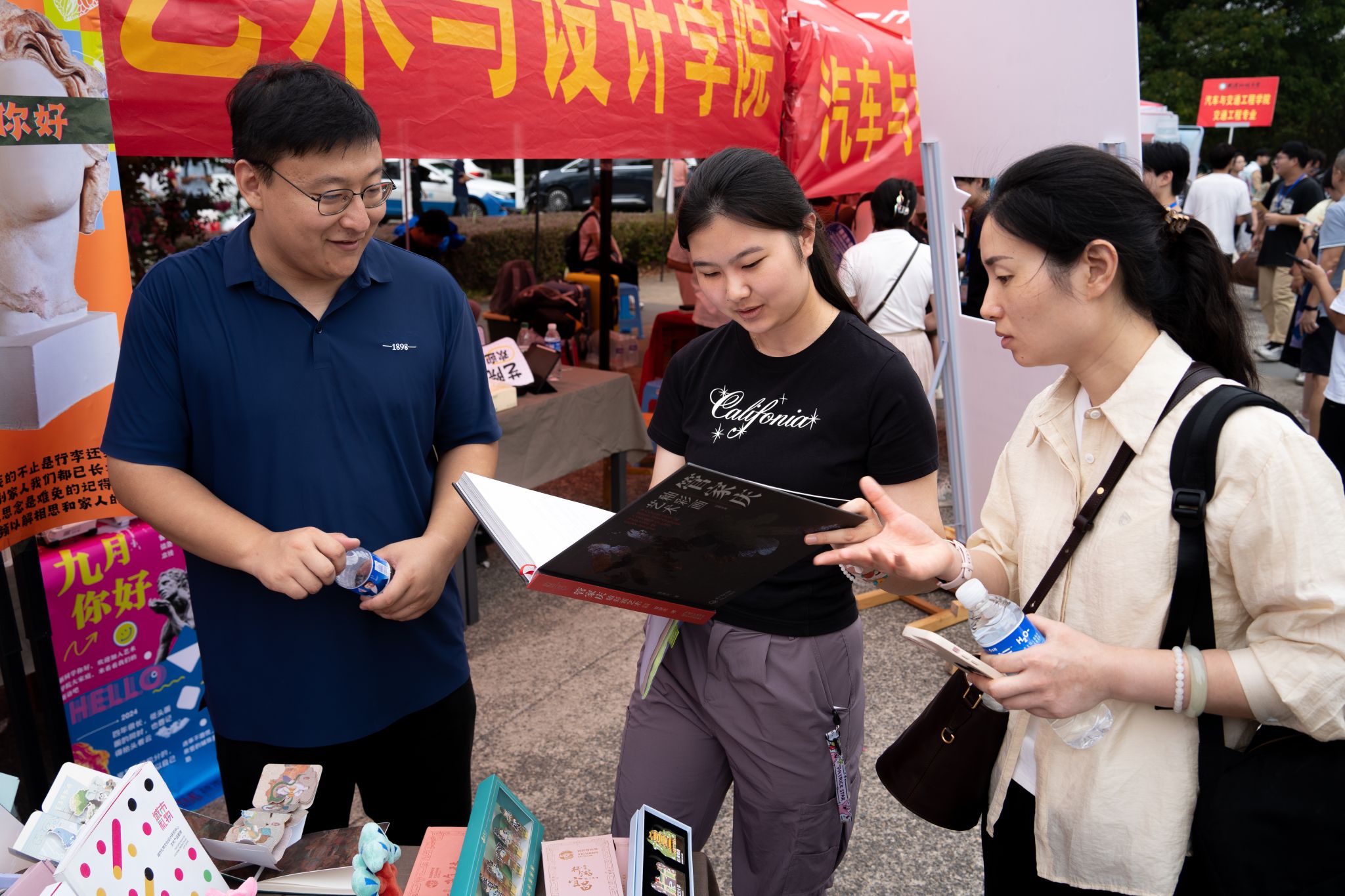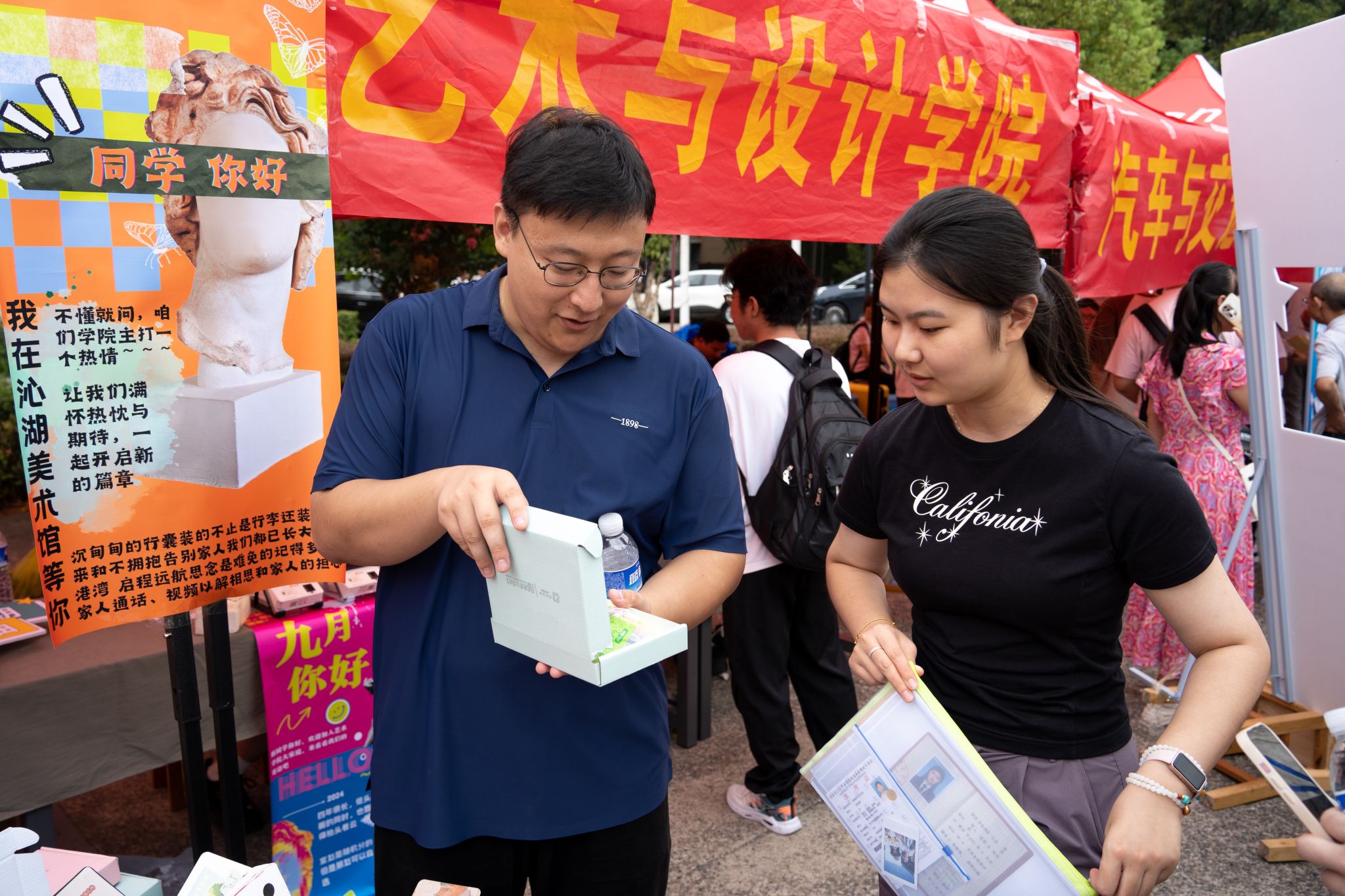 艺术学院辅导员为新生及家长介绍展示品 孙奕哲摄