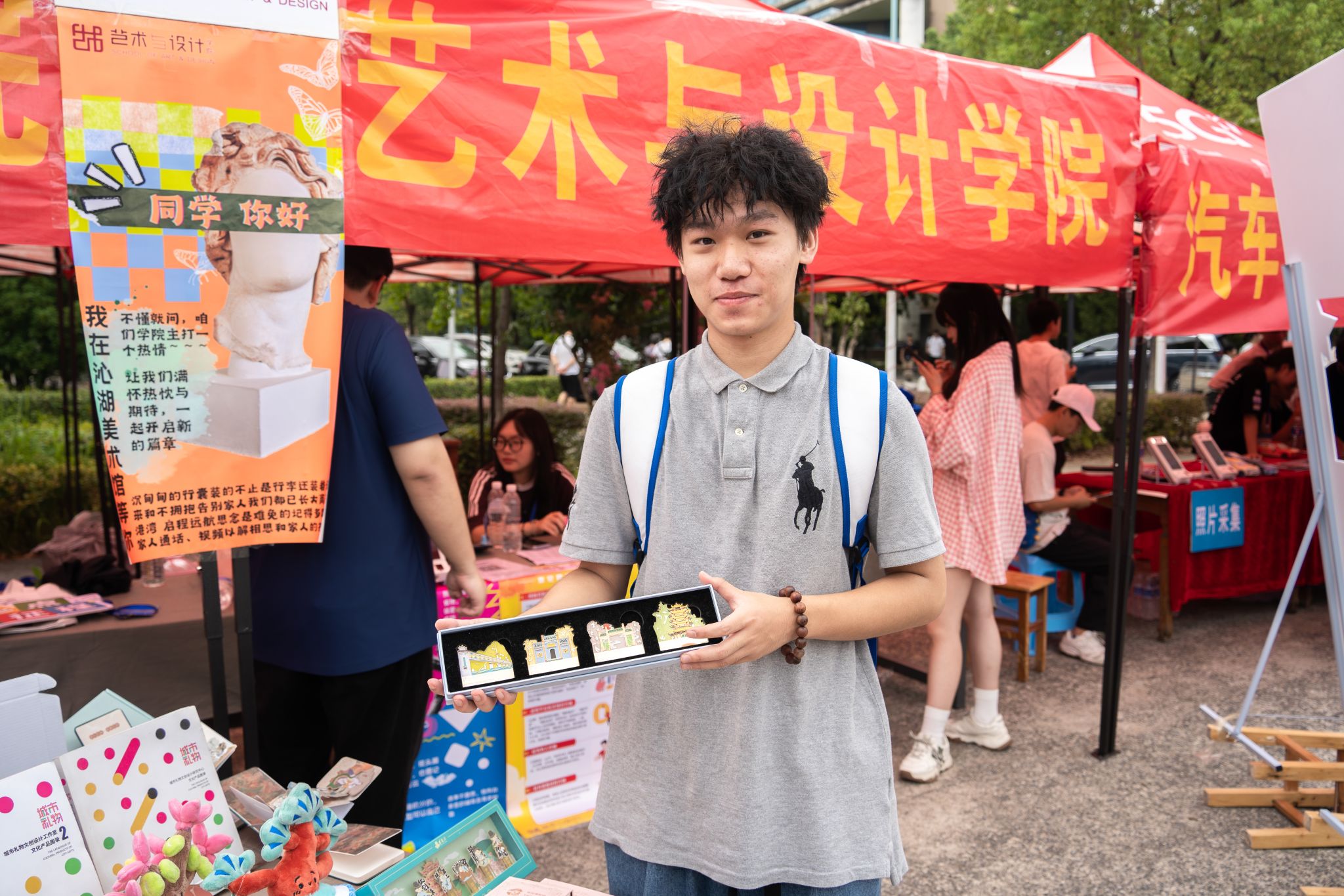 艺术学院辅导员为新生介绍展示品 孙奕哲摄