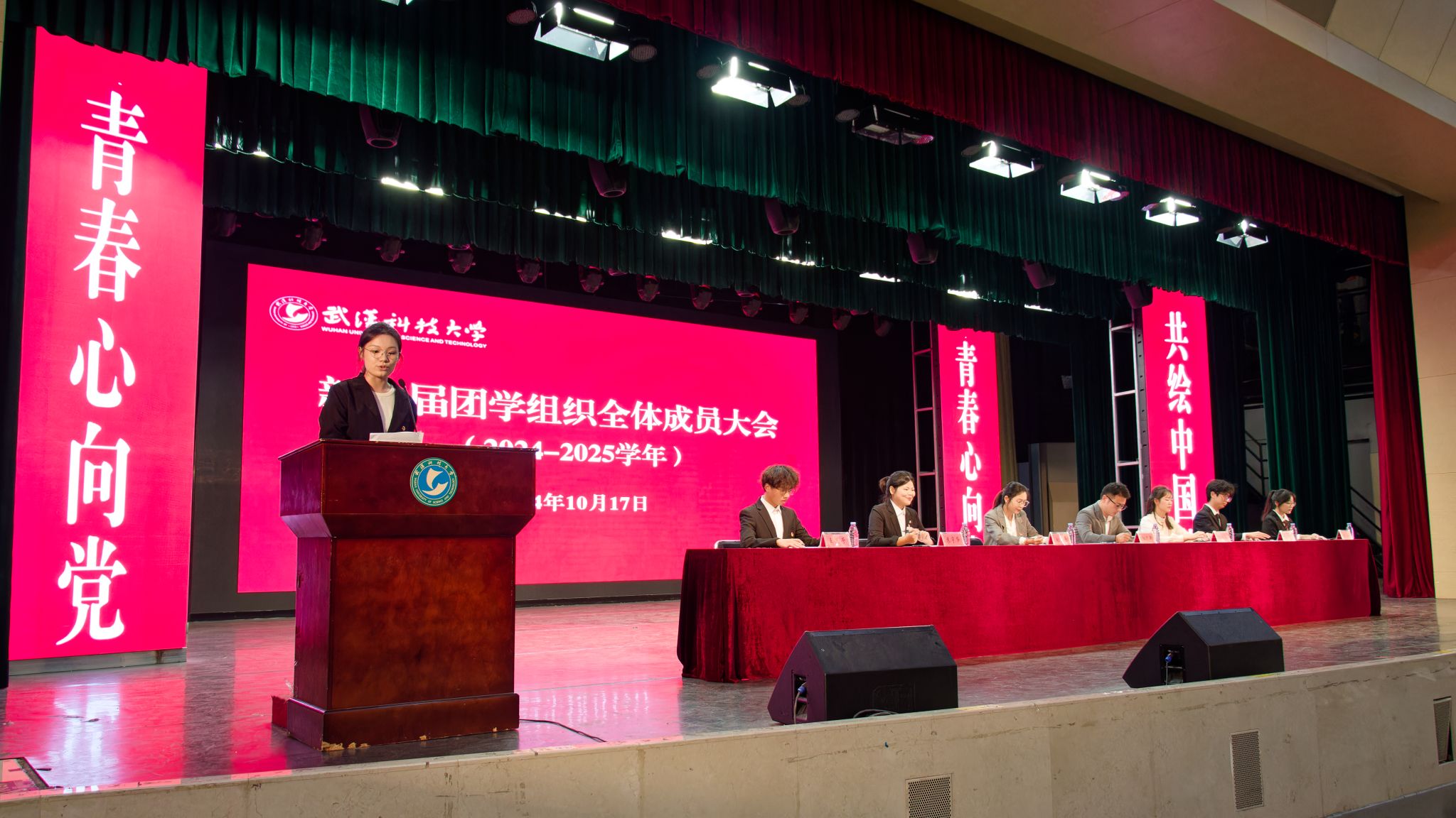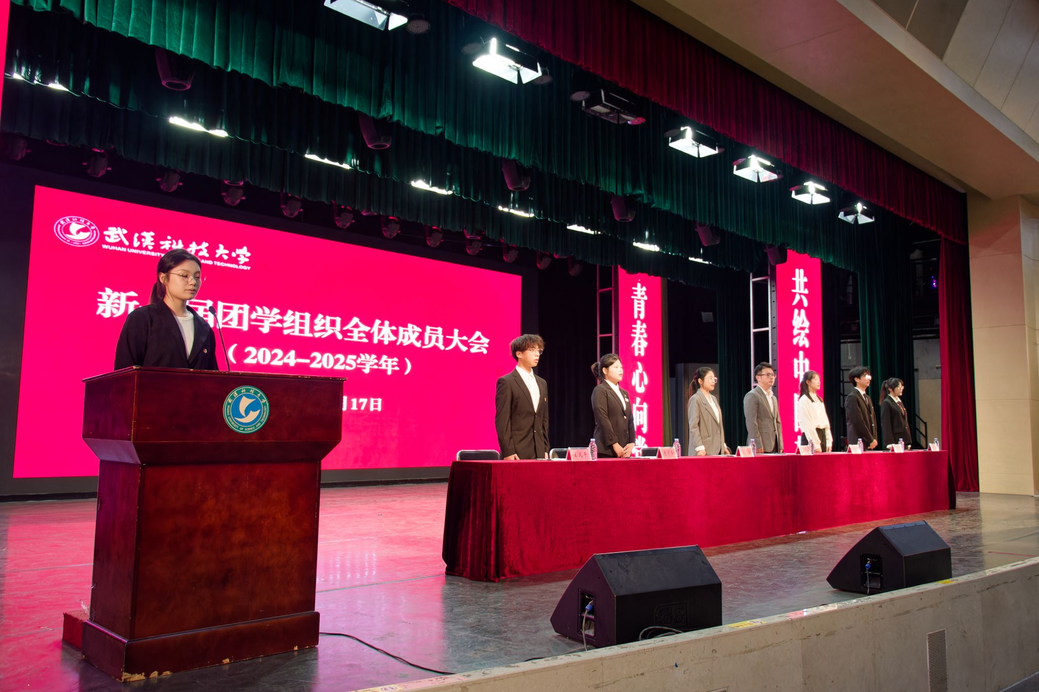 10月17日中午,鸭脖于沁湖礼堂举行新一届团学组织全体成员大会。校团委副书记向方新、团委副书记(学生)刘丹、团委组织部部长李庆昉、团委文化活动部部长陈娴敏,校学生会、社团管理部等学生组织全体成员。会议流程包含奏唱国歌、团委副书记刘丹介绍团学组织招新情况等八项,最后成员合影留念。(吴颖 胡晨阳)