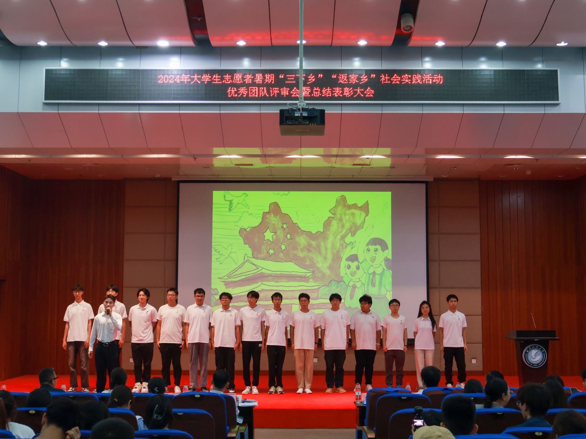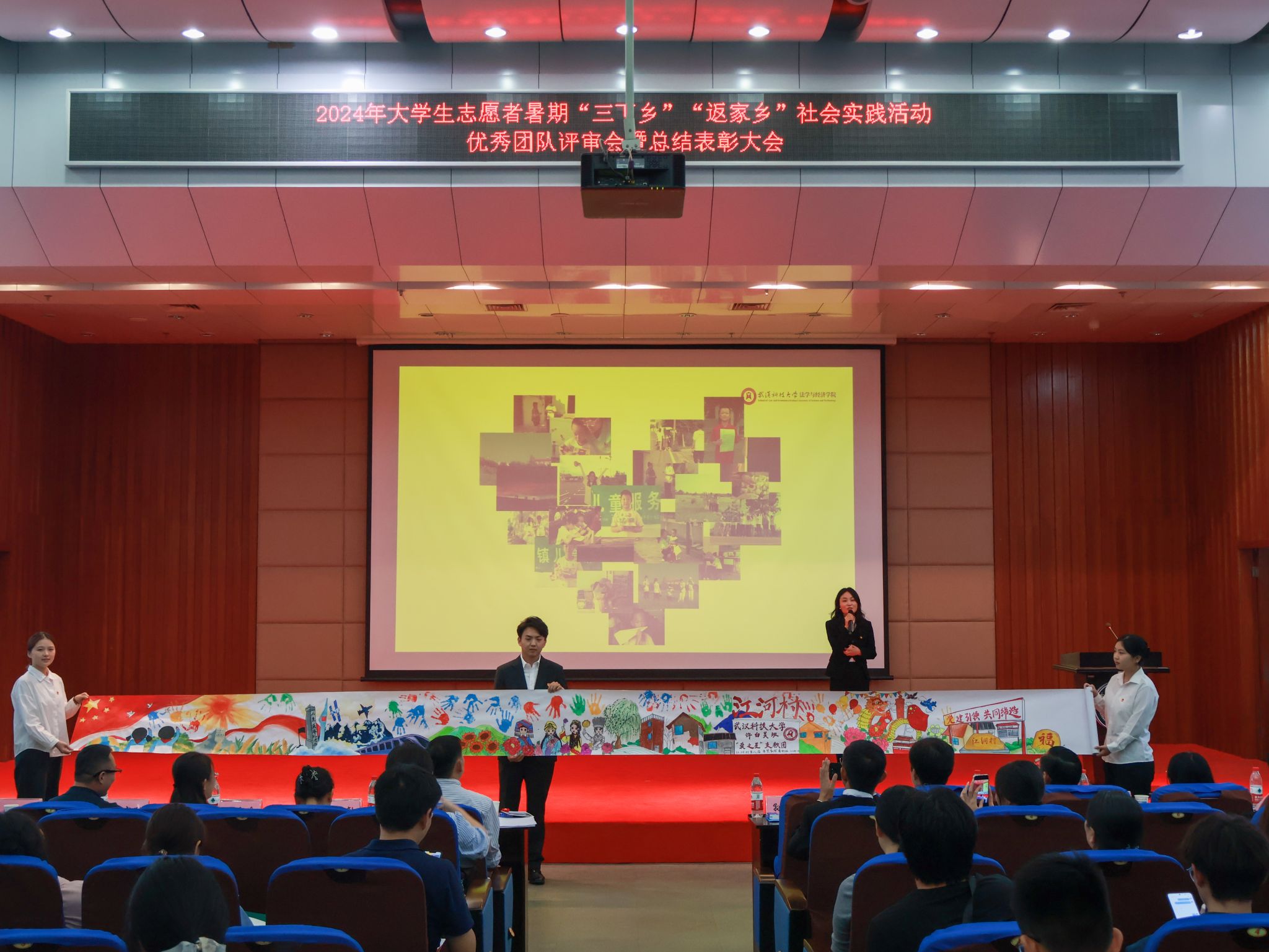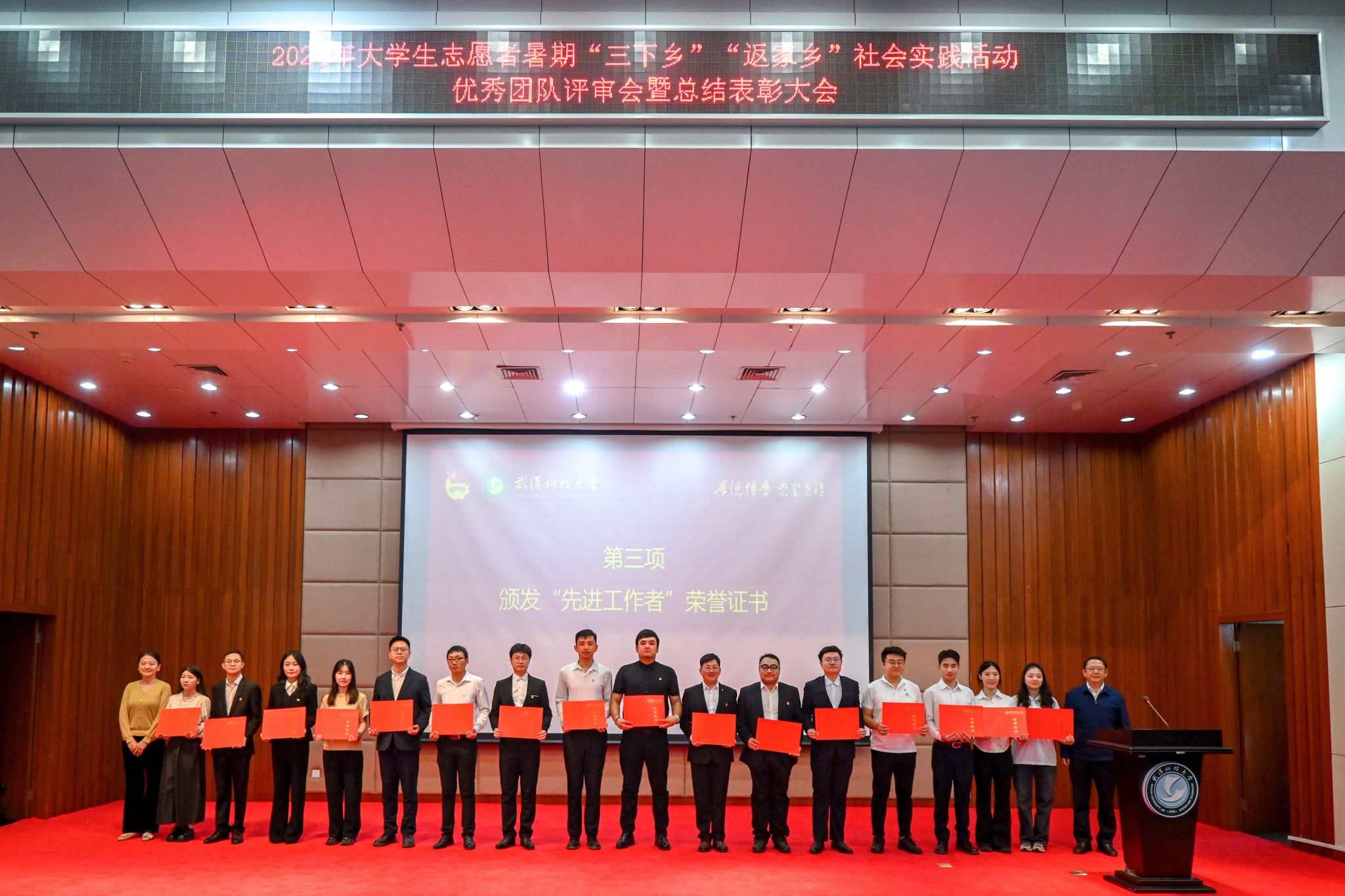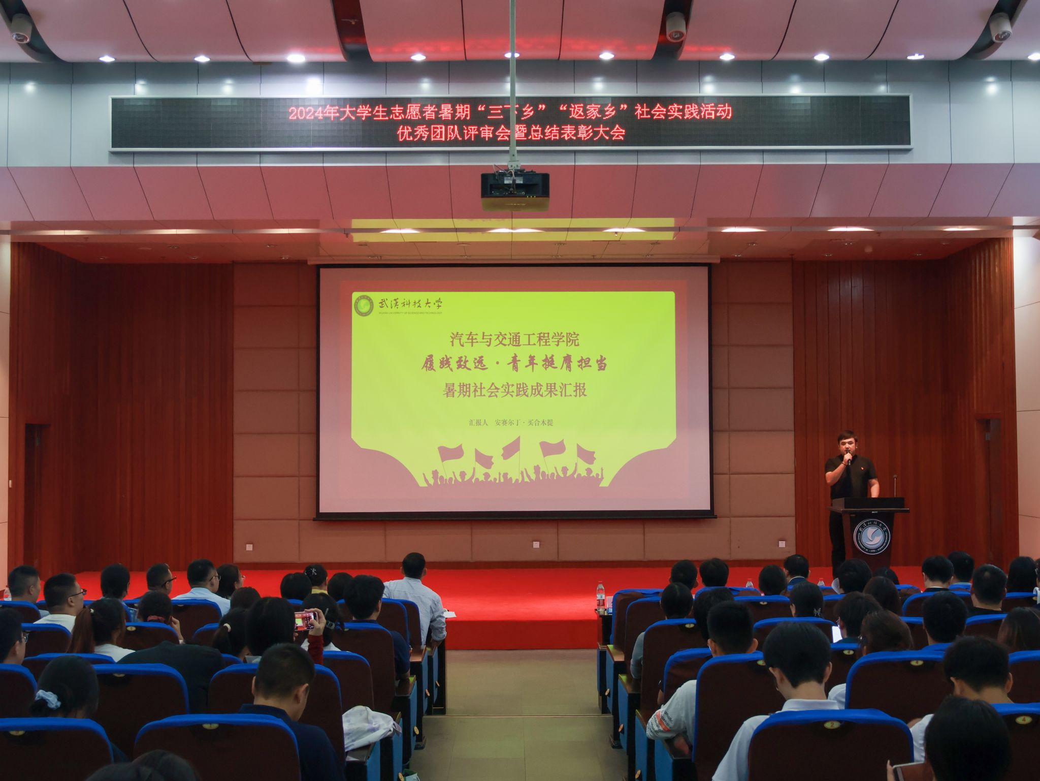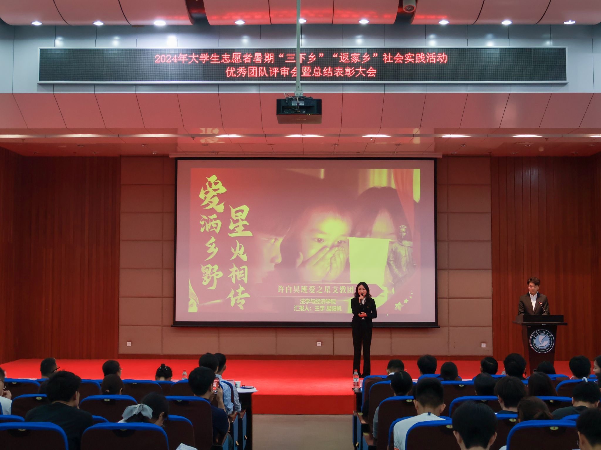 10月17日,鸭脖2024年大学生志愿者暑期“三下乡”“返家乡”社会实践活动优秀团队总结表彰大会在崇实会堂举行。校党委副书记孙国胜讲话,来自校“青马工程”、各学院的18支优秀团队上台答辩,从调研经历、项目内容、社会效应及活动意义等方面展示实践团队的风采现场。现场颁发优秀论文、先进个人、先进工作者、优秀团队、优秀组织单位荣誉证书,材料学部“钢魂铸梦”实践团队学生代表付熙哲作为团队代表发言。