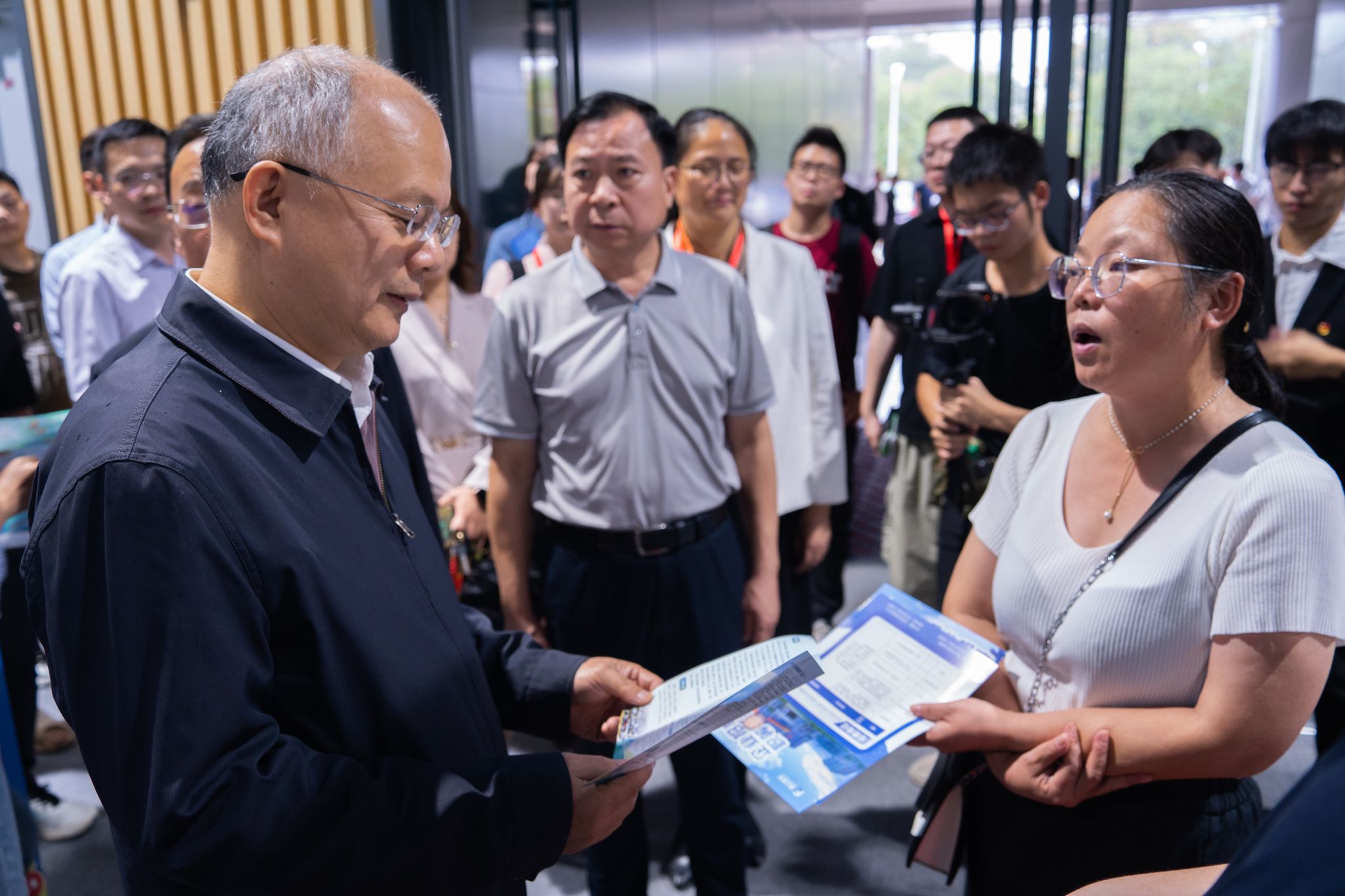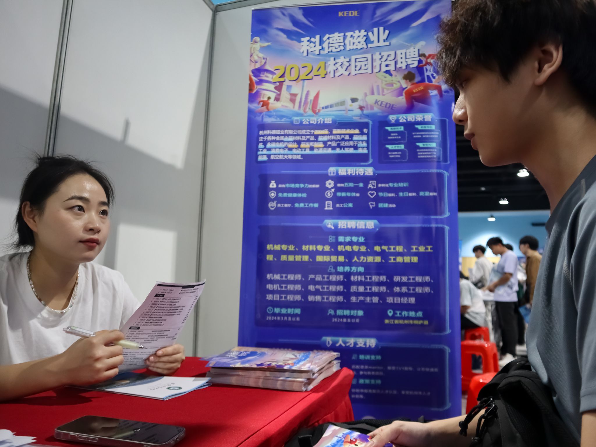 科德磁铁业负责人与求职者沟通 周凡摄