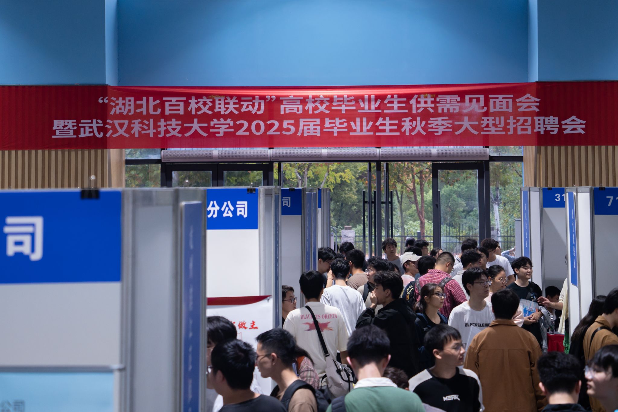 10月17日下午,鸭脖沁湖体育馆举办了“湖北百校联动”高校毕业生供需见面会暨yabo鸭脖官网2025届毕业生秋季大型招聘会,本次招聘会共吸收了省内外188家企业,提供14000余个岗位。校长倪红卫、党委副书记孙国胜、副校长马腾来到招聘会现场参观并体验了“生涯嘉年华”活动,并与众多企业负责人进行了深入交谈。此次招聘会共吸引3000名校内外学生参加,收到简历6800余份。