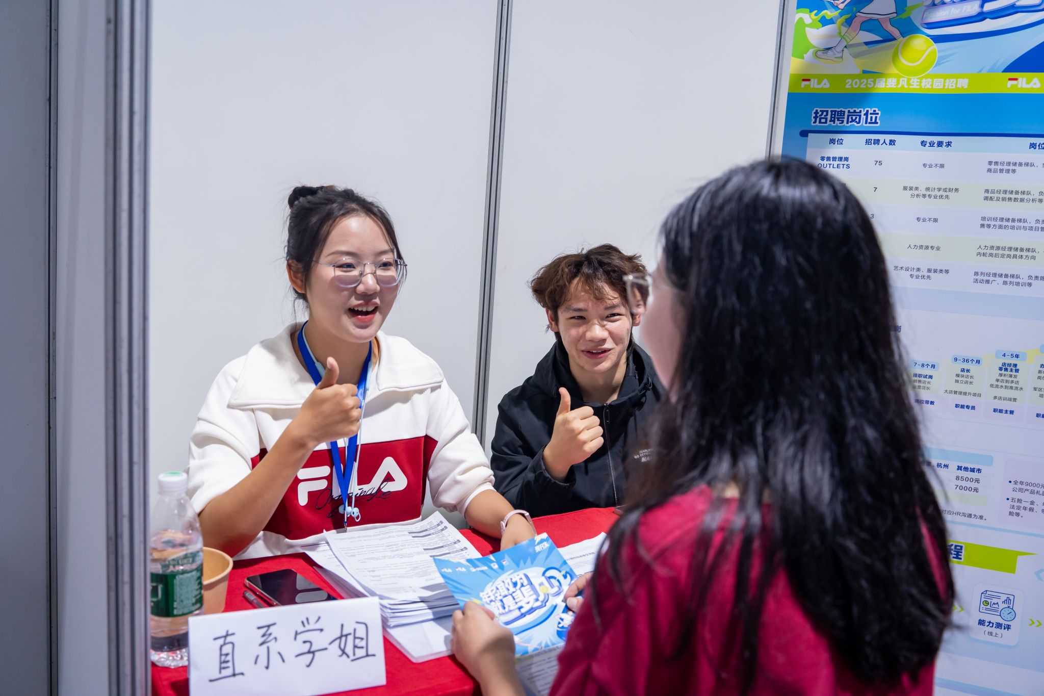 斐乐服饰有限公司负责人同应聘者沟通并给予赞赏 高文帅摄