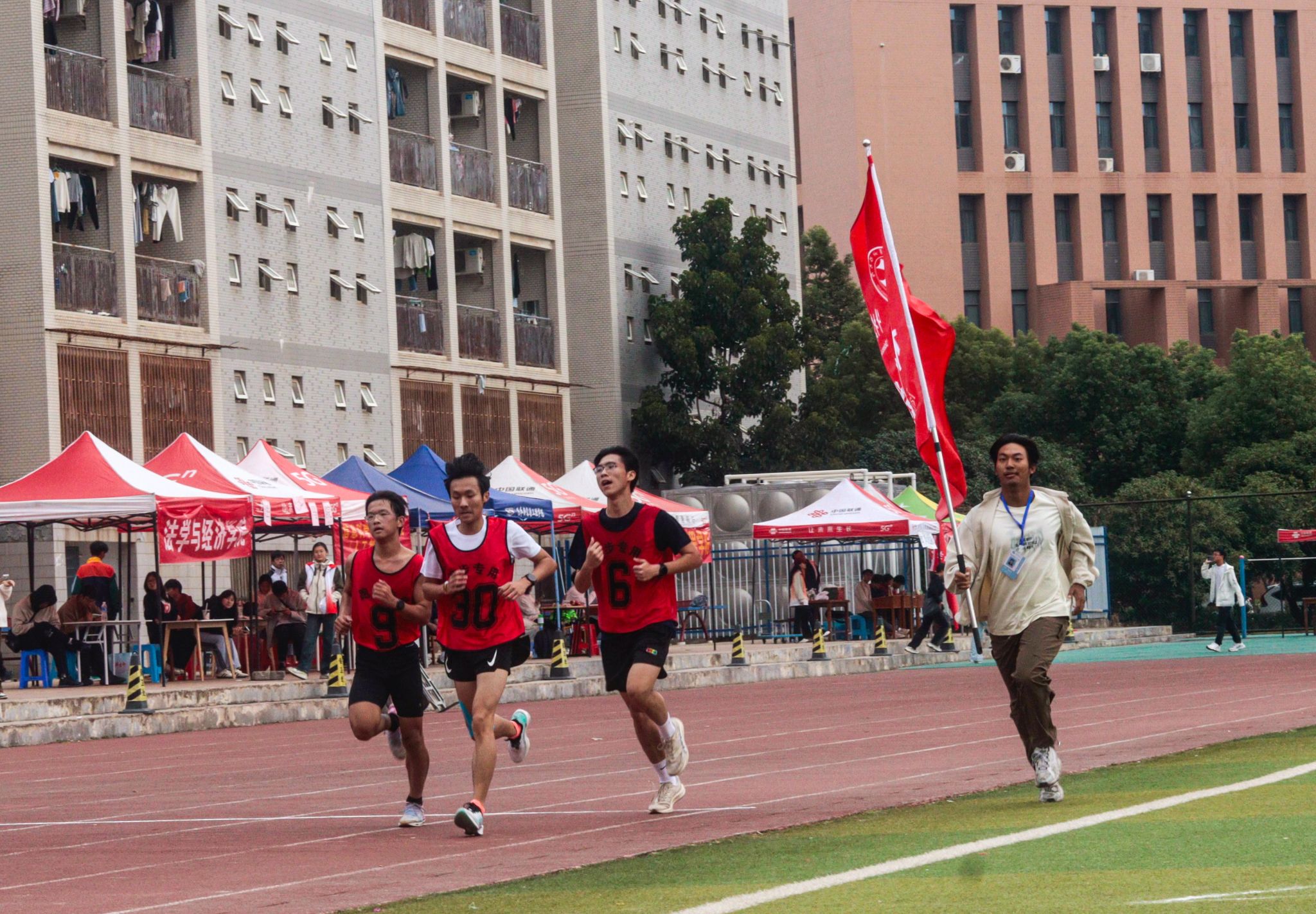 10月24日至26日,鸭脖于南苑运动场举行第六十二届运动会,现场进行了各项田径比赛和集体趣味项目,赛场上运动员们奋勇拼搏,志愿者们也及时为参赛选手们提供各项所需的服务。赛场上加油声及呐喊声连绵不断,展现出了良好的竞技氛围与体育精神。(孙奕哲)