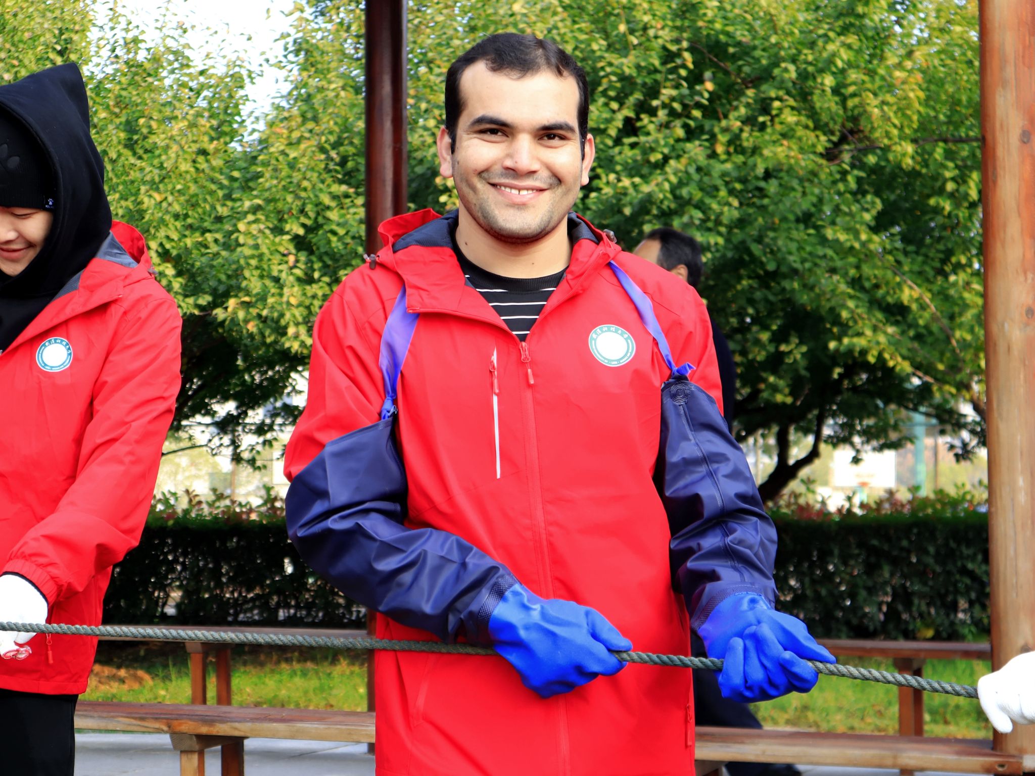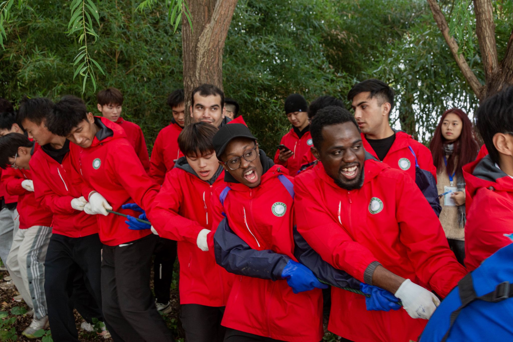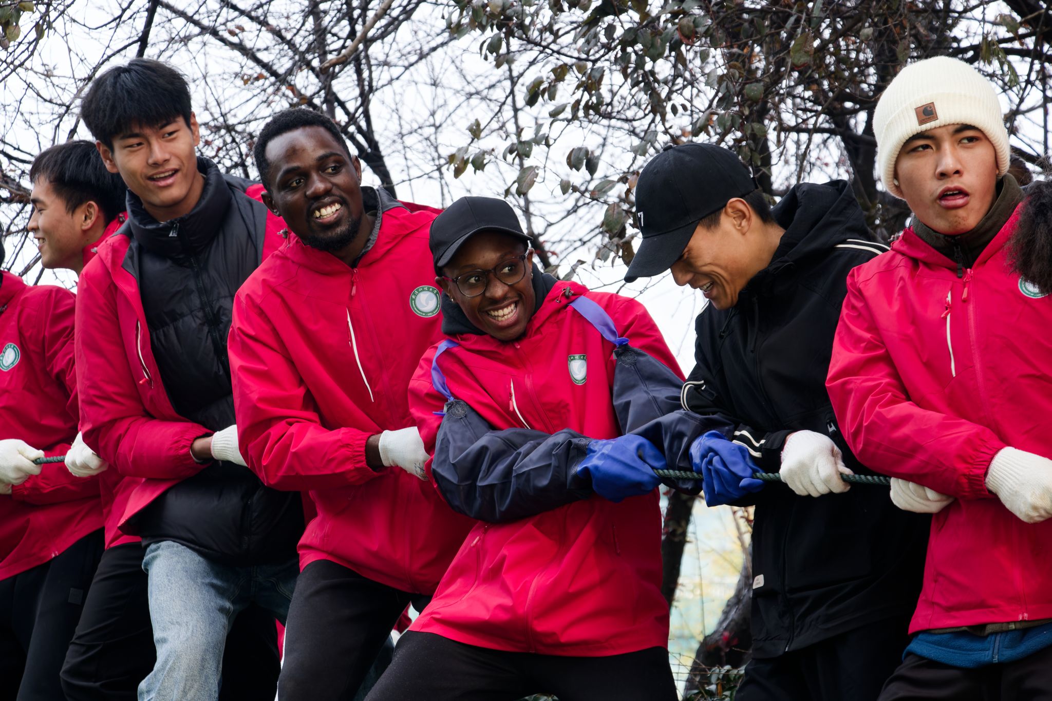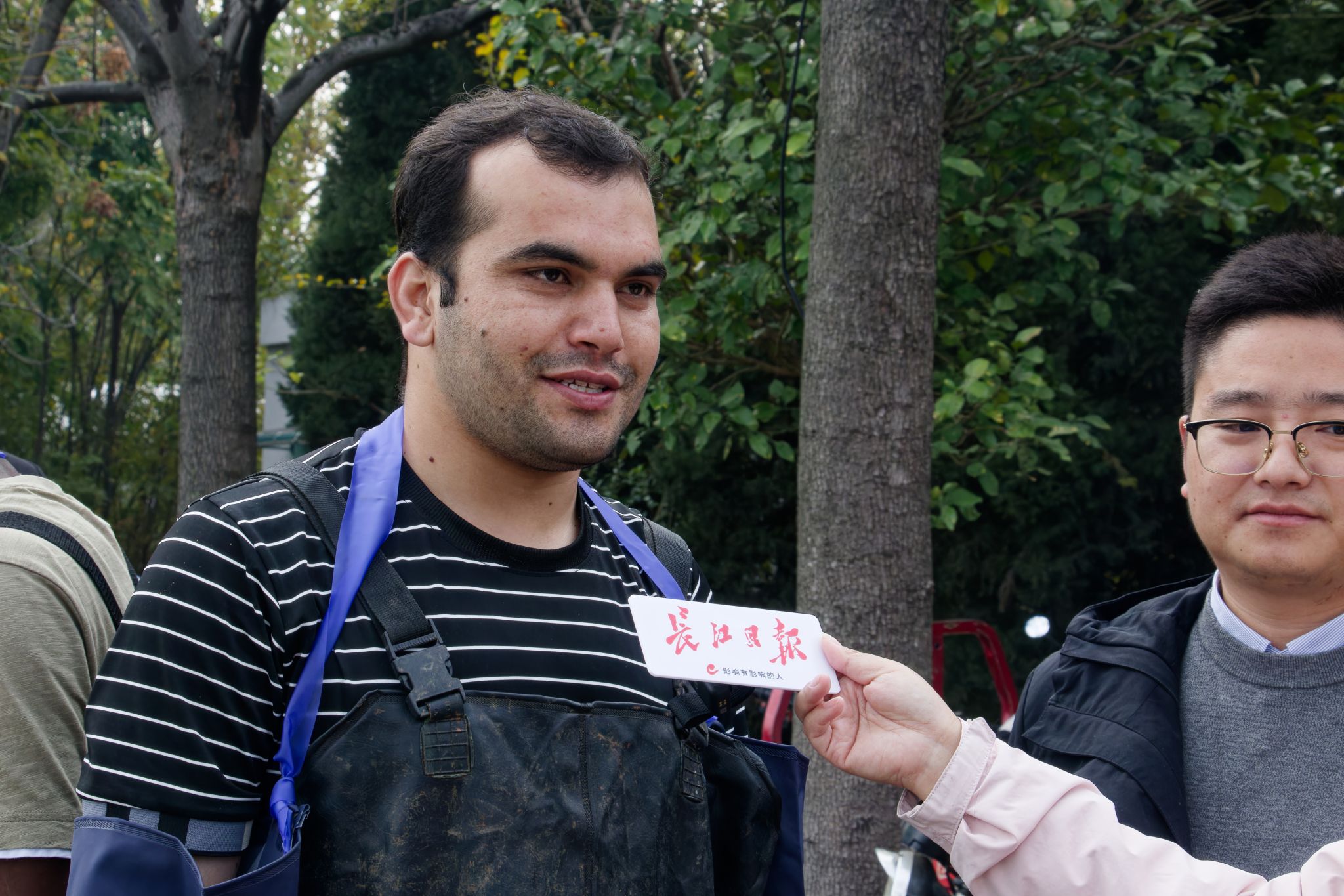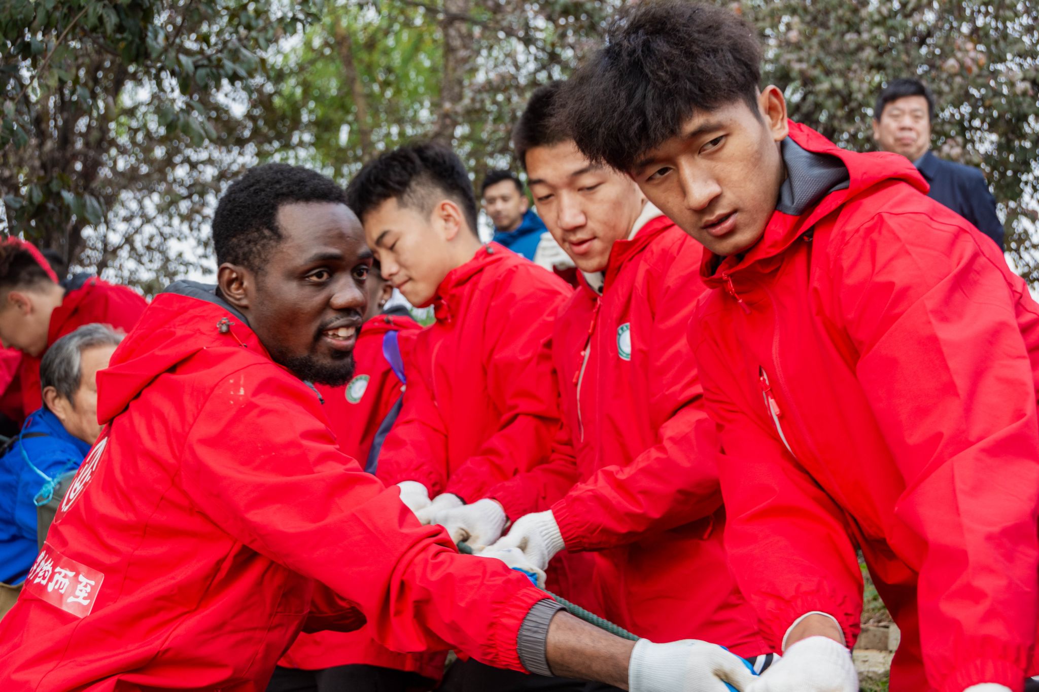 留学生拉网特写 王铭浩摄