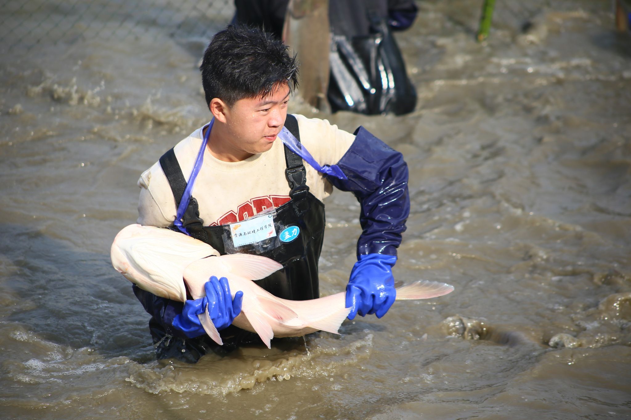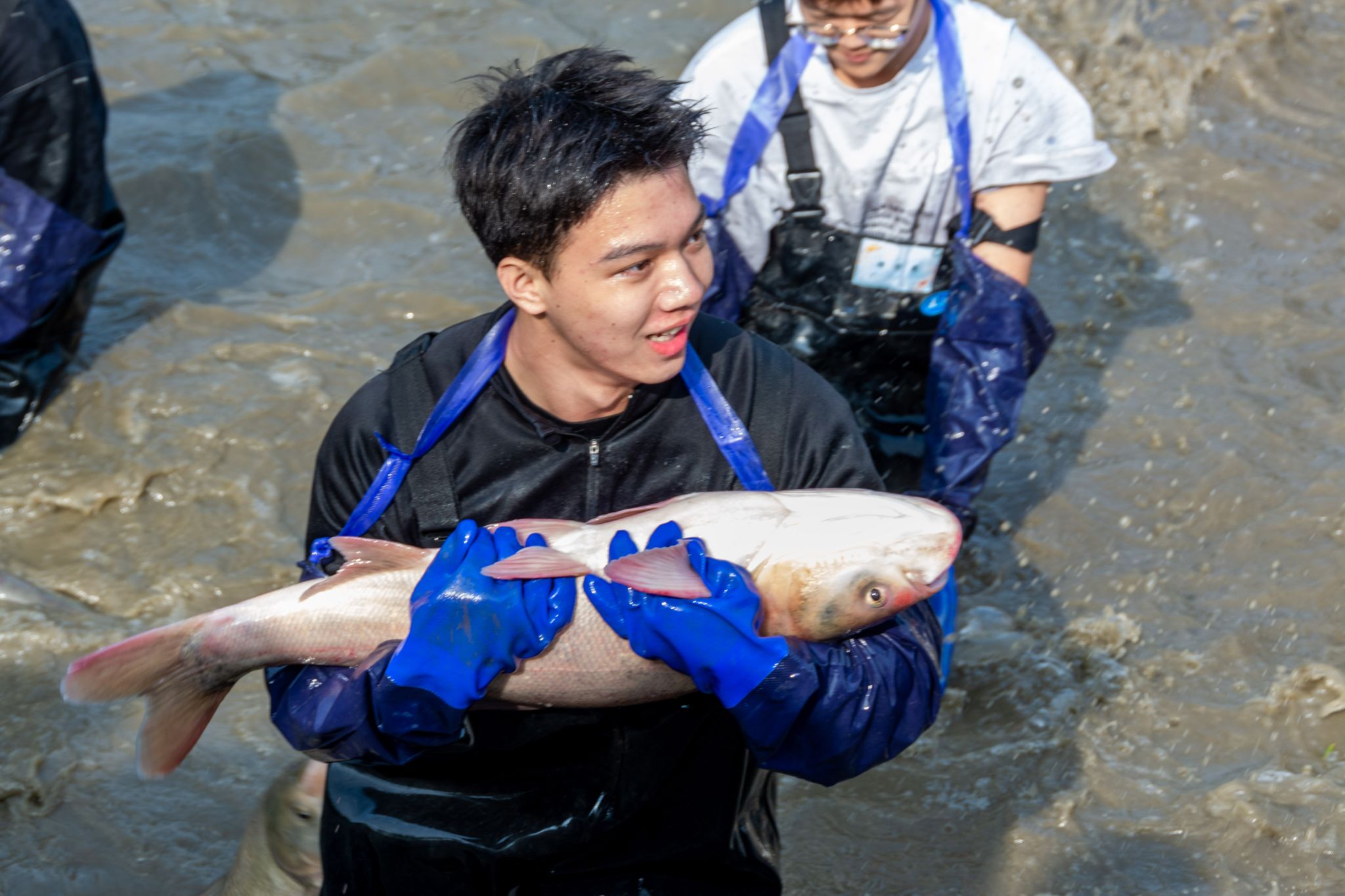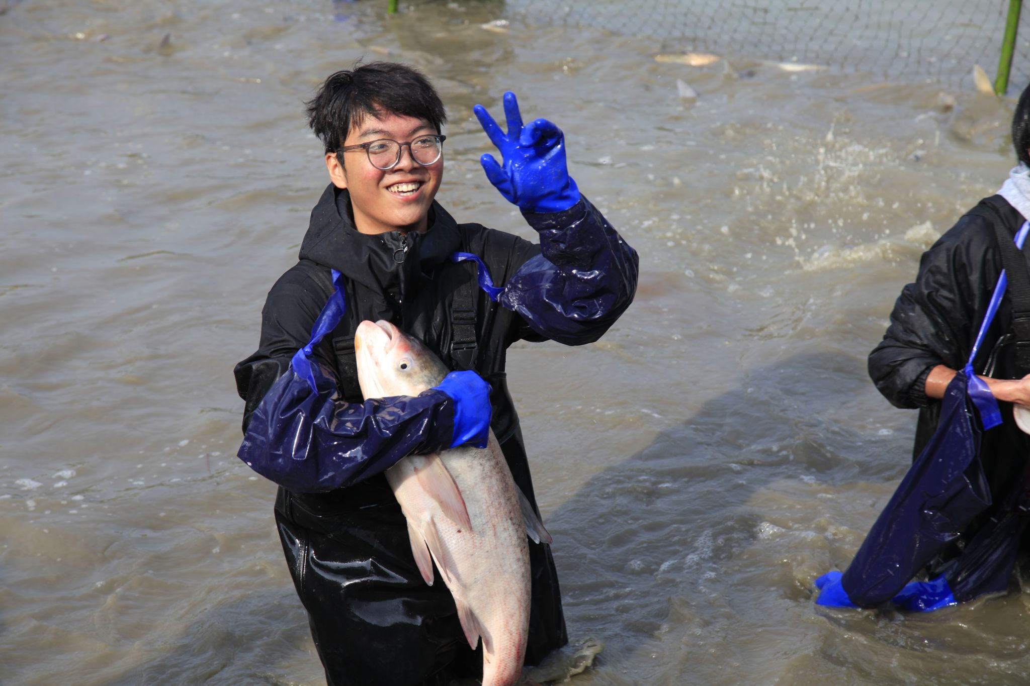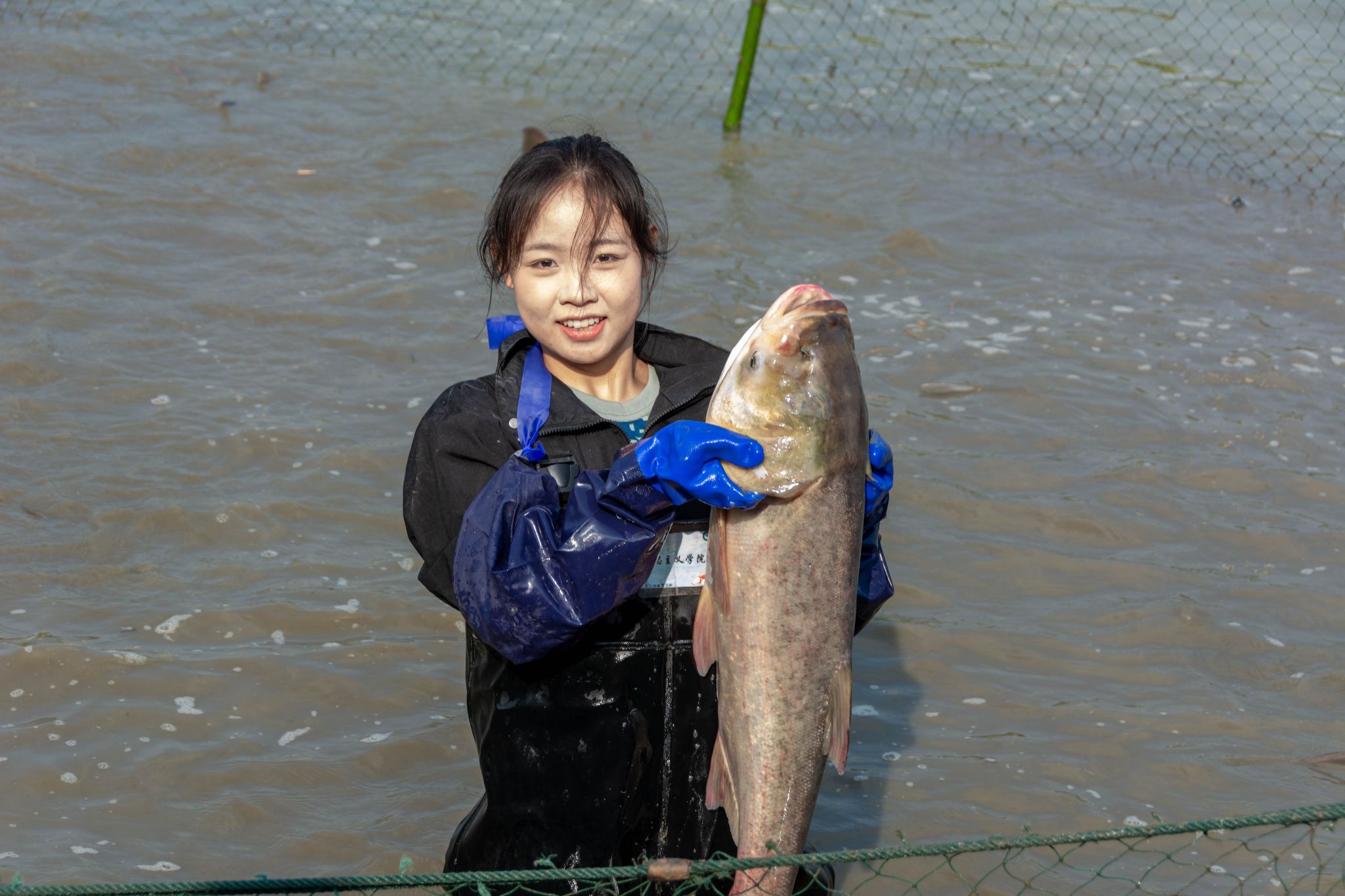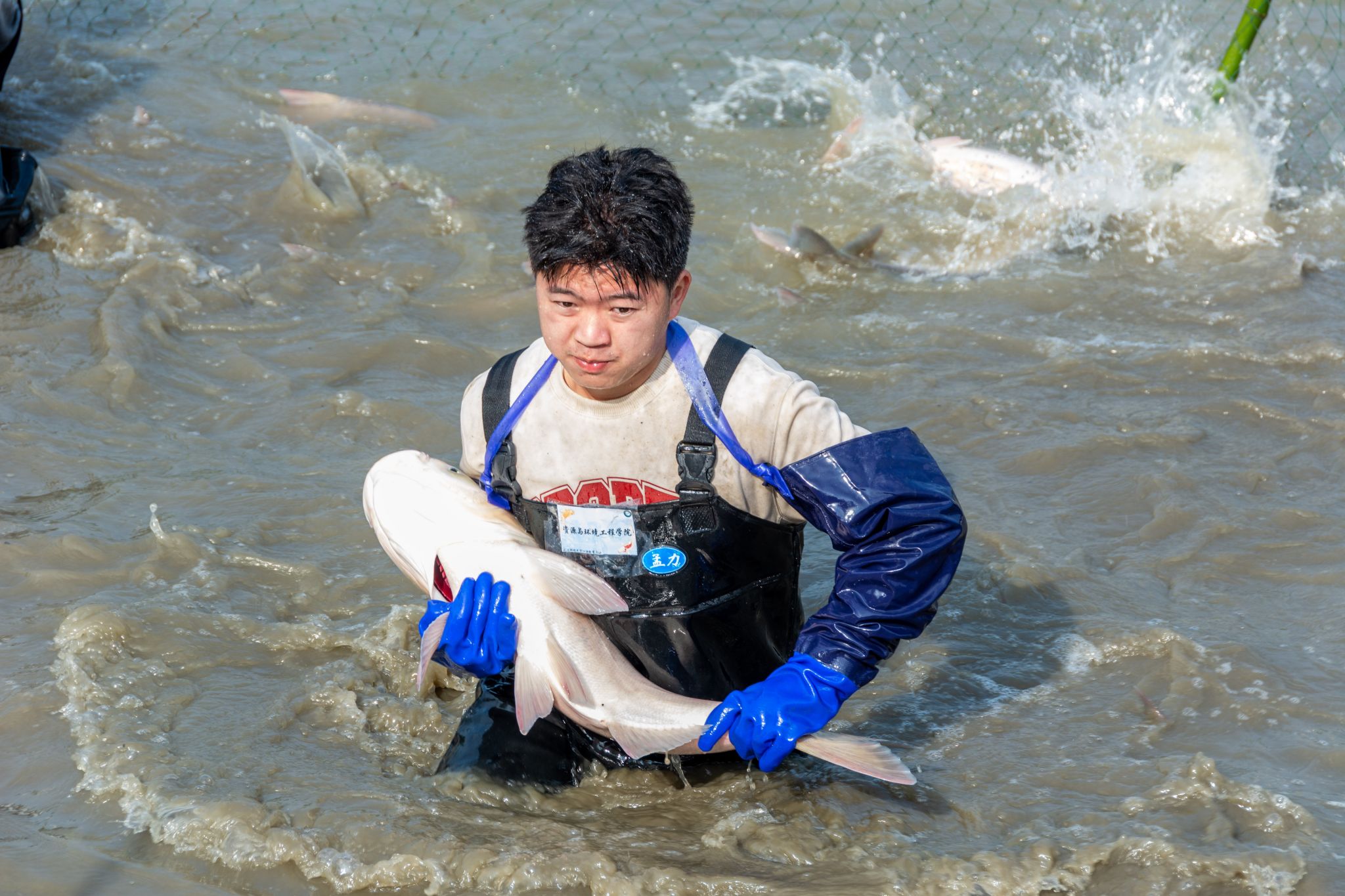 生科院两手抓鱼特写 陈楷林摄