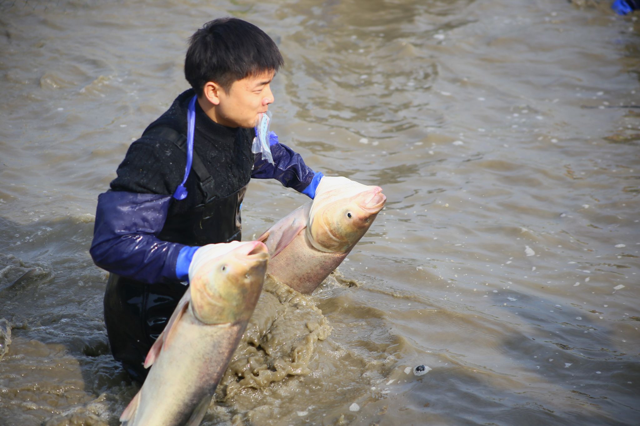 鱼多难握 特写 王翔宇摄