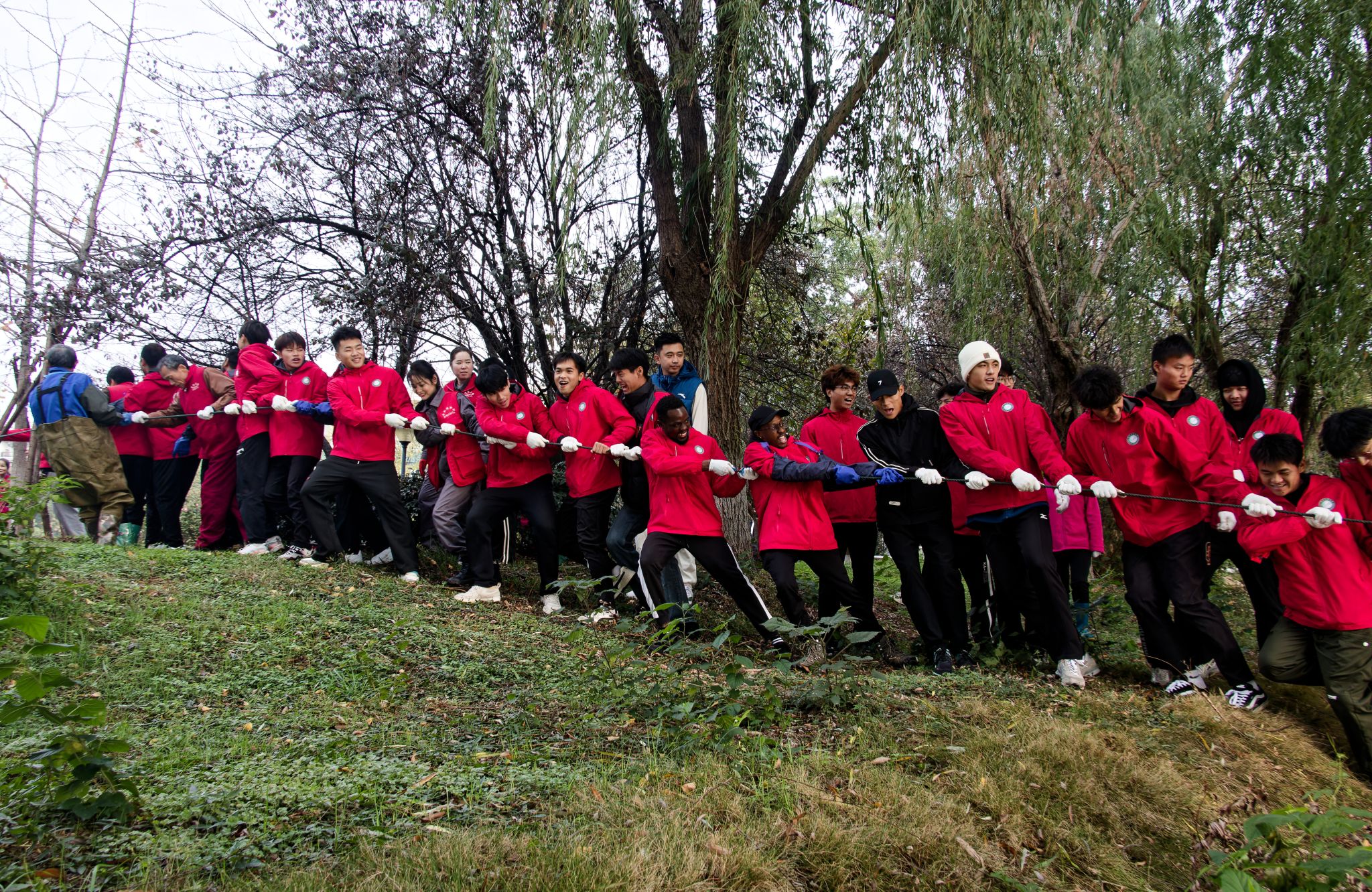 同学们喊号子拉鱼 吴毅萌摄