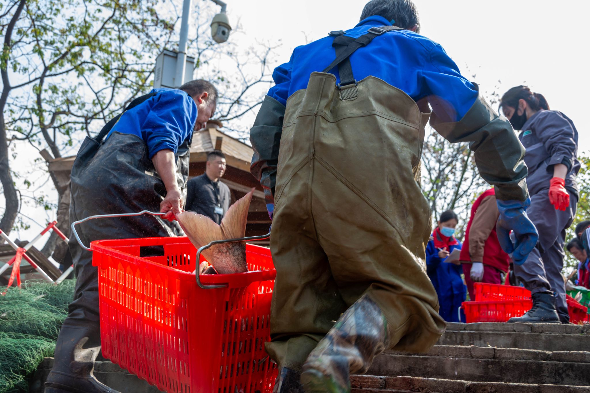 后勤部抬鱼上车 吴磊摄 (2)