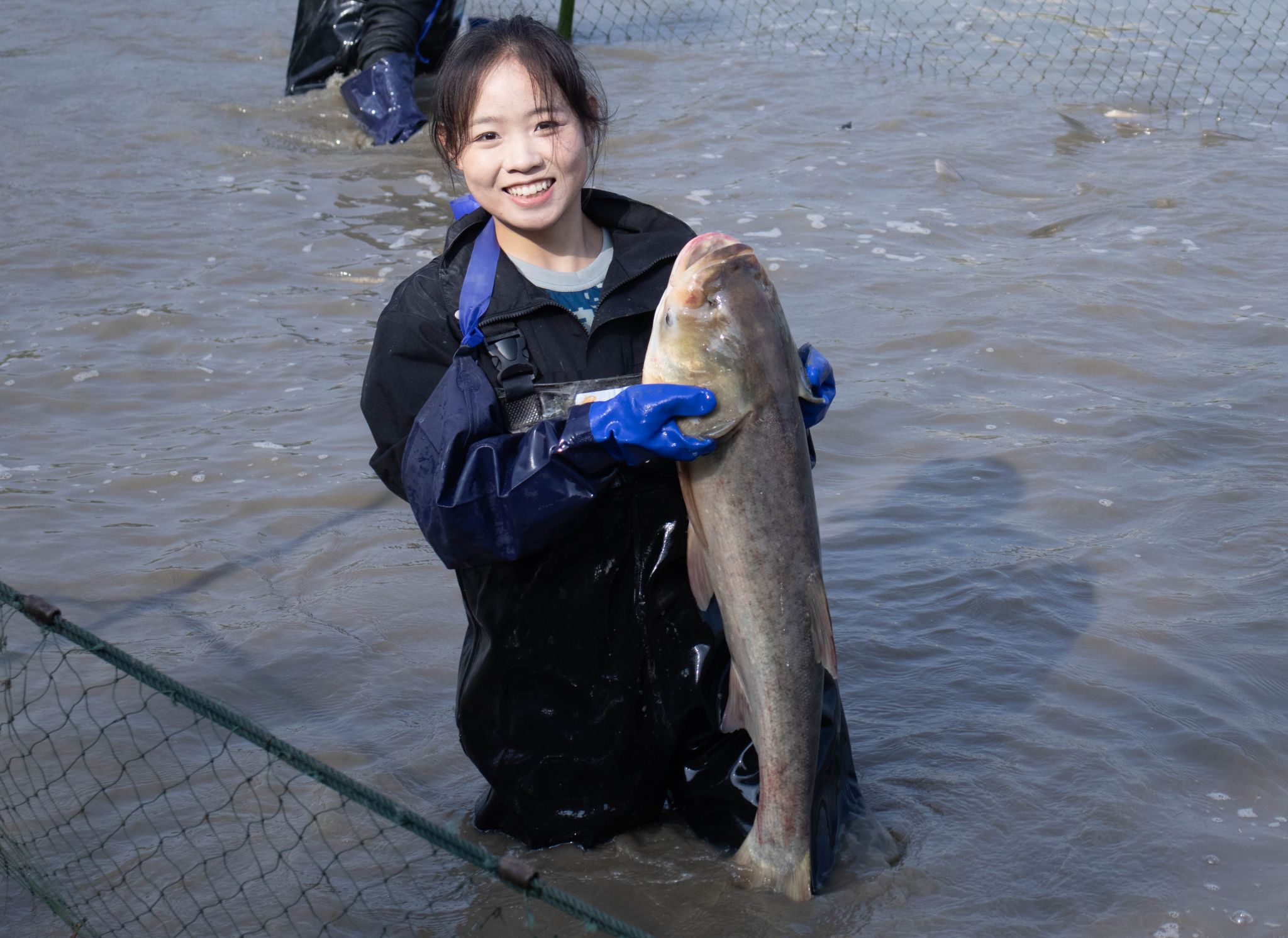 女同学捞鱼 吴毅萌摄