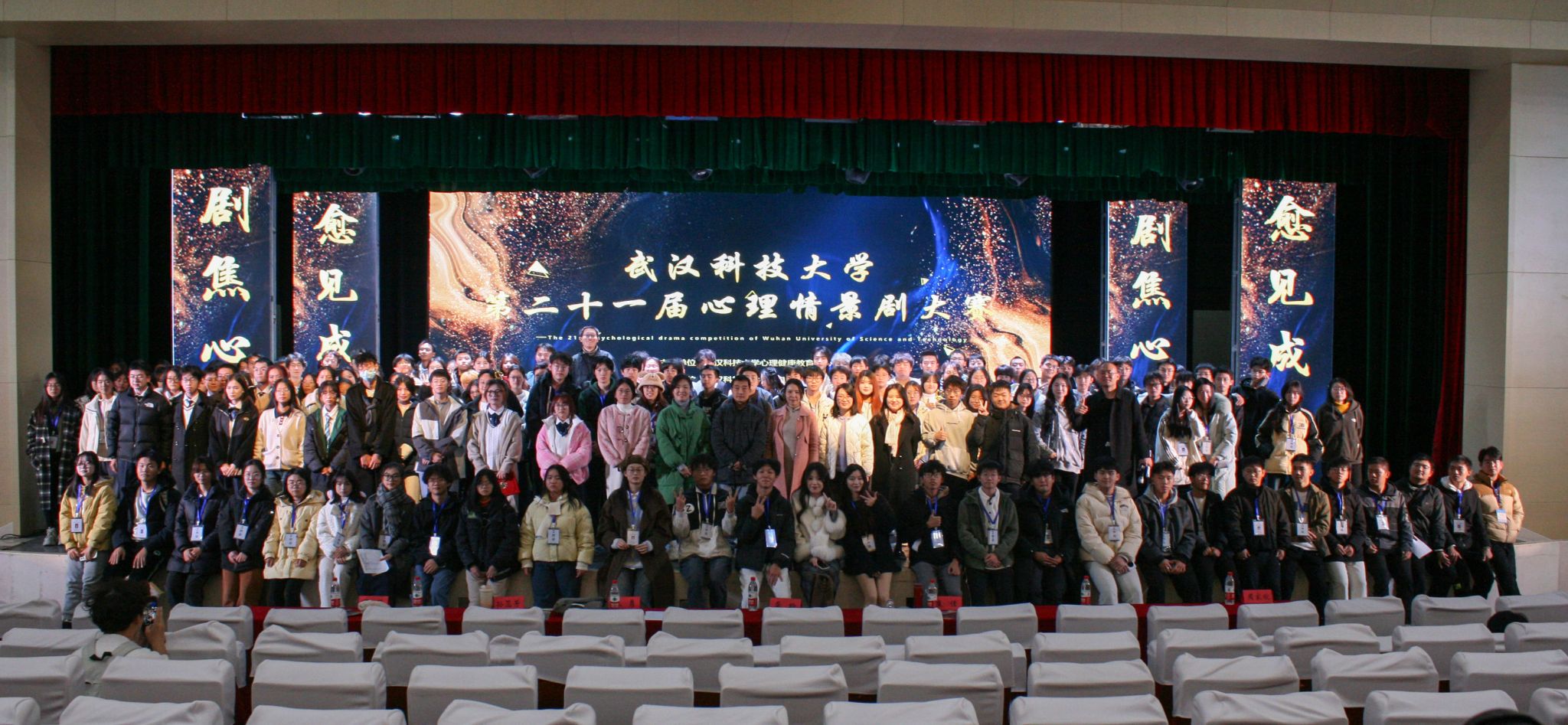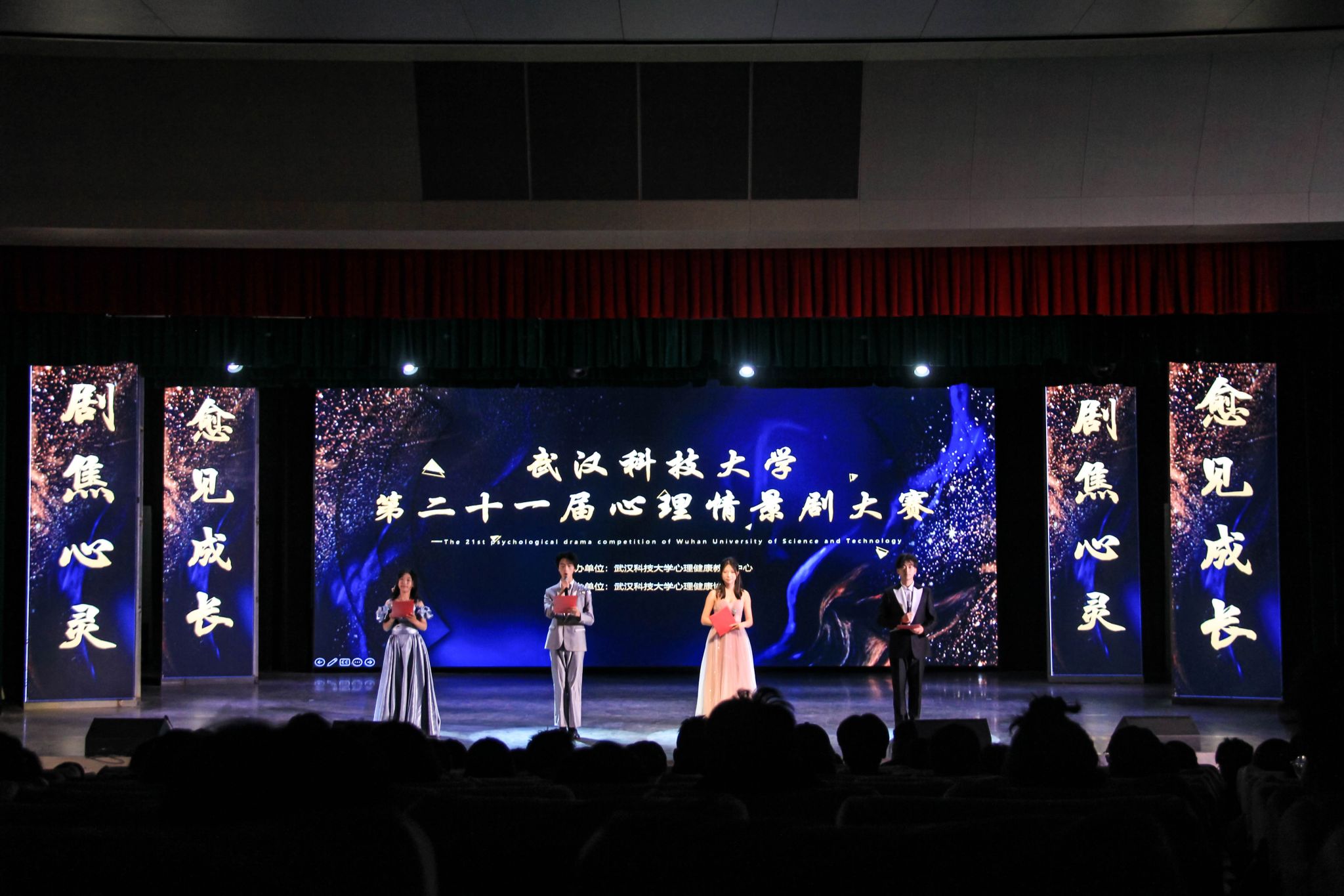 11月28日晚,鸭脖第二十一届心理情景剧大赛在沁湖礼堂举行,来自理学院、计算机科学与技术学院、法学与经济学院、汽车与交通工程学院、医学部的六支队伍带来情景剧表演。大赛间隙,还有来自FD舞蹈、笛箫艺术协会及音乐与吉他协会带来的歌舞表演。现场设置多轮互动、抽奖环节。