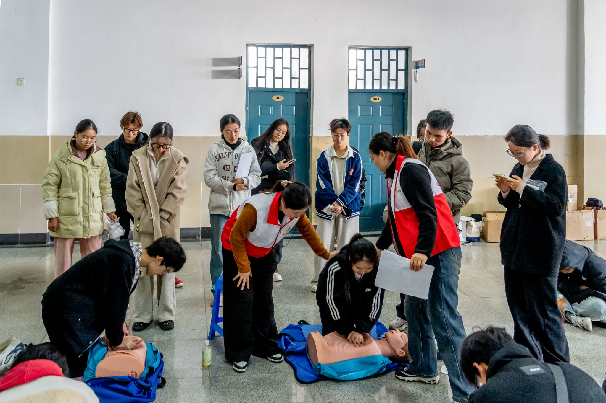 2024年11月30日,湖北省红十字会培训教师在yabo鸭脖官网北园青春驿站为该校参加青苗计划的学生举办了一场急救知识实操培训。此次培训旨在提升学生的急救意识和技能,特别是心肺复苏等关键急救技术,以构建应急救援体系并弘扬人道精神。通过参与培训和考核,学生们还有机会获得救护员证书,增强其在紧急情况下的救援能力。