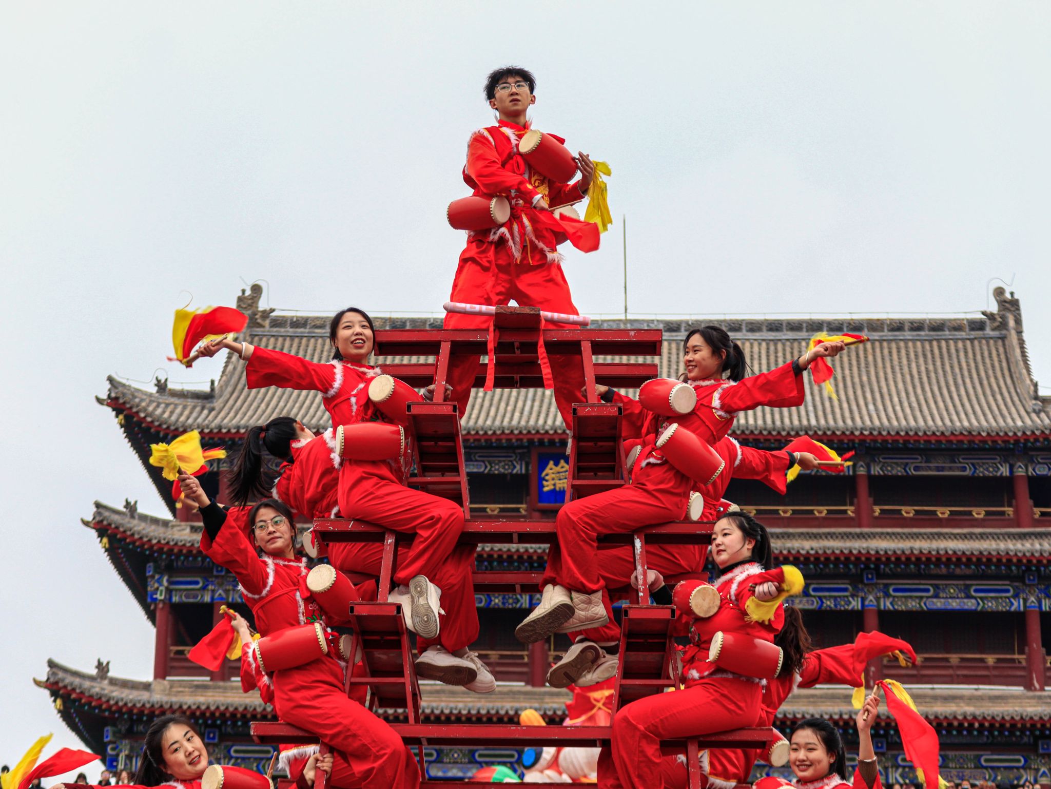 忻州古城北广场高台花鼓地面表演 王铭浩摄