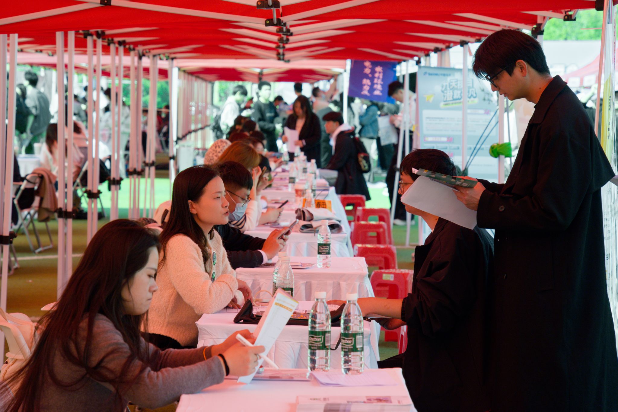 求职学生早早来到招聘会现场 王铭浩摄