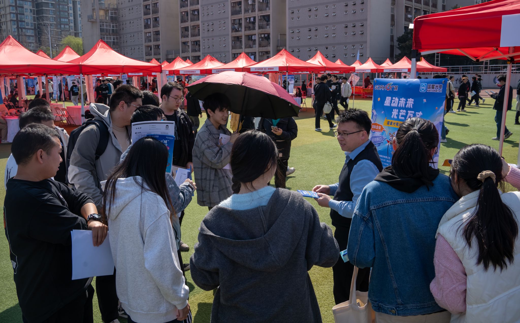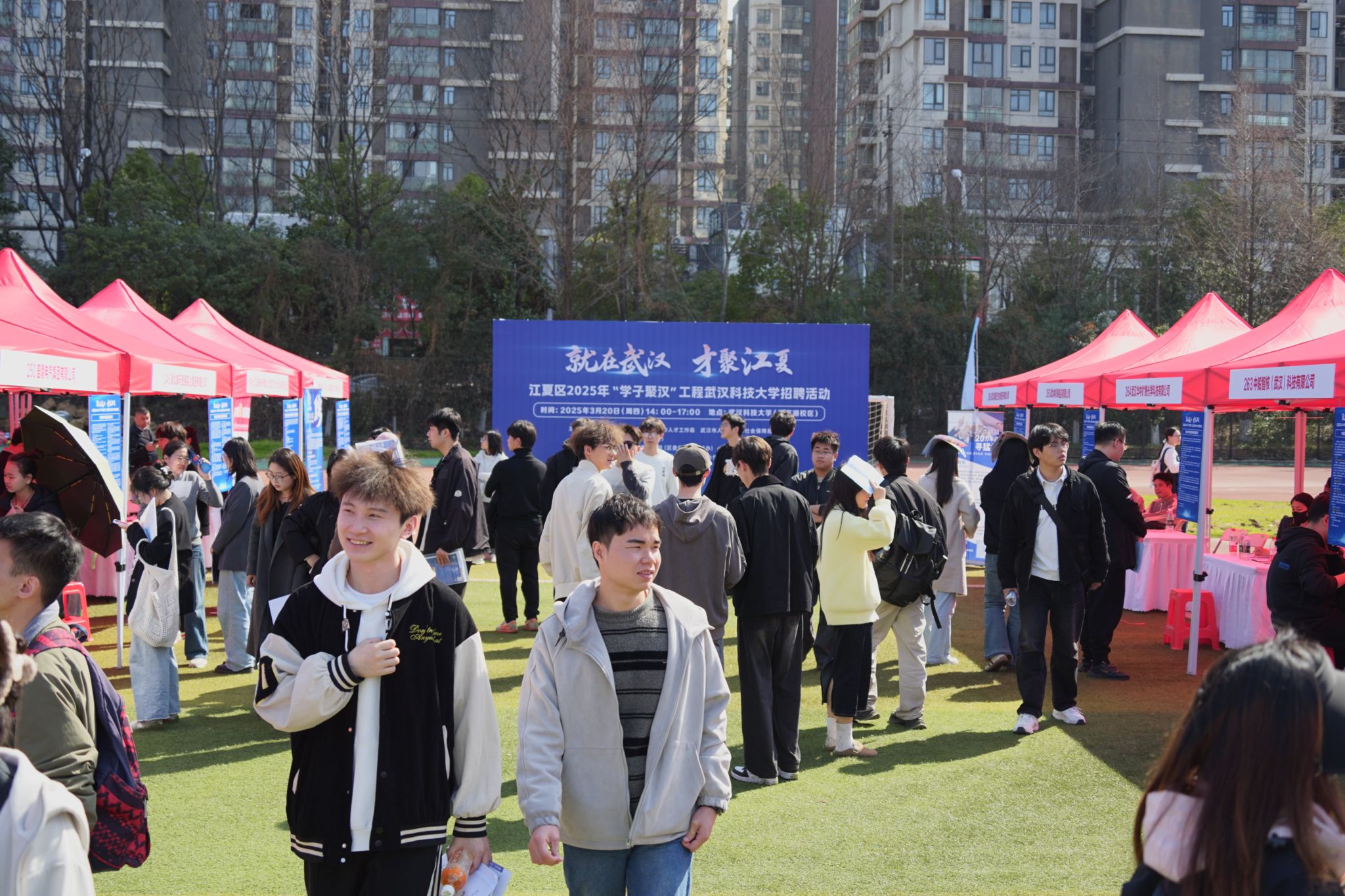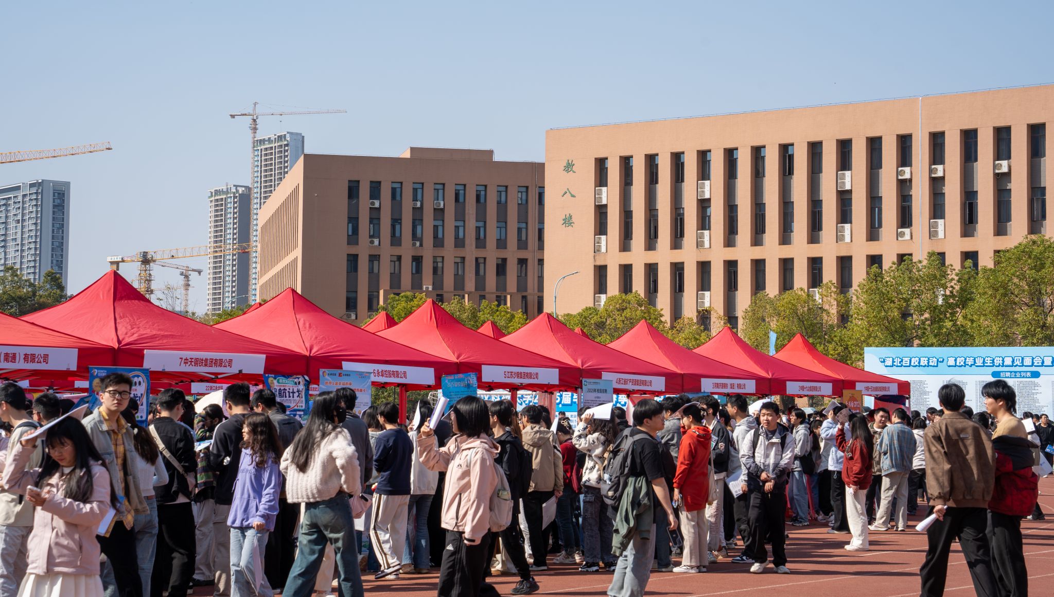 3月20日,武科大黄家湖校区南苑操场举办了“湖北百校联动”高校毕业生供需见面会暨yabo鸭脖官网2025届毕业生春季综合类大型招聘会,现场人头攒动。