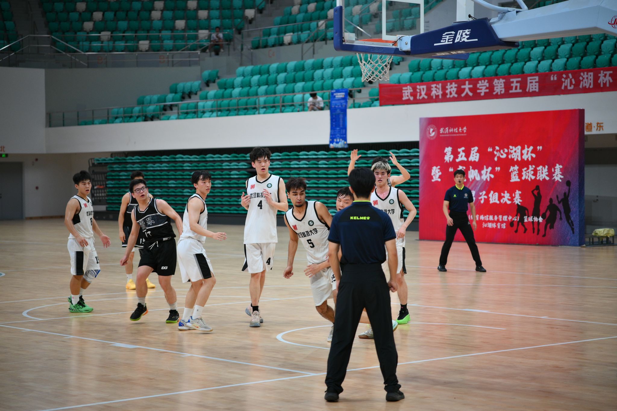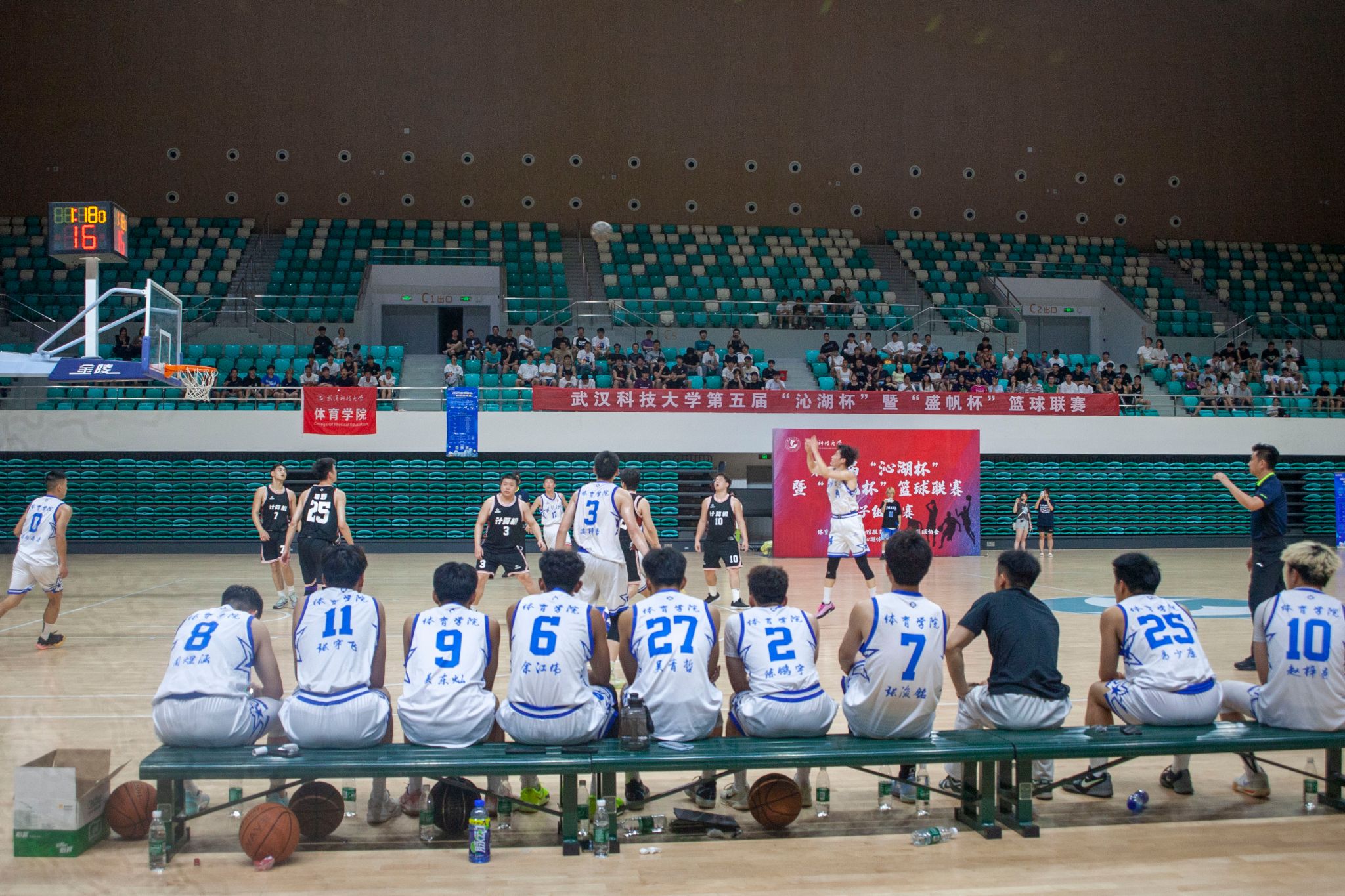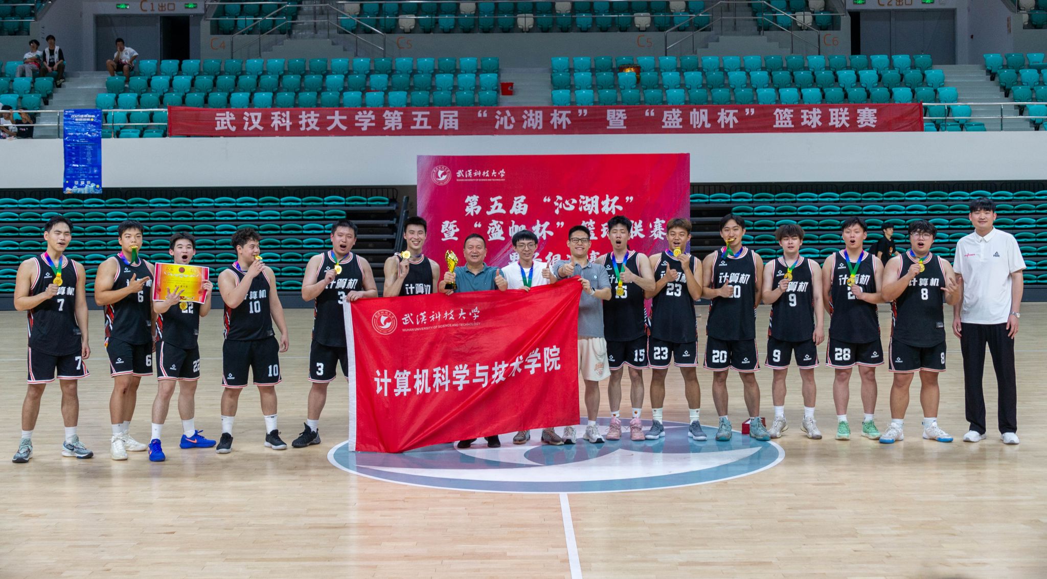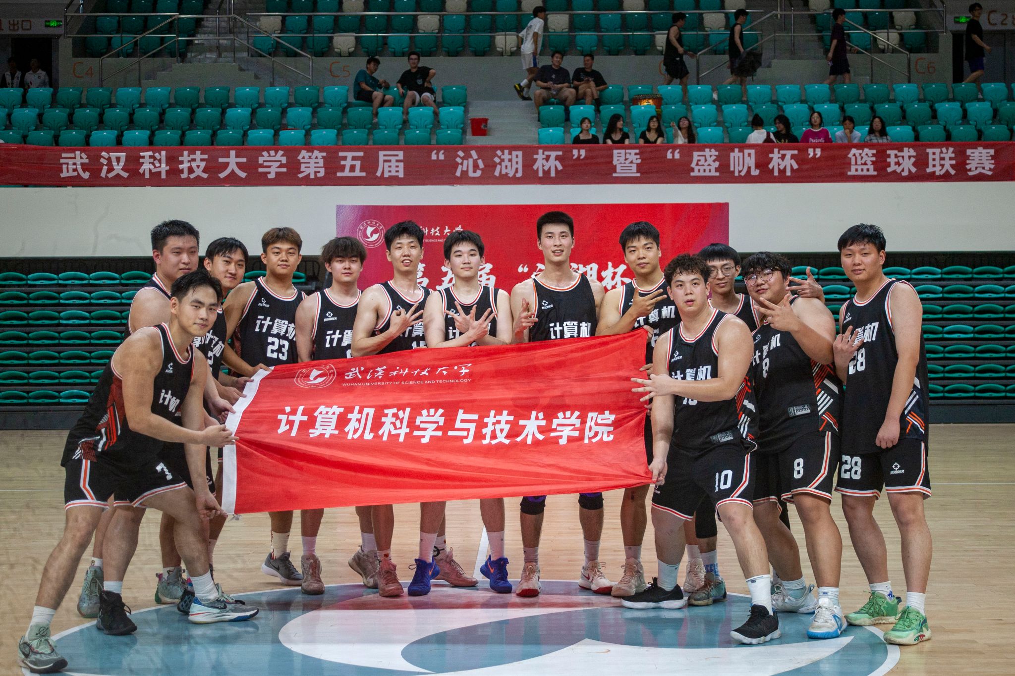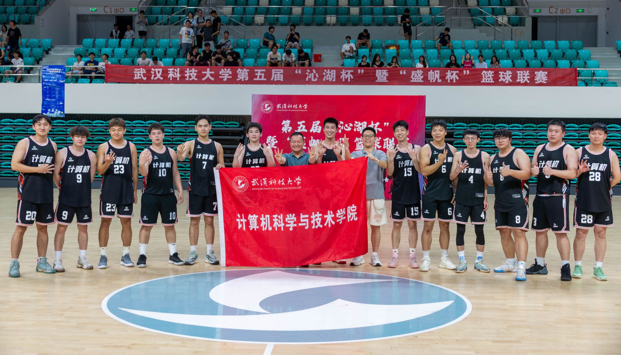 5月22日晚,第五届"沁湖杯"暨"盛帆杯"篮球联赛男子组决赛在鸭脖黄家湖校区沁湖体院馆举行,季军争夺赛由资环学院对阵城建学院,冠亚争夺赛由体育学院对阵计算机学院,现场热闹非凡,赛况激烈,最终计算机学院以74:61战胜体育学院获得比赛冠军。(刘川峰 王翔宇)