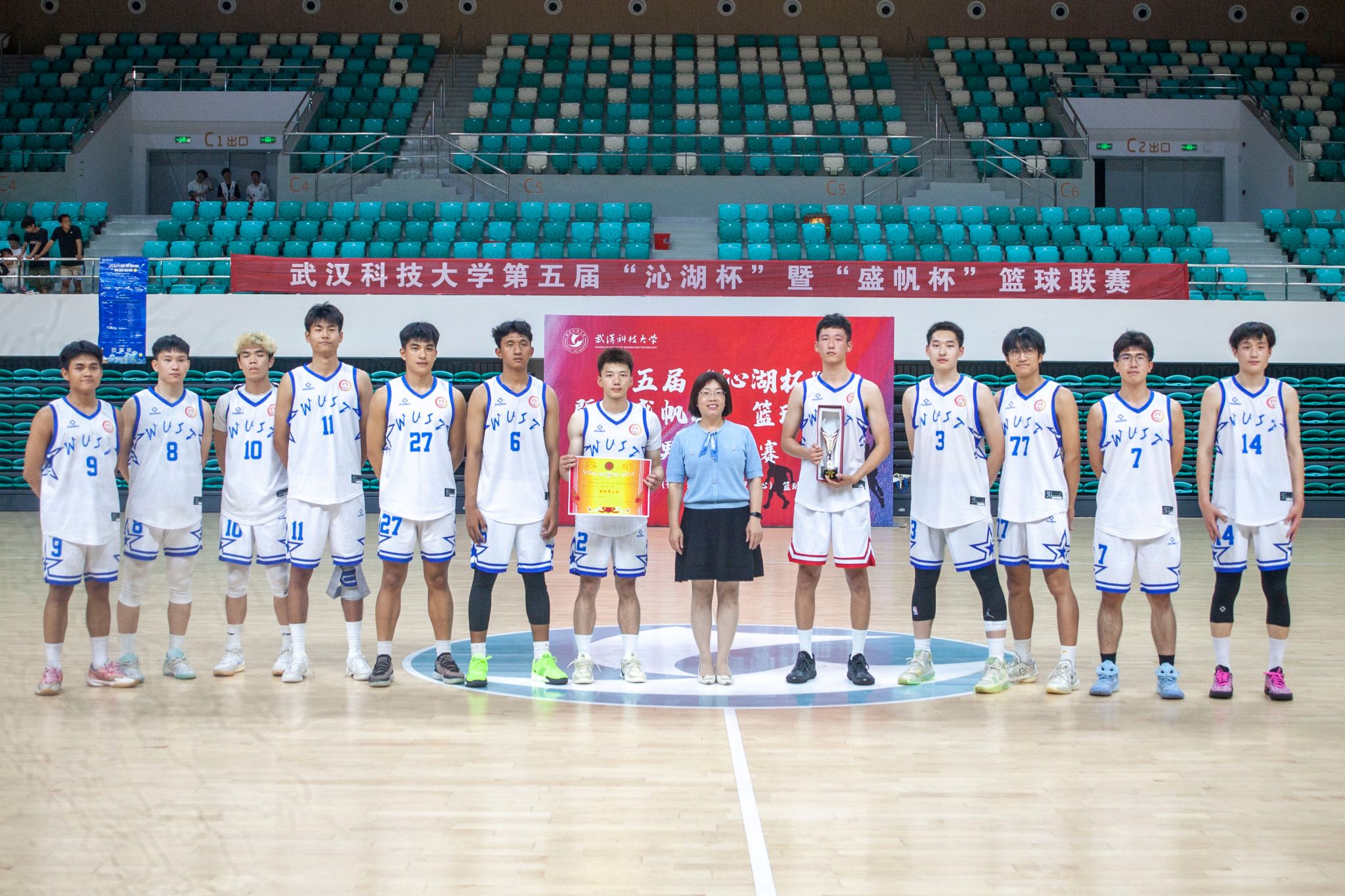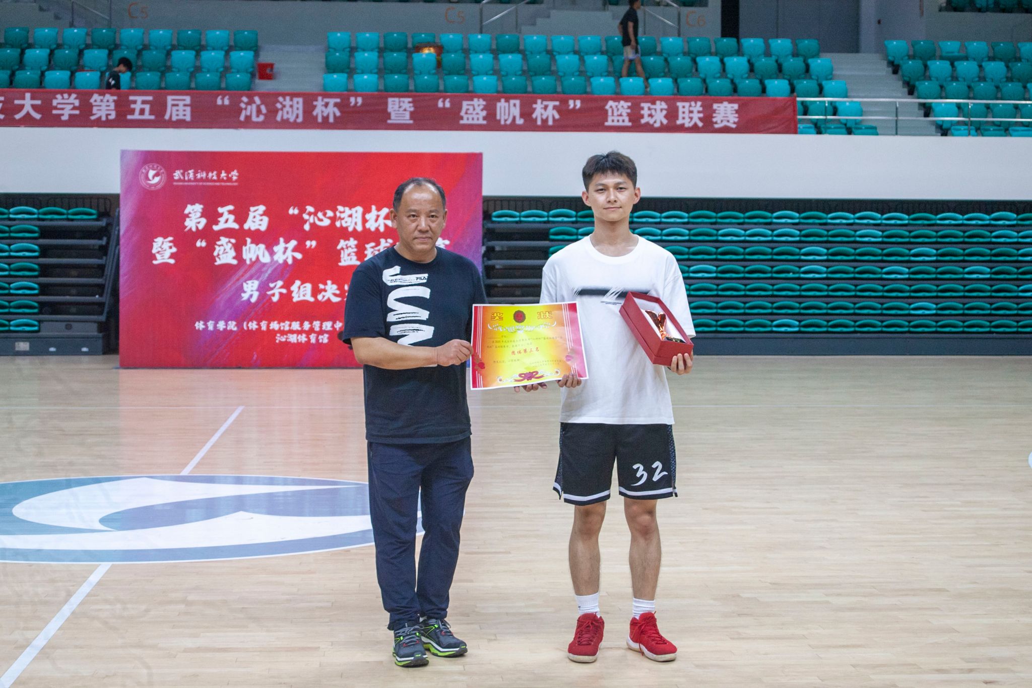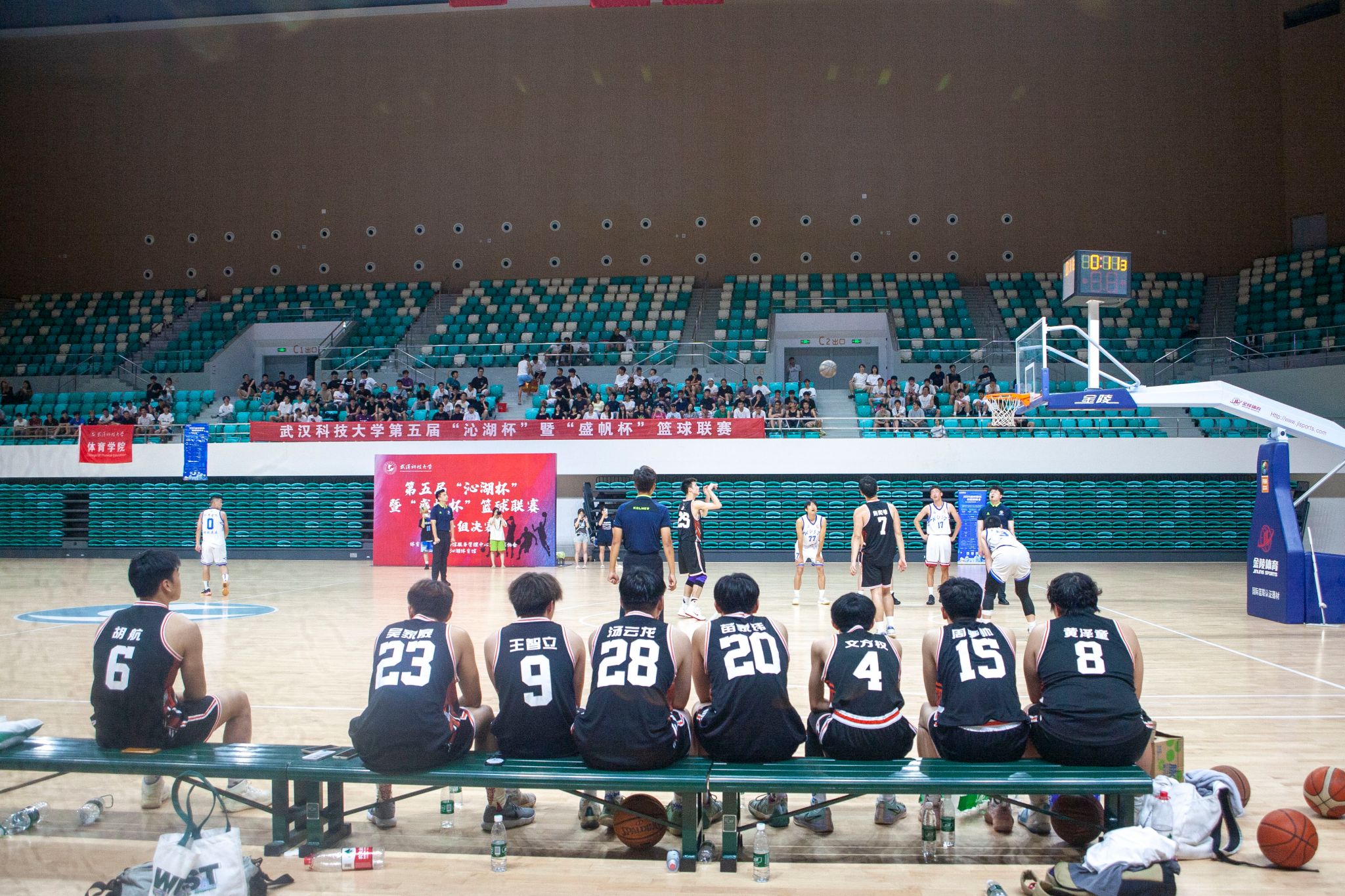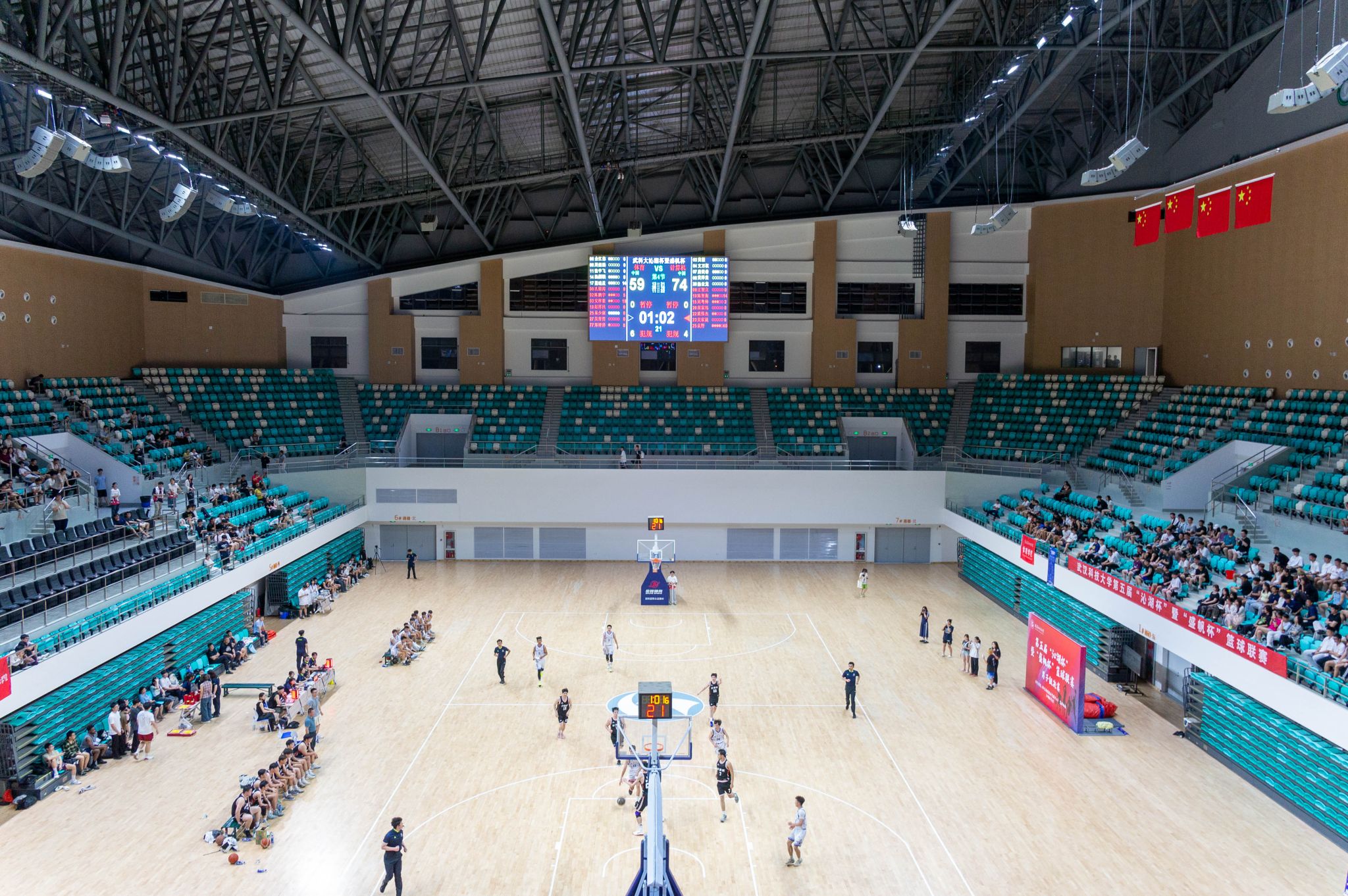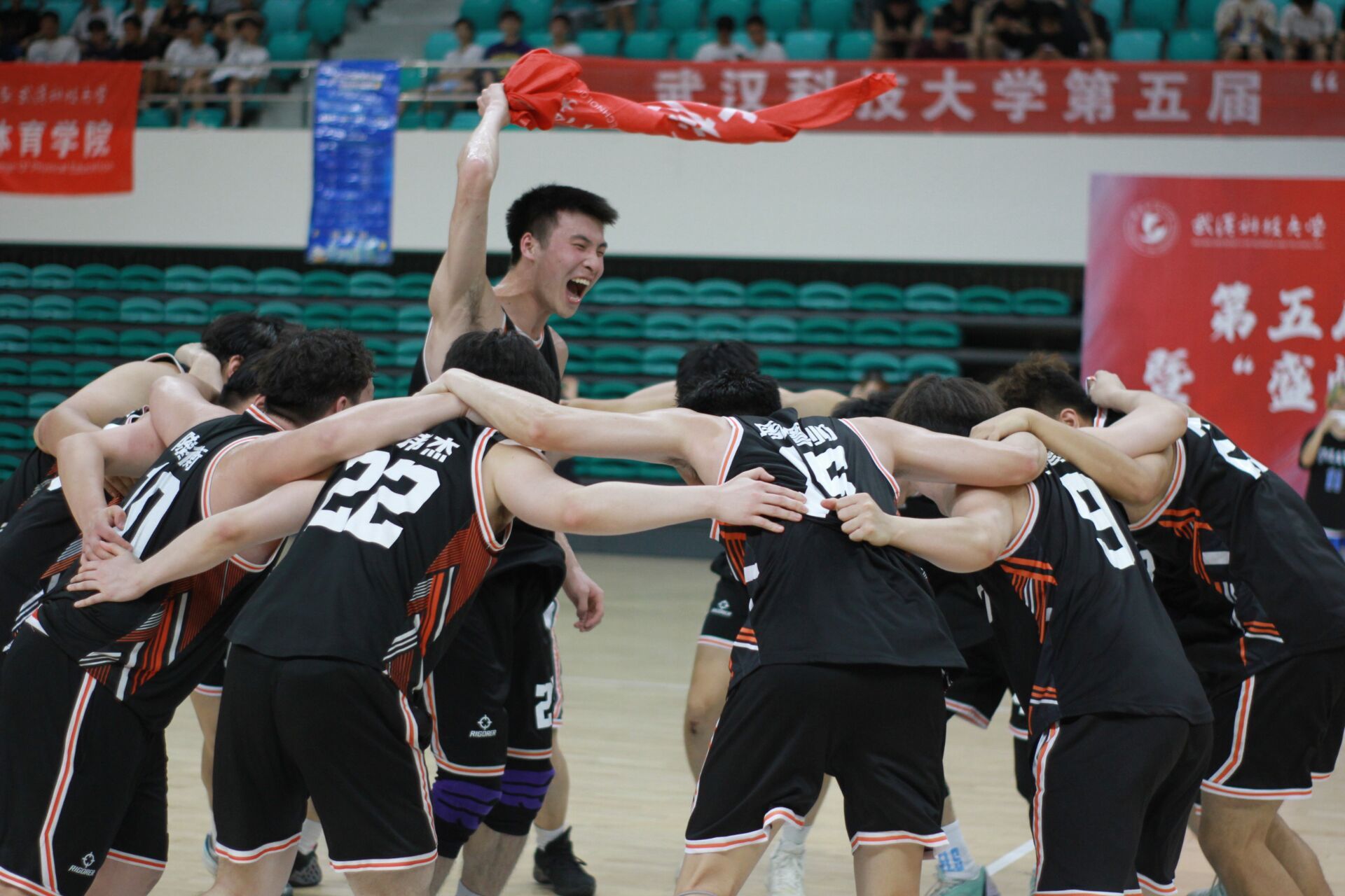 5月22日晚,第五届"沁湖杯"暨"盛帆杯"篮球联赛男子组决赛在鸭脖黄家湖校区沁湖体院馆举行,季军争夺赛由资环学院对阵城建学院,冠亚争夺赛由体育学院对阵计算机学院,现场热闹非凡,赛况激烈,最终计算机学院以74:61战胜体育学院获得比赛冠军。(刘川峰 王翔宇)
