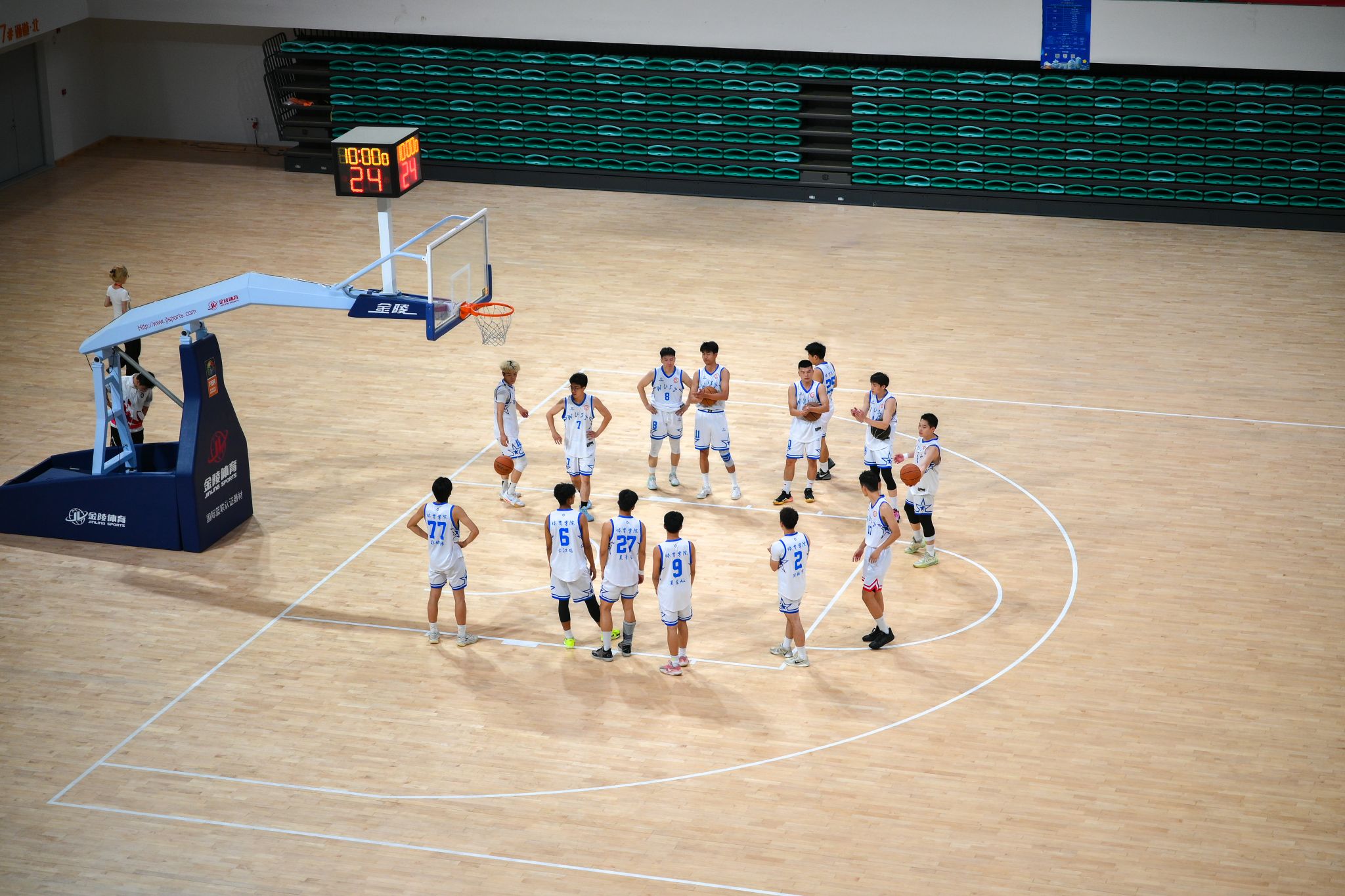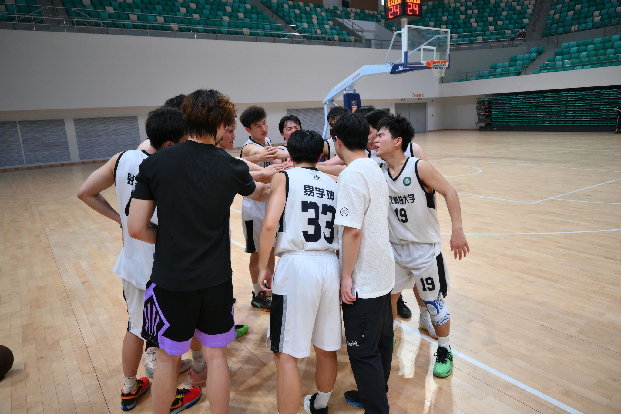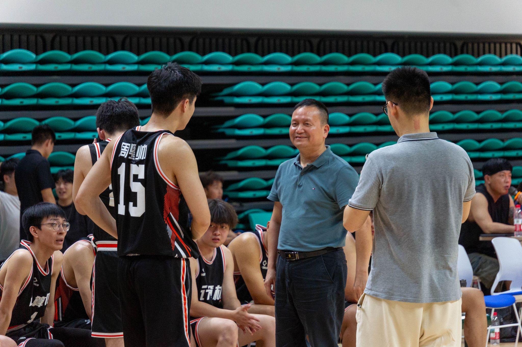体育学院中场休息讨论战术 王翔宇摄