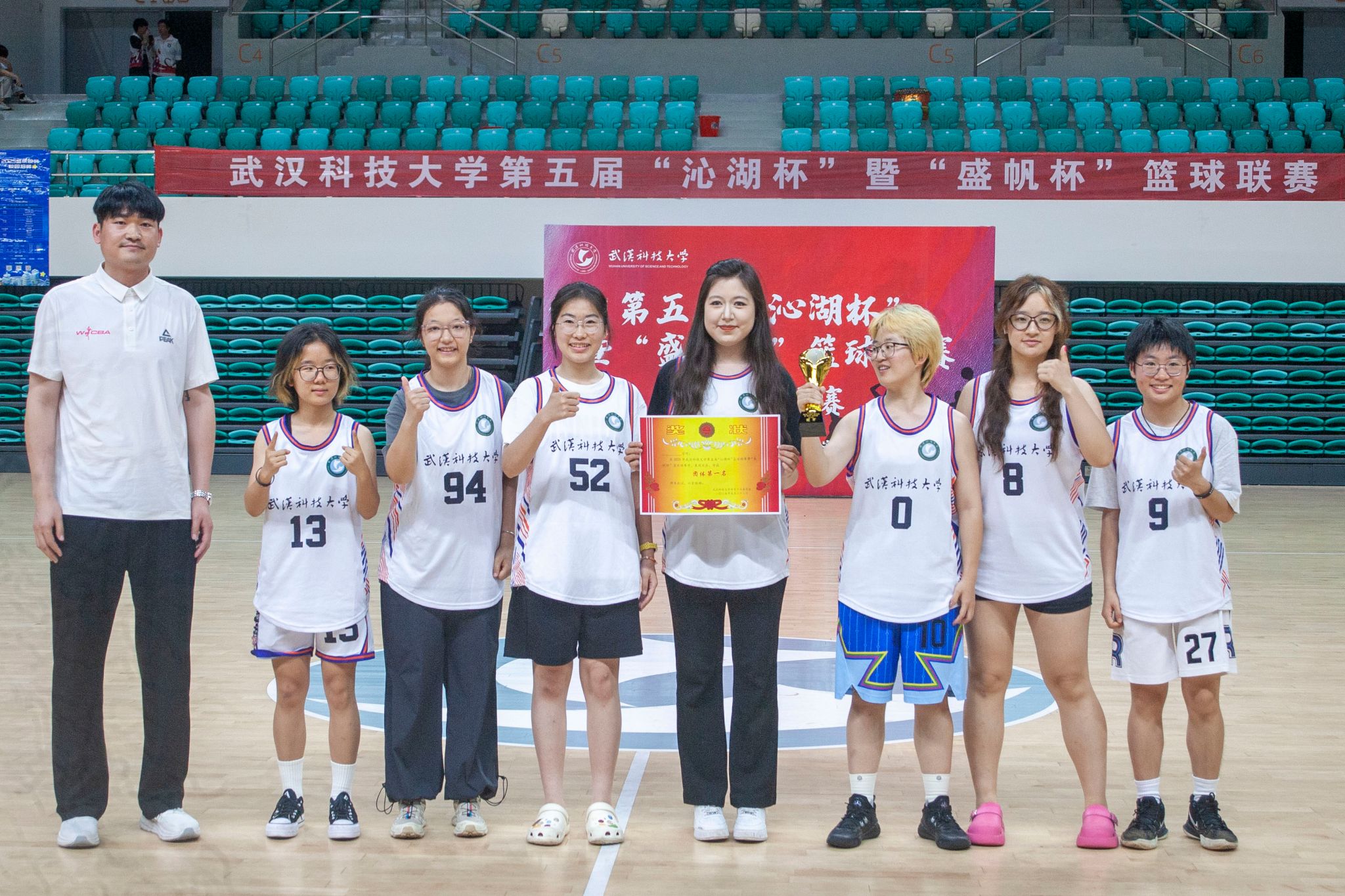 女子团体第一名颁奖合照 王翔宇摄