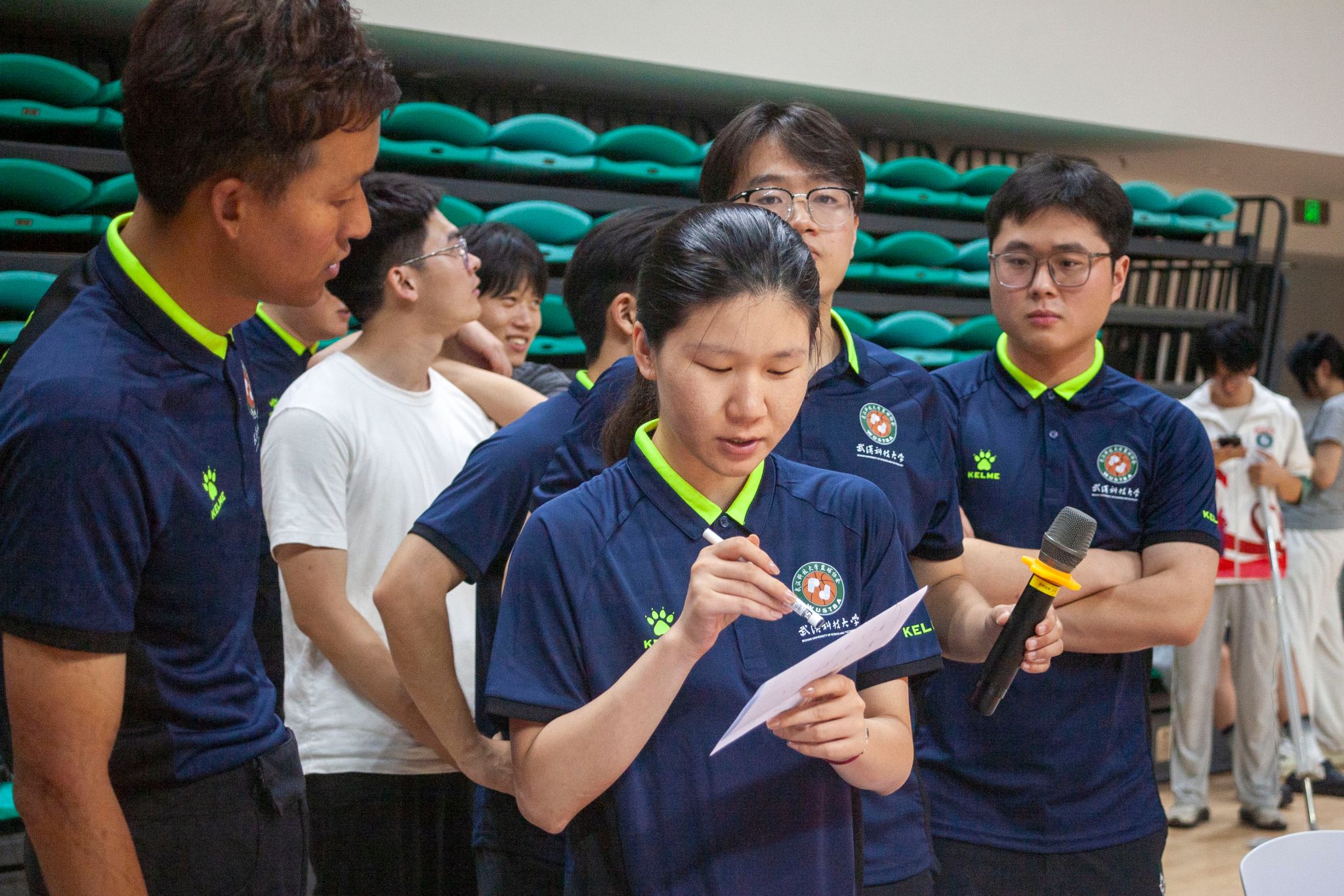 体育学院教练和队员们沟通 王翔宇摄