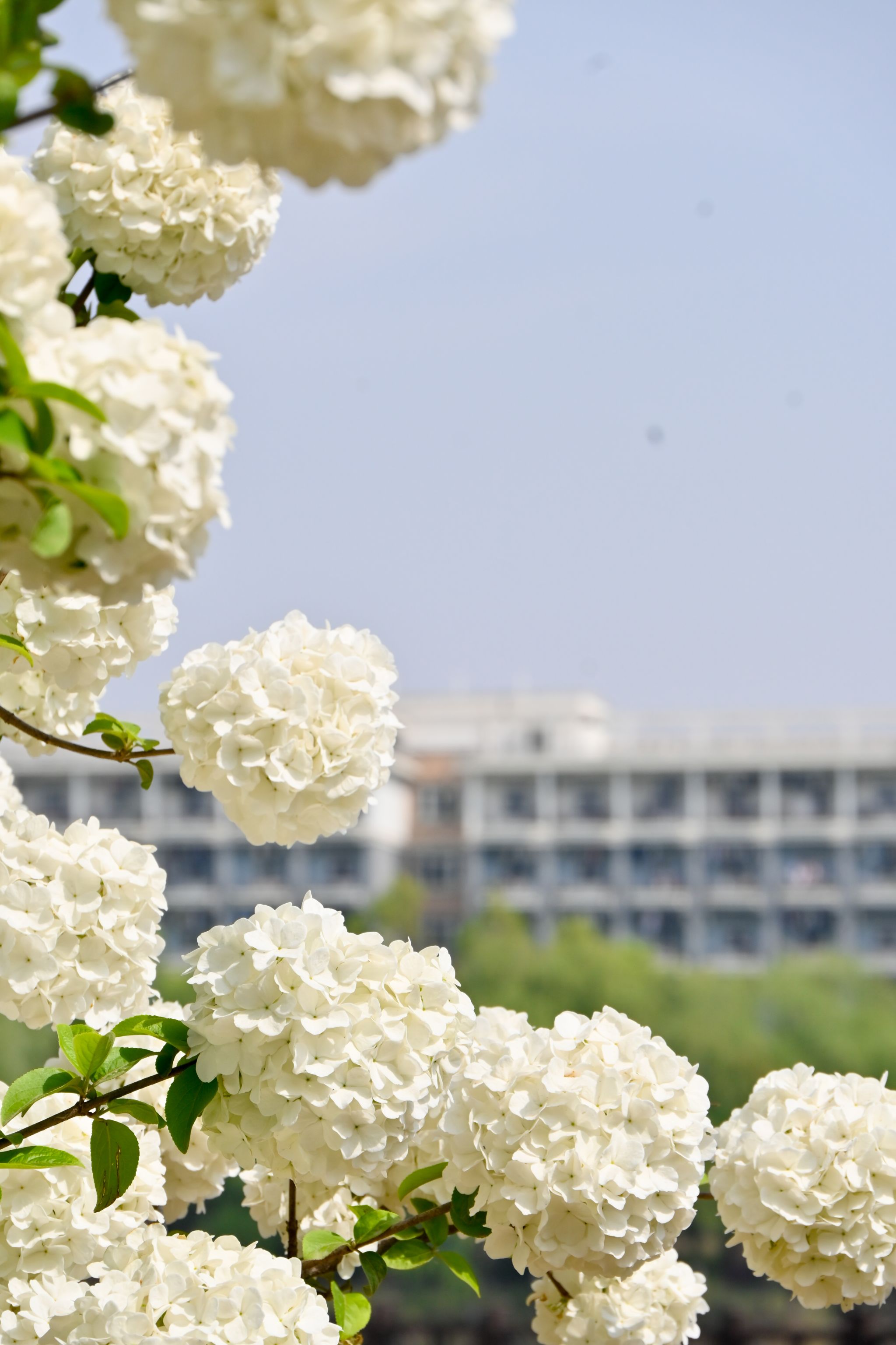 绣球花是虎耳草科绣球属落叶灌木,别名八仙花、紫阳花。叶片纸质或近革质,阔卵形,花序呈伞房状聚伞花序,花球硕大,由许多不孕花组成,颜色会随土壤酸碱度变化,酸性土呈蓝色,碱性土呈红色。它喜半阴湿润环境,耐寒性较差。绣球花的花语是“希望、团聚”,花团锦簇的模样象征着家庭和睦,常作为盆栽或地被植物,也可作切花,干燥后还能制成干花长期观赏。花期在6-8月,鸭脖廉园、张之洞雕像附近、图书馆附近,以及教四教五楼附近可见。