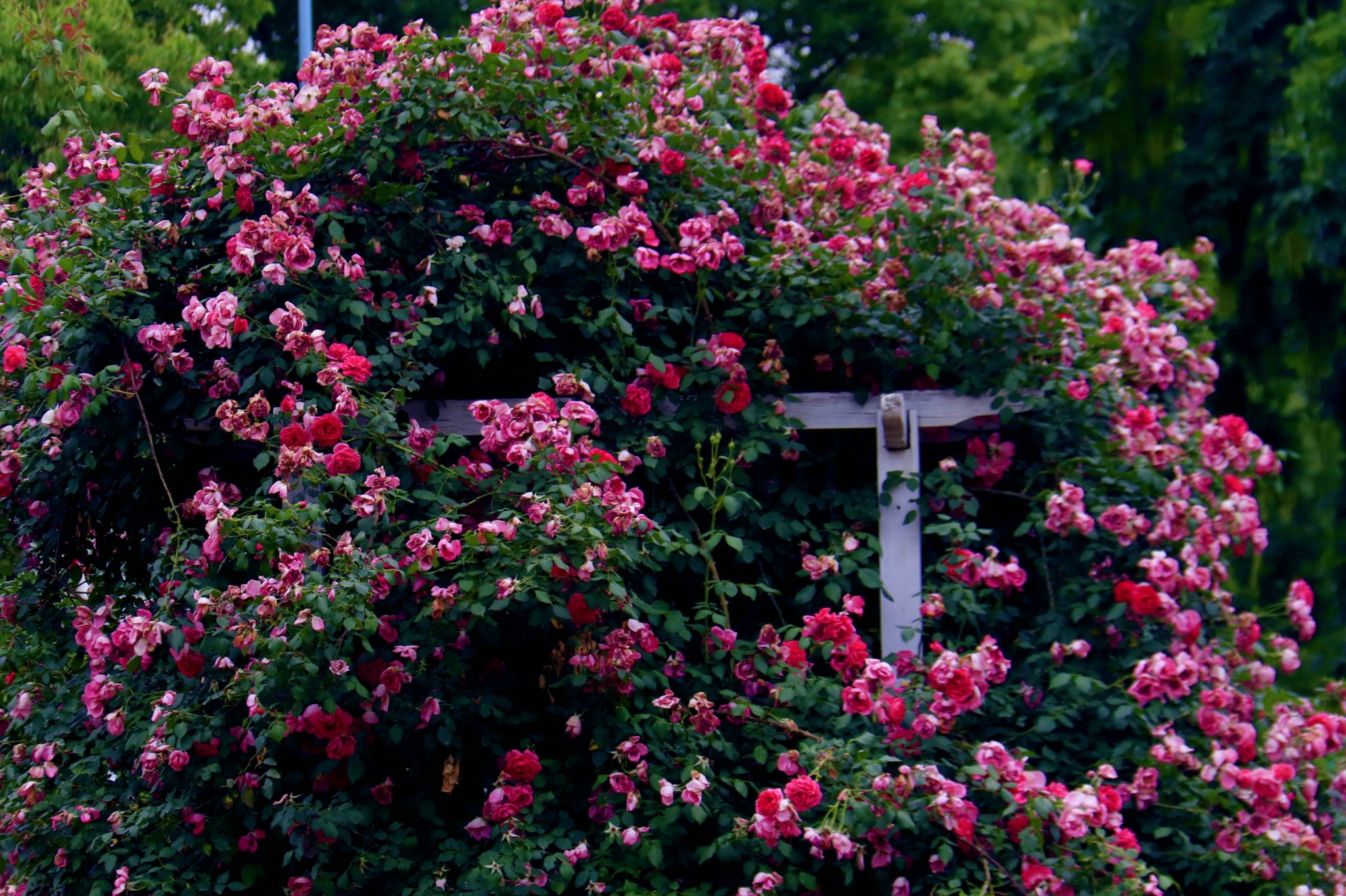 百花园中的蔷薇爬满花架 郭劼摄