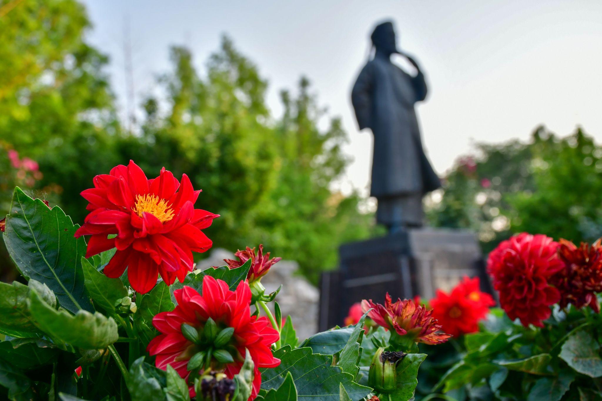 大丽花与张之洞雕像 陈楷林摄