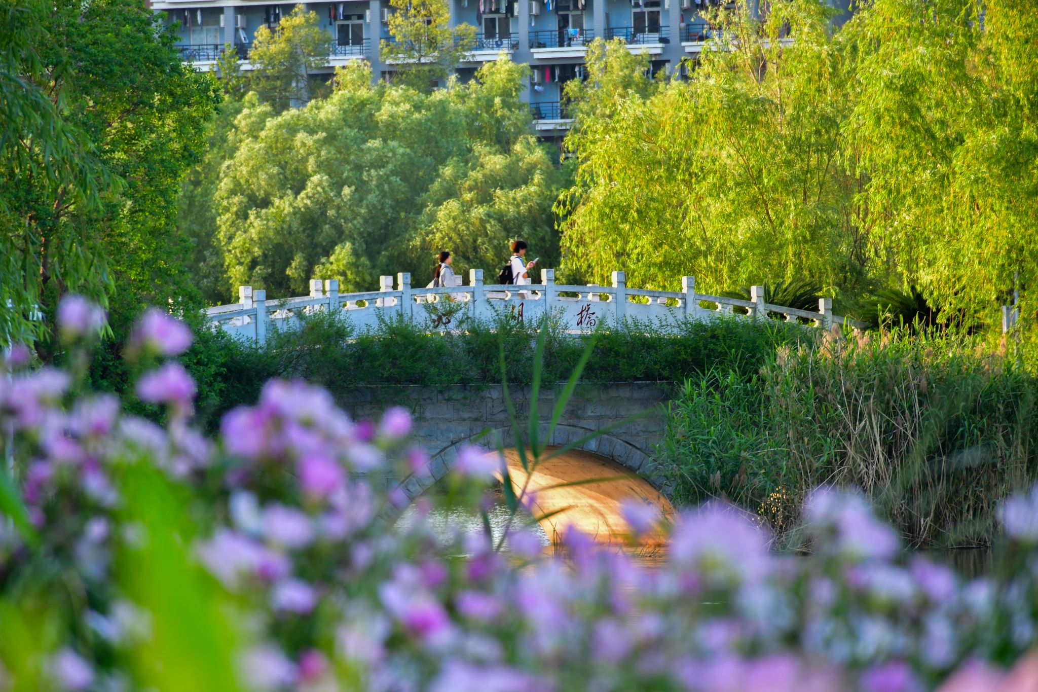 除此以外,校园里还有紫藤萝、金银花、一年蓬、金丝桃、夹竹桃、合欢花、红花酢浆草等花朵。