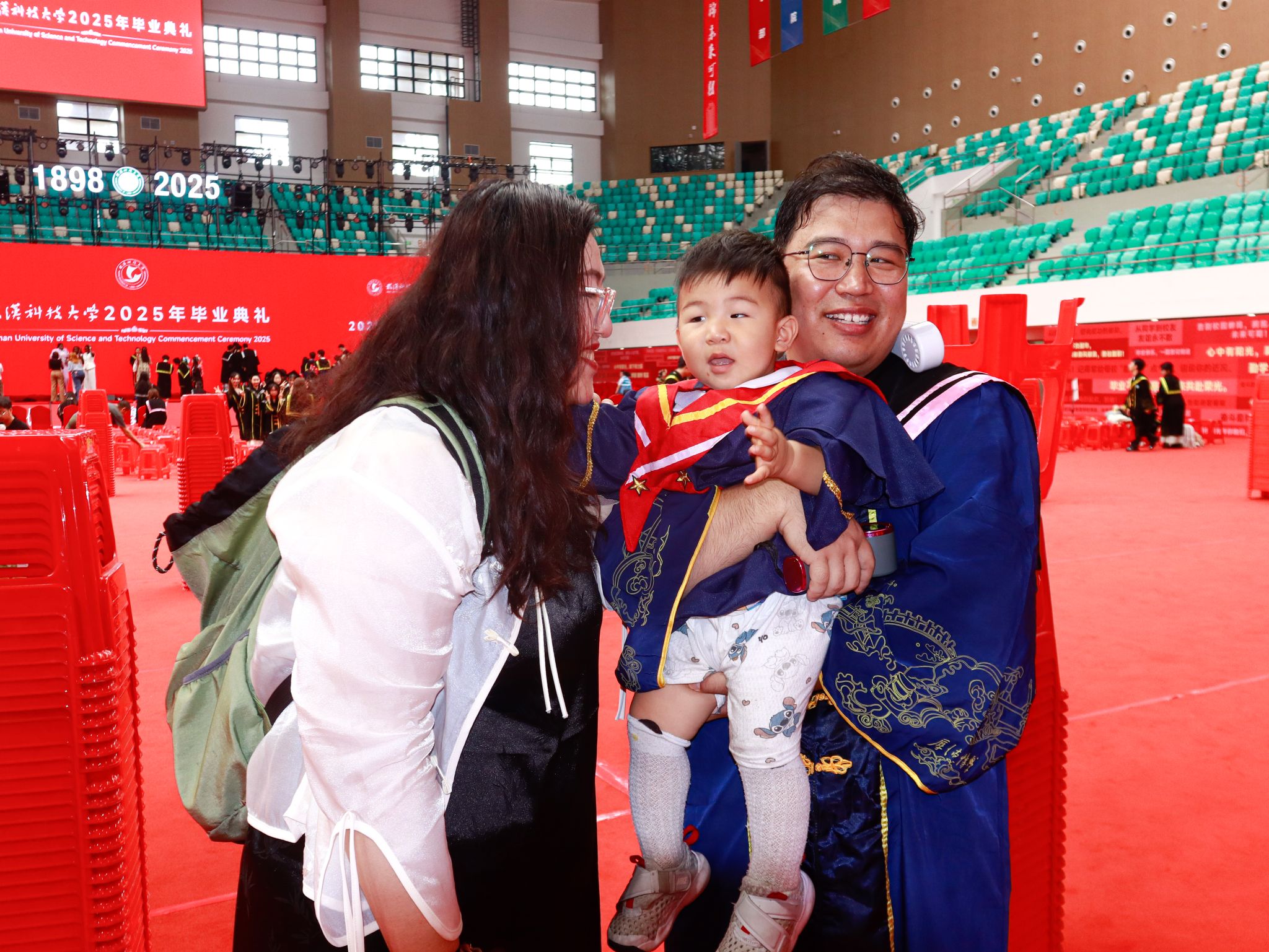 硕士毕业生带娃参加毕业典礼 段梦佳摄
