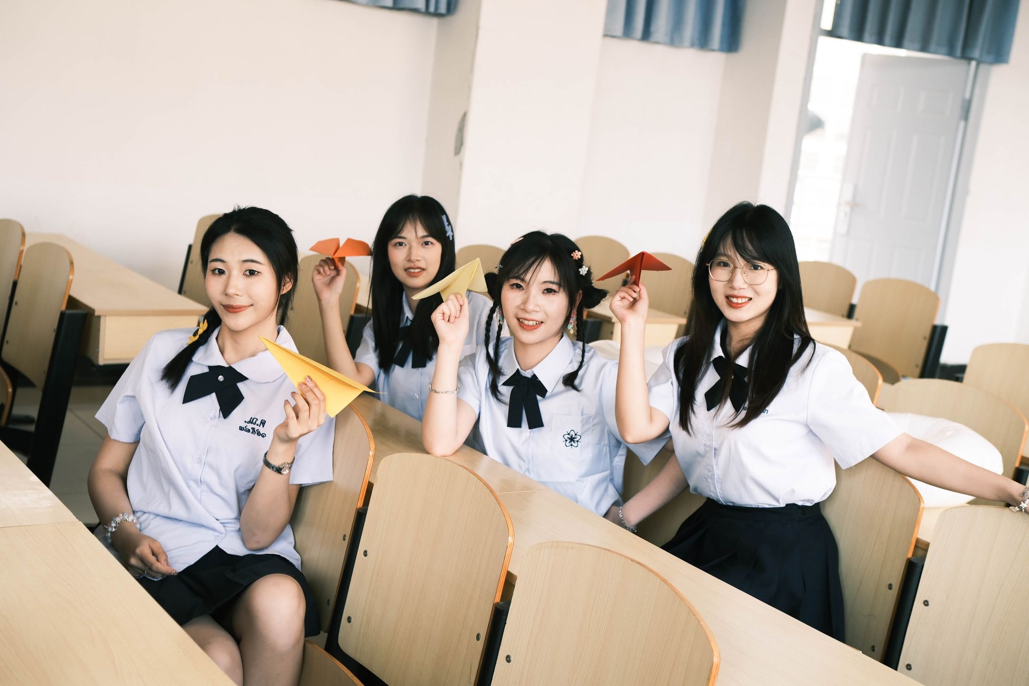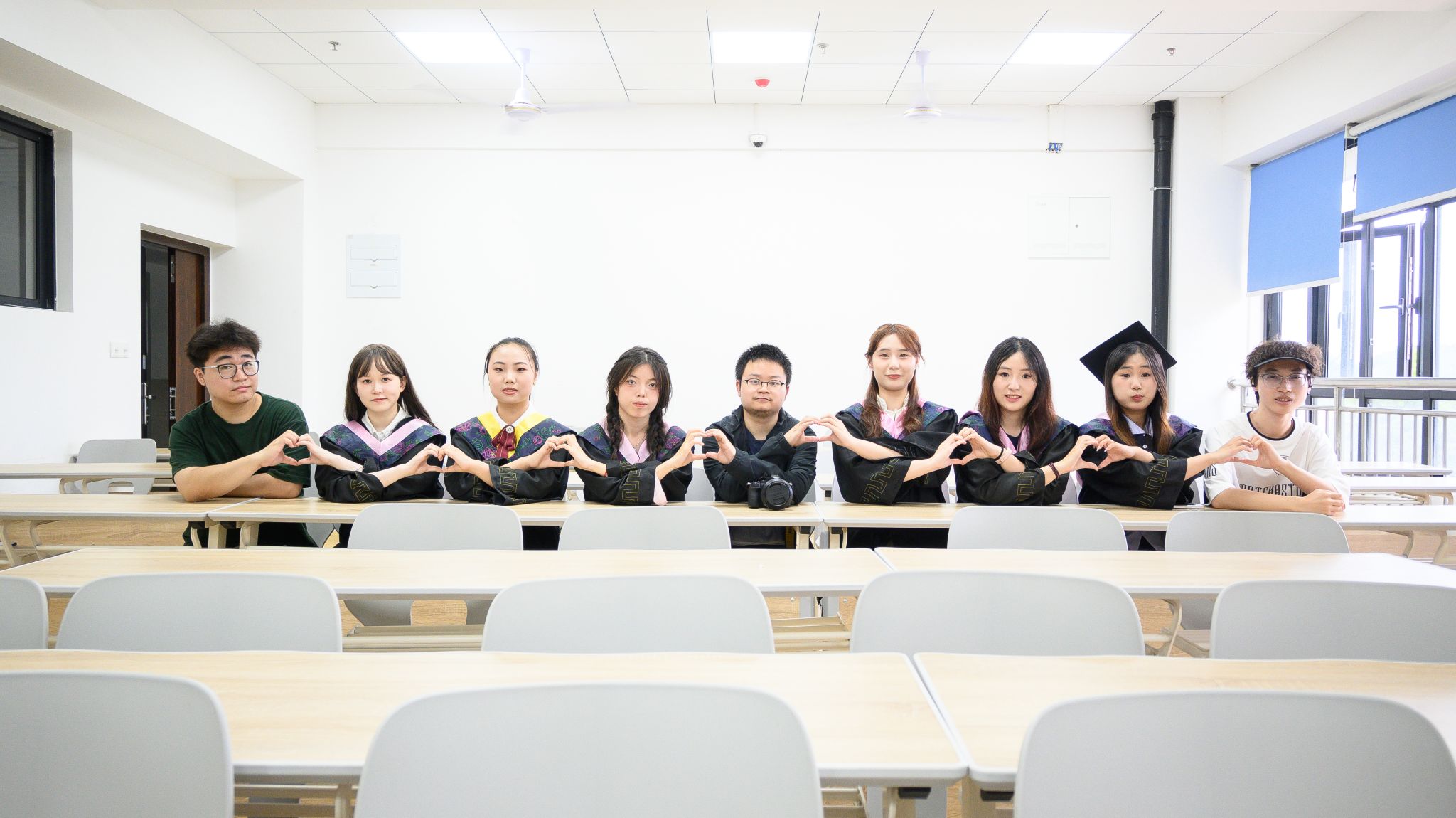 教室坐桌子上合照 陈薏帆摄